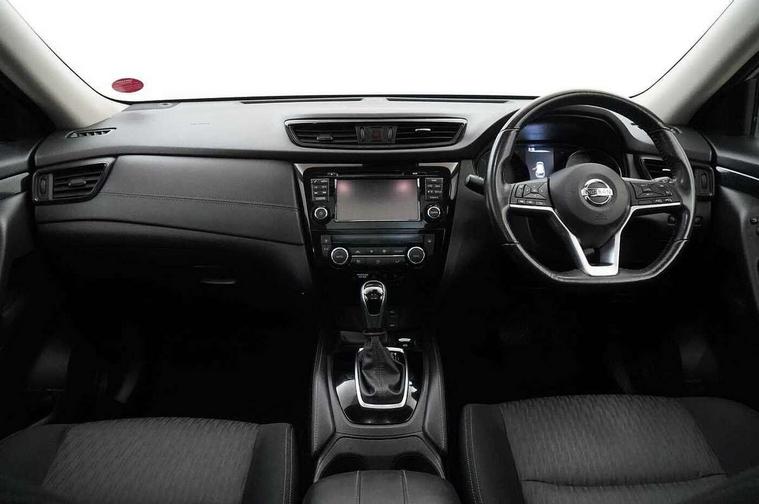 5" TFT driver information centre, Bluetooth phone integration system, Cruise control + speed limiter, Front and rear parking sensors, Intelligent around view monitor, Lane departure warning system, Nissan connect evo 7" touchscreen navigation and entertainment system with Android auto, Apple car play, Tomtom maps and Live traffic, PAS, Stand still assist auto hold function, Traffic sign recognition, Trip computer, Nissan chassis control (intelligent ride control, intelligent trace control, intelligent engine brake), 6 speakers, DAB Digital radio, Radio/CD, Rear USB port, Steering wheel mounted audio controls, USB/aux input socket, Anti dazzle rear view mirror, Automatic headlights, Automatic rain sensing wipers, Black honeycomb front grille, Body colour door mirrors, Chrome door handles, Chrome window surround, Electric folding door mirrors, Electric heated door mirrors, Front and rear electric windows, Front fog lights, Halogen headlights, High beam assist, LED daytime running lights, Panoramic sunroof with one touch shade, Rear privacy glass, Rod antenna, Shark fin roof aerial, 3 rear headrests, 60/40 split rear bench seat, Centre console storage box/armrest, Cloth upholstery, Configurable luggage board system, Driver's manual adjustable lumbar support, Dual zone climate control, Front and rear door pockets with bottle holders, Front cupholders, Front/rear armrests, Height adjustable front headrests, Individual rear reading lights, Isofix child seat attachment, Leather D shaped steering wheel, Leather steering wheel and gear knob, Pollen filter, Tilt/telescopic adjustable steering wheel, 3 point seatbelts on all seats, 6 airbags - Driver, front passenger, curtain and side airbags, ABS, Child locks on rear doors, EBD + Brake Assist, Electric parking brake, ESP + traction control, Intelligent emergency braking with pedestrian recognition, Seatbelt warning, Tyre pressure monitoring system, Immobiliser, Remote central locking, Thatcham Cat.1 alarm, 17" Alloy wheels, Full size spare wheel,