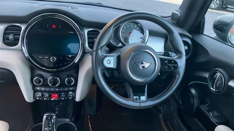 Apple CarPlay, Automatic start/stop function with brake energy recuperation, Compatible mobile phone bluetooth with audio streaming, Cruise control with brake assist, Electro-mechanical speed dependant steering assistance, Flexible car sharing preparation, Instrument cluster, MINI Driving Modes - centre toggle switch to control driving setting (sport, mid and green), Mini E-call, MINI TeleServices, On board computer, Rear park distance control, Service interval indicator, Double Vanos system, Fully variable valve control, High precision injection, Performance Control, Steptronic sport transmission with double clutch and steering wheel paddles, 8.8" touchscreen with LED ring, FM tuner and DAB digital radio, 3rd brake light, Automatic headlight activation switch, Bonnet scoop, Chrome line exterior - radiator grille bars, tailgate handle, lower front grille grating and rear central fog-light, Dynamic brake lights, Electric front windows, Heated rear window, Heated windscreen washer jets, LED headlight with closed ring and daytime driving lights, Metal door sill strips with Cooper S, Model logo Cooper S on right of tailgate, Rain sensor window wipers, Rear fog lights, Rear LED lights with union jack design, Rear window wiper, Side scuttle panel with integrated indicator, Sun/heat protection glass, White indicator lenses, 12V Accessory socket in centre console, 2 seat bench in 2nd row, 4 lashing eyes in luggage compartment, 60/40 split folding rear seat, Carbon black colour line - Knee roll and door armrest, Chrome interior highlights, Chrome line interior - air vents, gear lever base, door handles and speakers in doors, Cupholders, Front and rear head restraints, Front and rear isofix with front passenger airbag deactivation, Front floor mats in velour, Glove compartment, Height and length steering column adjustment, Interior lighting with 12 different colours across the dashboard, underneath door bezel with illuminated laser-engraved design on central display, Leatherette gearshift lever and handbrake gaiters, LED reading lights, vanity mirror lights, front foot well light and spotlight on front seats, Manual air conditioning, Mechanical seat adjustment - forward/back & backrest for front seats and driver seat height adjust, MINI yours badge on exterior pillar, Multifunction steering wheel, Passenger seat height adjuster, Satellite grey headlining including grab handles and clothes hooks, Single front passenger seat, Storage compartments in doors, Storage pocket on back of front seats, Sunvisors with vanity mirrors, Walknappa leather steering wheel with grey seam and MINI Yours badge on Piano Black lower steering wheel spoke, 3 point seatbelts on all four seats, 6 Airbags - front, side, head and seat belt tensioners, Anti-lock braking system (ABS), DSC - Dynamic Stability Control, Front and rear disc brakes, Two tone horn, Tyre pressure monitoring system, Alarm system with tilt sensor, monitoring doors, bonnet interior and tailgate, Electronic vehicle immobiliser, Start/stop toggle with keyless go, Tool kit,