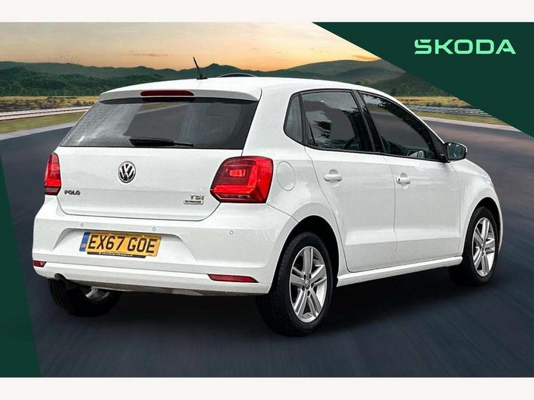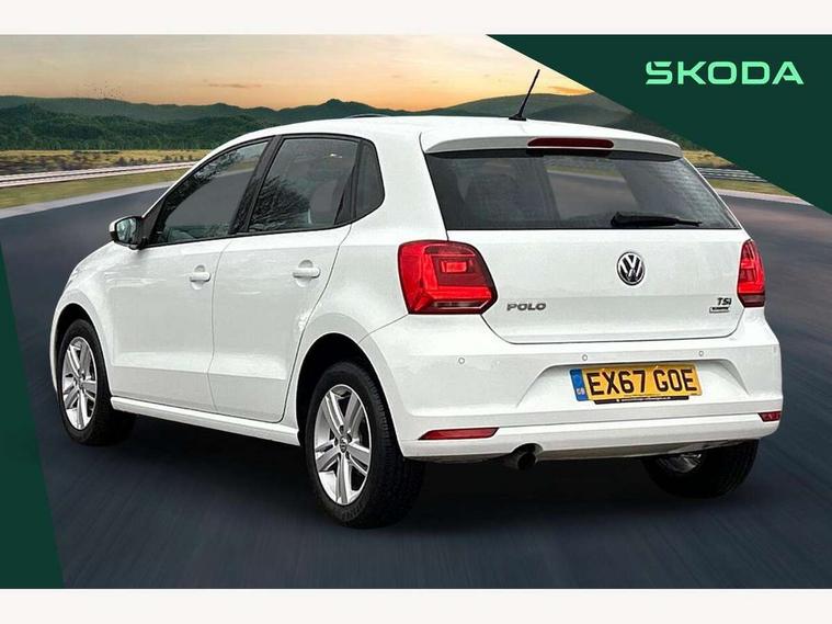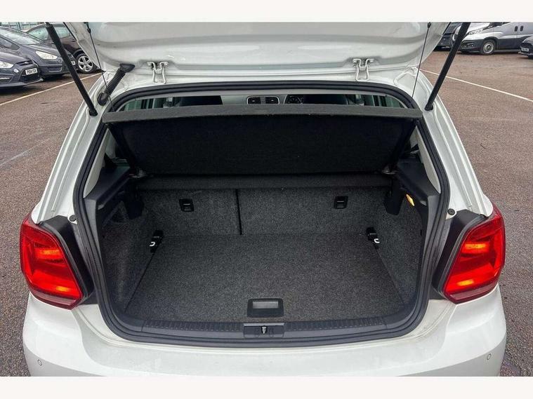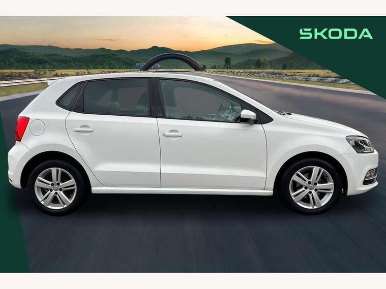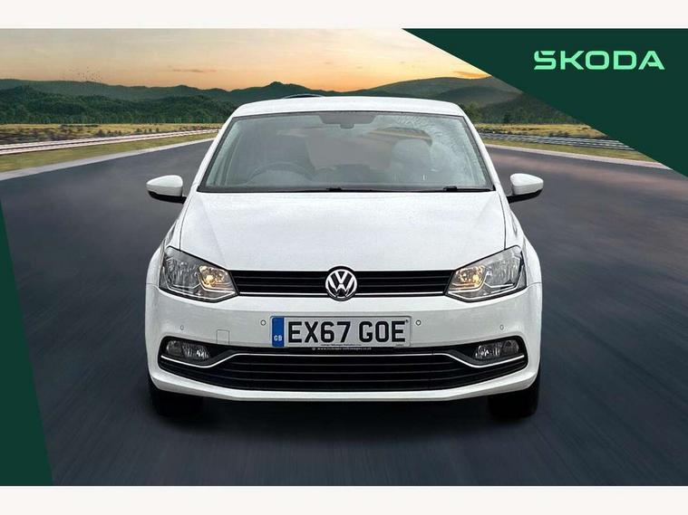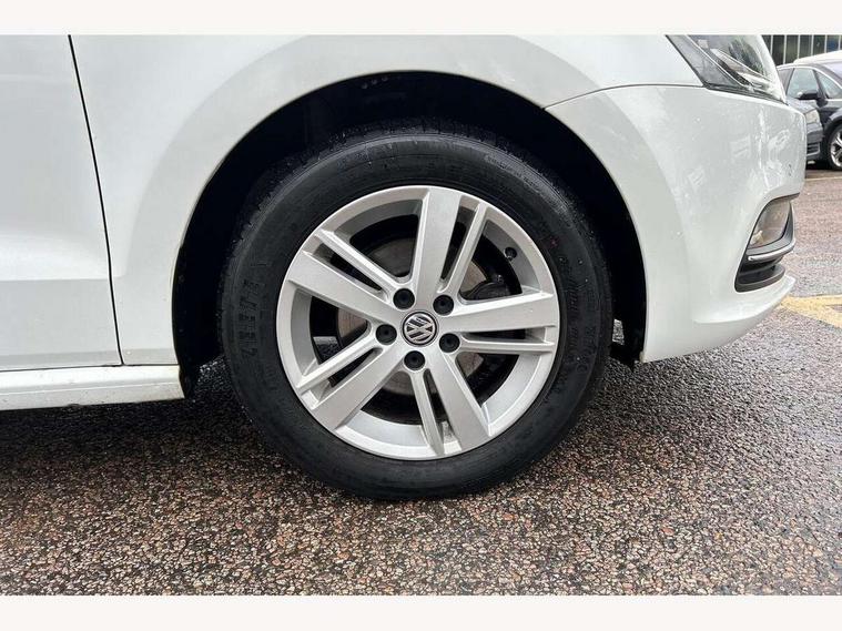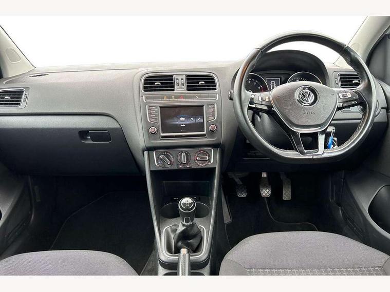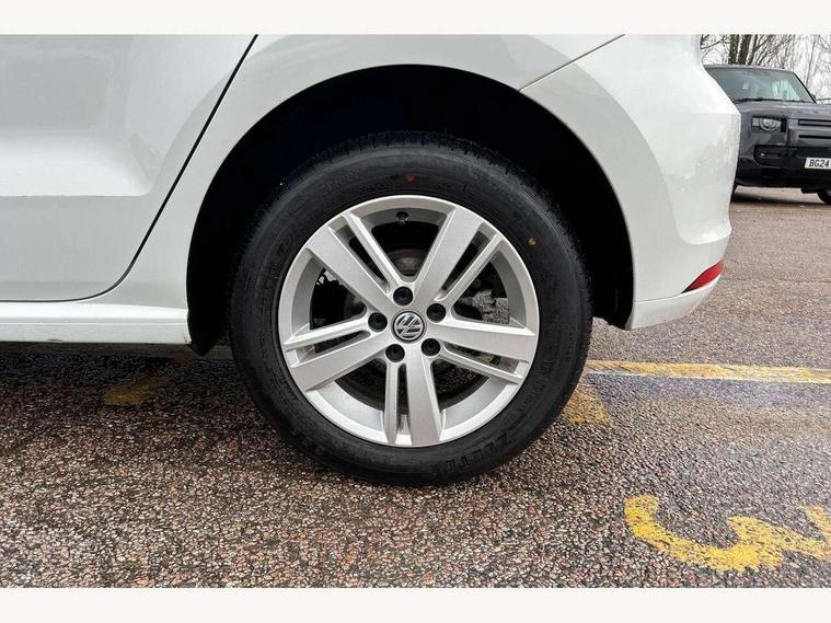 App-Connect, Bluetooth Telephone preparation, Driver alert system, Multi function display, Multifunction computer, PAS - speed related, Service interval indicator, Ultrasonic front and rear optical and audible parking sensors, Warning buzzer and light for front seatbelts unfastened, 6 speakers, Composition media system with radio, glovebox mounted CD, colour touch screen, SD card, aux-in, USB, multimedia interface, DAB Digital radio, Black grille with chrome surround, Body colour bumpers, Body colour door handles, Body colour door mirrors, Body coloured side sills, Chrome trimmed front air intake surrounds, Electric folding door mirrors, Electric front windows, Electric operated/heated door mirrors, Front fog lights with static cornering function, Front wash/wipe with interval delay, Heat insulated tinted glass 65% light absorbing from B pillar back, Heated rear window with auto timer, Rear electric windows, Rear windscreen washer and wiper with interval delay, 12V power socket in centre console, 2 bag hooks in luggage compartment, 2 cupholders, 3 rear head restraints, 3 spoke steering wheel, 4 grab handles, 60/40 split folding rear seat, Centre console storage, Chrome interior door handles, Driver and passenger sunvisors, Driver seat height adjust, Dust/pollen filter, Front door pockets, Front passenger seat height adjust, Front seat backrest storage nets, Front/rear reading lights, Glovebox, Height/reach adjustable steering column, Illuminated vanity mirror, Interior light with delay, Isofix Preparation 2 Rear child seats, Luggage compartment cover, removable, Luggage compartment lighting, Matt chrome gear lever gaiter surround, Multifunction leather steering wheel with leather gear knob/handbrake grip, Storage compartment in front doors, Storage compartment in rear doors, Sunglasses holder, Variable boot floor, Light and sight pack - Polo, 3 point height adj front seatbelts + pretensioners, 3x3 point rear seatbelts, ABS, Automatic post collision braking, Driver/front passenger airbag, Driver/Passenger whiplash optimised head restraints, ESC - Electronic Stability Control + traction control, ESP with EDL + ASR, Hill hold control, Hydraulic Brake Assist (HBA), Tyre pressure monitoring system, Alarm with remote central locking and interior protection, Electronic engine immobiliser, Air vents in Matt chrome, Matt chrome interior trim, 15" steel spare wheel,
