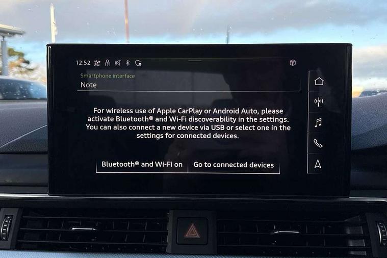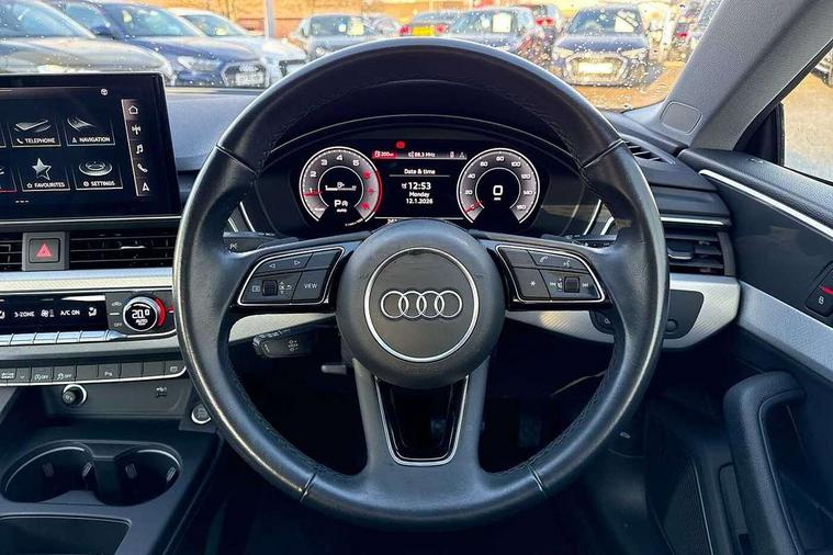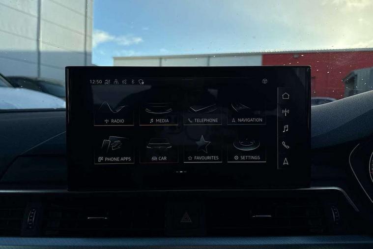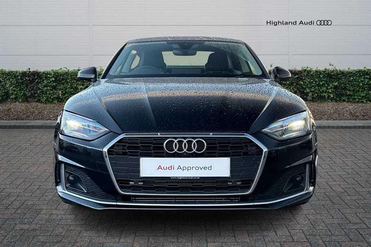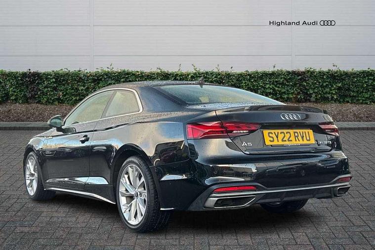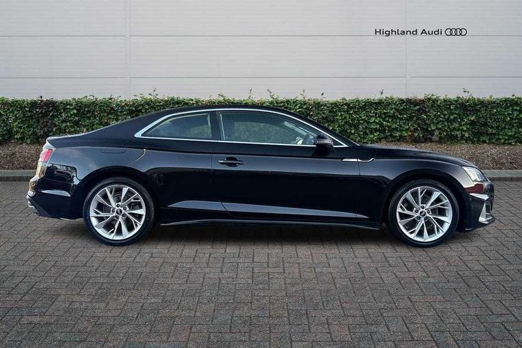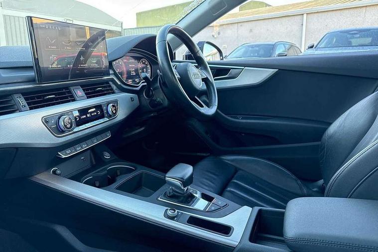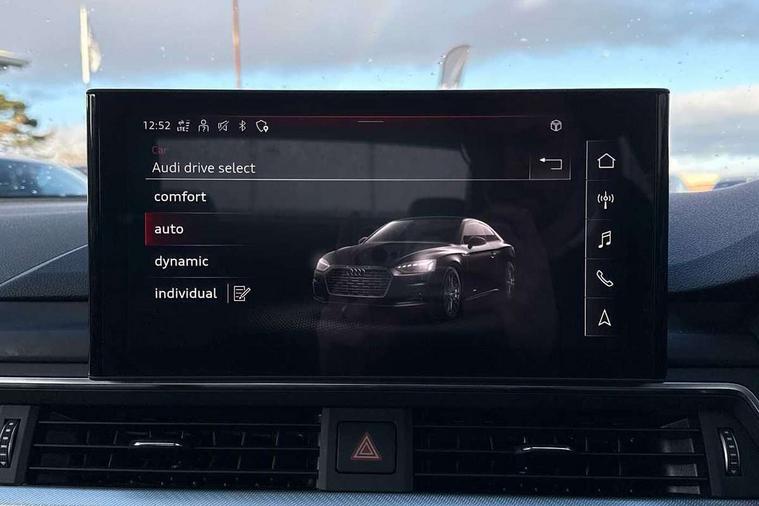 Aluminium ellipse silver inlays, LED interior light pack - A5/RS5, Tyre repair kit, Anti theft alarm system, Anti theft wheel bolts, Immobiliser, Keyless Go, Remote central locking, 8 passive loudspeakers, CD player, DAB digital radio reception, Two additional USB ports for rear passenger in rear centre console, Two SDXC card slots, 2 x 3-point rear seat belts, 6 airbags - Driver, front passenger, curtain and side airbags, Electromechanical parking brake, Electronic Stabilisation Control (ESC) including ABS, ASR and EDL, Front passenger airbag deactivation, Height adjustable front seatbelts, Hill hold assist, Multi collision brake assist, Pop-up bonnet for pedestrian protection, Pre sense city, Seatbelt monitoring, Tyre pressure warning, Variable restraint system, Warning triangle and first aid kit, Auto dimming rear view mirror, Body colour bumpers, Body colour door handles, Body colour side sill trim, Body coloured door mirrors, Electric adjustable heated door mirrors, Electric folding door mirrors, Electric front windows, Front fog lights, LED headlights and rear lights with LED daytime running lights, LED third brake light, Matt aluminium silver tailpipe trim, Radiator grille and air inlets in titanium black with matt aluminium silver inserts, Rain and light sensors, Rear diffuser in matt titanium black with trim strip in matt aluminium silver, Rear side wing doors, Sport front and rear bumpers with side skirts, Variable front intermittent wipers, Windscreen with acoustic glazing, 3 spoke high multi-function leather sport steering wheel with paddle shift and height and reach adjustable, 4 way electric lumbar support for driver and front passenger, 40/20/40 split folding 2 seater rear seat bench with rear centre armrest, Deluxe 3 zone electronic climate control, Door sill trims with aluminium inlay, Front centre armrest, Front head restraints, Front/rear floor mats, Heated front seats, ISOFIX child seat mounting and top tether, Luggage compartment mat, Manual seat adjustment, Rear headrests, Single front passenger seat, Sunvisors with vanity mirrors, Tool kit, Twin leather upholstery + front sports seats, Audi connect safety and service (e-call), Audi connect with Amazon Alexa Integration, Audi drive select (Auto, Comfort, Dynamic and Individual), Audi parking system plus with front and rear sensors, Audi smartphone interface, Audi virtual cockpit - 12.3" full colour digital instrument cluster, vehicle/engine speed, 3D navi map, Radio/media information+Driver assistance systems, Automatic start-stop system with coasting functionality and efficiency programme, Bluetooth interface, Cruise control system with speed limiter with free wheeling capability, Electric boot lid release, Electro-mechanical power steering, Email, calendar and text messages displayed via MMI, MMI nav+ with MMI touch - 10.1" high resolution MMI display, touch sensitive, 3D map, route/country info, dynamic route guide, personal route assist, Rear view camera, Service interval indicator, Voice control system, Comfort dynamic suspension,