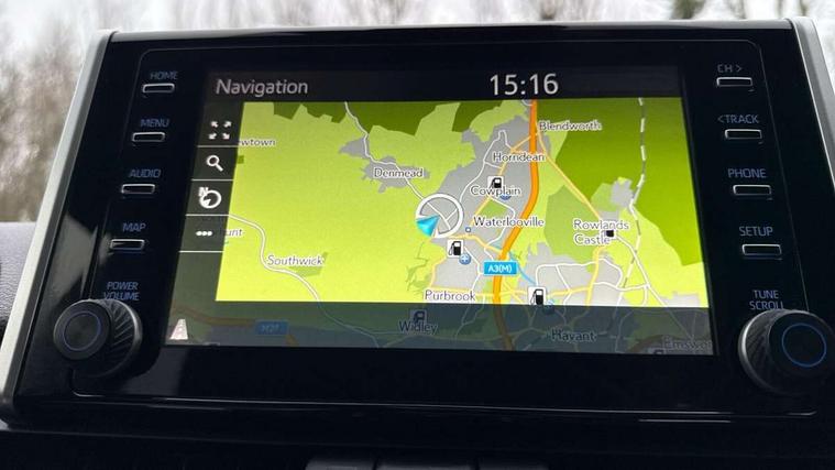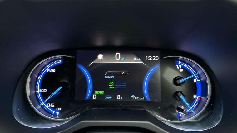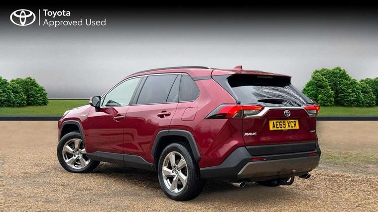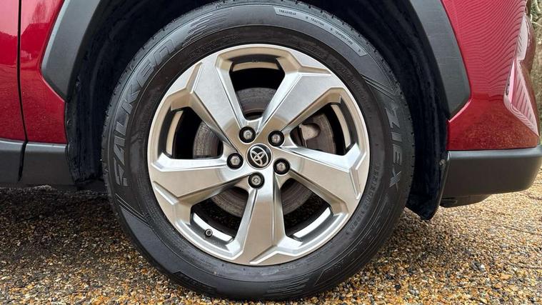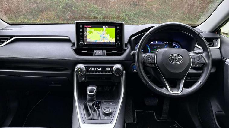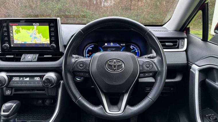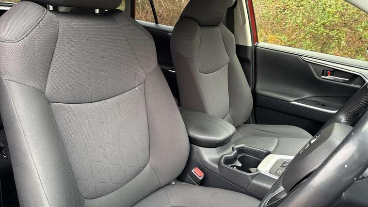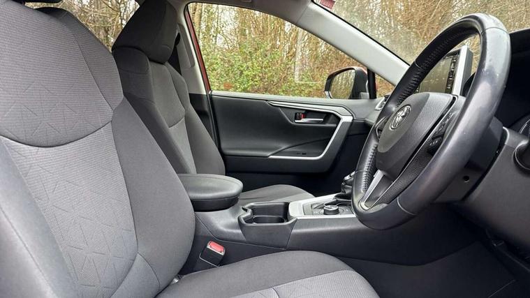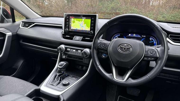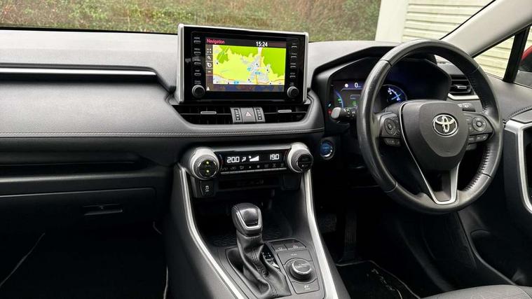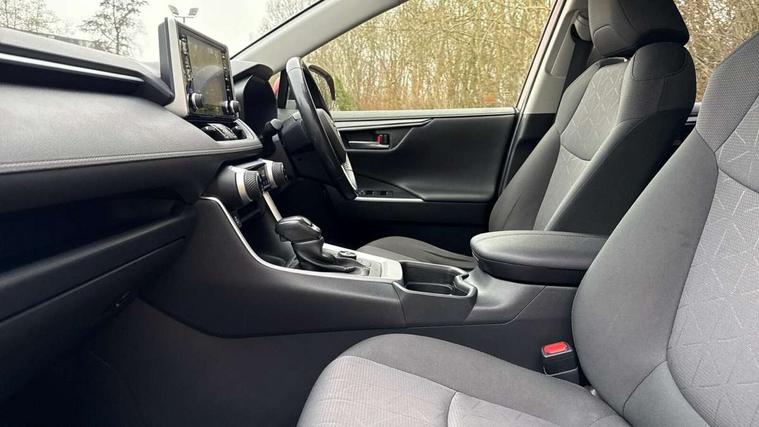 7" colour TFT display, Adaptive cruise control with lane trace assist, Adjustable speed limiter, Bluetooth system, Cyclist Detection, Drive mode selector, eCall emergency call system, ECO-driving indicator, Electric power steering, Hybrid system indicator, Lane departure warning system, Lights on warning, Night Time Pedestrian Detection, Pedestrial detection, Power boot opening and closing, Rear parking camera, Rear parking sensors, Remote boot door release in cabin, Tachometer, Touch 2 Go navigation system including 3D maps and voice control, Traffic sign recognition, Trip computer, Voice control system, Vehicle Stability Control (VSC), 6 speakers, 8" Multimedia display touch screen, Auxiliary socket for external MP3 player, DAB audio, Steering wheel mounted audio controls, Toyota touch media system, USB connection, Auto dimming interior mirror, Auto high beam, Automatic headlamp levelling, Automatic headlights, Automatically retractable door mirrors, Black roof rails, Body colour door handles, Body colour door mirrors, Body colour rear spoiler, Body coloured bumpers, Body coloured Shark-fin antenna, Electric adjustable door mirrors, Emergency brake-light signal (EBS), Follow me home headlights, Front fog lights, Headlight cleaners, Heated door mirrors, LED daytime running lights, LED High mounted stop lamp, LED rear lights, Meshed upper front grille, Parabola LED headlights, Power front windows, Power rear windows, Privacy glass, Rear screen wiper - intermittent, Rear windscreen defogger, Silver front under-run, Silver rear under-run, Trailer Sway Control, Turning signal integrated indicators in door mirrors, 3 rear headrests, 60/40 split fold rear seat back, Boot light, Clean air filter, Cloth upholstery, Driver and front passenger personal light, Driver and front passenger Whiplash Injury Lessening seats, Driver and passenger sunvisors with illuminated vanity mirrors, Dual sided deck board in boot, Dual zone automatic air conditioning, Floor mats, Folding rear centre armrest, Front and rear bottle holders, Front centre armrest, Front footwell lights, Front headrests, Front/rear roof mounted assist grips, Grey roof lining, Isofix child seat preparation, Leather gear shift with chrome surround, Manual telescopic and tilt 3-spoke leather steering wheel with Chrome insert, Manually height-adjustable sliding and reclining driver seat, Manually reclining and sliding front passenger seat, Pollen filter, Rear coat hooks, Rear door armrests, Rear passenger air vents, Reclining rear seats, Satin chrome interior door handles, Sunglasses holder, Parking pack - Rav4, 3x3 point rear seatbelts, ABS/EBD, Adjustable front driver and passenger seat belt extender, Brake assist function, Child proof door locks, Collision mitigation braking system, Driver/Front Passenger airbags, Driver/front passenger side airbags, Drivers knee airbag, Electronic parking brake, Electronic Stability Programme (ESP), Emergency brake light system (EBS), Front and rear curtain airbags, Front and rear seatbelt reminder, Hill start assist, Passenger airbag cut-off device, Seatbelt pretensioners with load limiters, Traction control, Tyre pressure warning, Alarm/immobiliser, Glass-breaking alarm sensors, Light - on and Key in reminder, Remote central locking, Smart entry + Smart start, Speed sensitive auto door locking, Tilt detection sensors, Piano black centre console with silver insert, Soft-touch black lower dashboard, Soft-touch black upper dashboard with silver insert, Full size spare wheel,