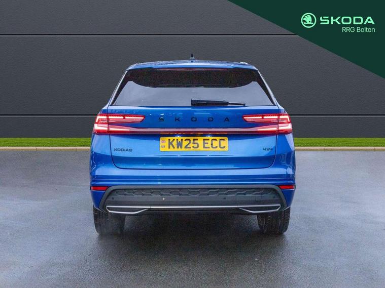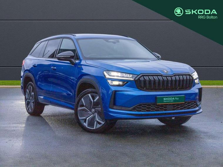 13" satellite navigation touchscreen display, Blind spot detection with door exit warning, Bluetooth system, ChatGPT functionality, Driver alert - Fatigue and drowsiness monitor, Dry display cleaner, Emergency call, Front and rear parking sensors, Front cross traffic assist, Lane assist, Off road modes, PAS, Rear traffic assist, Tailgate unlocking from outside, Traffic sign recognition, USB C Port x 2 in front centre console, Virtual Cockpit - 10.25" digital display, Voice control system, Wireless charging for two smartphones (15W) with cooling function, Wireless SmartLink for Apple CarPlay and Android Auto, Stop/start function, 2x USB-C in the rear, DAB Digital radio, Aero front windscreen wipers with intermittent function, Auto dimming rear view mirror, AWL (all weather lighting) and all weather light with cornering function, Black diffuser and decorative tailpipe with a unique dark chrome finish, Black roof rails, Black sports styling including front grille and window surrounds, Black wheel arch surrounds, Body colour door handles, Cornering light and poor weather light, Electric folding /adjustable/separted heated/folding door mirrors, auto dimming with boarding sports and memory function, Electric front and rear windows, Exterior black decorative trims, Front and rear sports bumpers including lower rear chrome strip, Gloss black door mirrors, Gloss black window frame and D pillar, Heat insulating glass in windshield, Heated rear window, Ice scraper in fuel tank cap, LED daytime running lights, LED third brake light in rear spoiler, Light assistant with automatic headlight control and coming home feature, Logo projection in door mirrors, Privacy glass, Rear roof spoiler, Rear side wing doors, Rear window wiper, Red decorative strip between rear LED lights, Safety reflectors on front and rear doors, Sportline badge on front fenders, Tailgate lettering in Black, Unique dark chrome design logo on alloy wheels, Window control switches with black trim, Windscreen wipers with rain sensor, Without engine designation, 1.5l bottle holder points in all door, 1x centre rear reading light, 2 seat bench in 3rd row, 3 configurable smart dials with 32mm coloured display, 3 seat bench in 2nd row, 4 foldable roof handles with rear coat hooks, Aluminium pedals, Ambient interior lighting - Dashboard, front-door stowage compartments, front and rear door panels and footwell lighting, Automatic gear selector on steering column, Chrome interior door handles, Driver/front passenger reading lights, Fabric headlining, Fixed bench 40:60:40 split folding backrests, Front and rear floor mats, Front centre armrest with jumbo box storage compartment, cup holder and 12V socket, Front sport seats, Height adjustable front headrests, Interior black decorative trims, Isofix child seat fittings in outer middle row rear seats and front passenger with top tether, Manually adjustable steering column, Pollen filter, Rear centre armrest with cupholders, Rear seat boot backrest release, Single front passenger seat, Skoda lettering on steering wheel, Storage pocket including mobile phone pockets on the backs of the front seats, Sunvisors with illuminated vanity mirrors, Three rear height adjustable headrests, Ticket holder on A Pillar, Tri zone climate control, Umbrella in door panel x1 made from sustainable materials, Upper and lower glovebox with card holder and coin compartment, USB C port by rear view mirror for charging only (15W), Acoustic package - Kodiaq, Performance package - Kodiaq, Sportline design selection pack - Kodiaq, Auto door release and activation of warning lights in the event of an accident, Driver and front passenger airbag with knee airbag and front passenger airbag deactivation, Electric child locks, Electronic parking brake, ESC (incl. ABS+EMD+MSR+ASR+EDL+HBA+DSR+RBS+ESBS+MCB+TSA+XDS), Front assist with braking reaction to vehicles, pedestrians and cyclists, Front disc brakes, Fuel cut off safety device, Height adjustable front 3 point seatbelts + pretensioners, Hill hold assist, Junction assist with automatic emergency braking, Rear disc brakes, Safety vest holder in door, Seat belt reminder for all seats, Three point rear seat belts, Two tone horn, Tyre pressure monitor, Alarm with interior monitoring and tilt sensor with safe function, Anti-theft wheel bolts, Immobiliser, Remote central locking with 2 keys, 20" Rila anthacite polished alloy wheel with black matte aero covers,