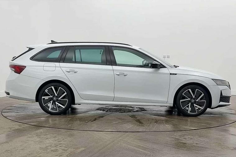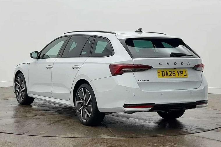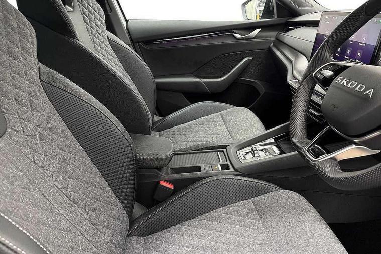 1x USB Typc C port in rear view mirror, 4x USB Type C ports - 2x in front centre console and 2x in rear (45W), Drive mode selection, Driver fatigue sensor, eCall emergency system, Front assist system, Progressive dynamic steering, Traffic sign recognition, Turn Assist, Virtual Cockpit - 10.25" digital display, Voice control system, Wireless charging (15W) with cooling function, Wireless SmartLink for Apple CarPlay and Android Auto, Sports suspension with 15mm lower, 13" touchscreen display with navigation, DAB Digital radio, Aero front windscreen wipers with intermittent function, Auto dimming rear view mirror, Body colour bumpers, Body colour door handles, Electric front and rear windows, Exterior gloss black sports styling including front grille, window surrounds, door mirrors and badging, Gloss black diffuser, Gloss black roof rails, Gloss black spoiler, Heated rear windscreen, High beam control, High level third brake light, Ice scraper in fuel cap, LED daytime running lights, Logo projection in front doors, Rain and light sensors, Rear fog light on one side, Rear privacy glass, Rear side wing doors, Rear window wiper, 12 volt socket in boot, 3 rear headrests, 3 seat bench in 2nd row, 4 foldable roof handles, Aluminium pedals, Front head restraints, Front sport seats, Heated front seats, Illuminated glovebox, Interior door handles in dark chrome, Jumbo Box storage, Luggage compartment lighting x2 lights, Mechanical rear seat release from boot, Single front passenger seat, Steering wheel in black leather with black stitching, Storage compartments in left and right of boot, Sun visors with mirrors, Sunglasses storage, Ticket holder, Umbrella in door panel, Unsplit rear bench seat, split folding backrest with centre armrest with cupholder, SportLine Design Selection pack - Octavia, 3x3 point rear seat belts, Alarm with interior monitoring, tilt sensor and back up horn, Curtain airbags and front side airbags, Driver and front passenger airbags, Drivers knee airbag, Electronic parking brake, ESC including ABS, EBV, MSR, ASR, EDS, HBA, DSR, Front central airbag, Hill hold assist, ISOFIX on front passenger seat and outer rear seats, Passenger airbag deactivate switch, Three point seat belts in front and rear, Two tone horn, Tyre pressure monitor, Visual and acoustic seat belt reminder, Warning reflectors in front door, Anti-theft wheel bolts, Keyless start/stop, Remote central locking, Gloss black air vent surrounds,