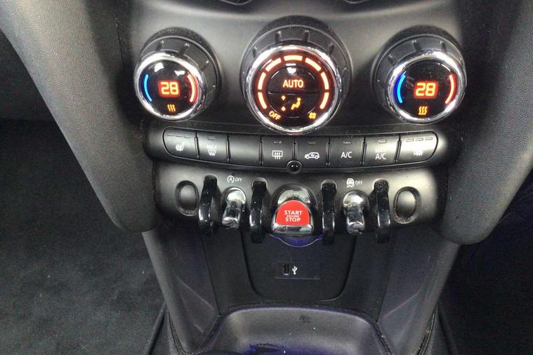 Automatic start/stop function with brake energy recuperation, Compatible mobile phone bluetooth with audio streaming, Electro-mechanical speed dependant steering assistance, Instrument cluster, Mini E-call, MINI TeleServices, On board computer, Service interval indicator, Double Vanos system, Fully variable valve control, Gear change indicator display, High precision injection, Steptronic transmission with double clutch, FM tuner and DAB digital radio, Automatic headlight activation switch, Body colour fuel filler cap, Body colour roof and mirror caps, Chrome border high gloss black slats radiator grille, Dynamic brake lights, Electric front+rear windows, Exhaust tailpipe, Heated rear window, Heated windscreen washer jets, Metal door sill strips with MINI imprint, Rain sensor window wipers, Rear fog lights, Rear LED lights with union jack design, Rear window wiper, Side scuttle panel with integrated indicator, Sun/heat protection glass, White indicator lenses, 12V Accessory socket in centre console, 4 lashing eyes in luggage compartment, 60/40 split folding rear seat, Chrome interior highlights, Colour line - Carbon black, Cupholders, Front and rear head restraints, Front and rear isofix with front passenger airbag deactivation, Glove compartment, Height and length steering column adjustment, Interior lighting with 12 basic colours selectable via toggle switch in roof, Knee roll and door armrests, Leather gearshift lever and handbrake gaiters, LED reading lights, vanity mirror lights, front foot well light and spotlight on front seats, Mechanical seat adjustment, driver seat height adjust, forward/back and front seats backrest, Mini logo projection on floor from drivers exterior mirror, Multifunction steering wheel, Satellite grey headlining, Satellite grey headlining including grab handles and clothes hooks, Storage compartments in doors, Sunvisors with vanity mirrors, 3 point seatbelts on all five seats, 6 Airbags - front, side, head and seat belt tensioners, Anti-lock braking system (ABS), DSC - Dynamic Stability Control, Front and rear disc brakes, Hill start assist, Single tone fanfare horn, Tyre pressure monitoring system, Alarm system with tilt sensor, monitoring doors, bonnet interior and tailgate, Electronic vehicle immobiliser, Start/stop toggle with keyless go, Tool kit, Tyre repair kit,