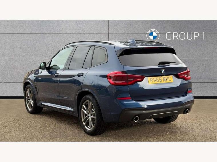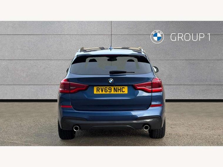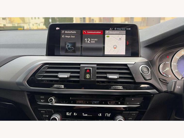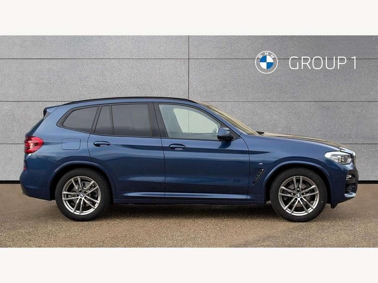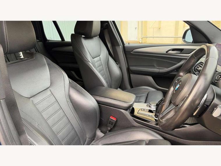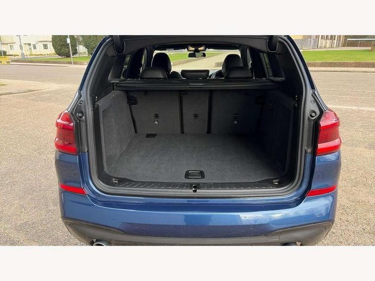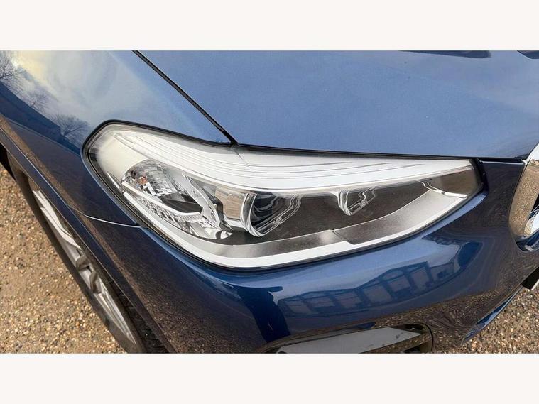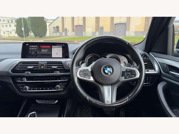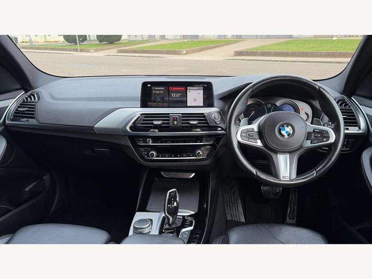 Active Guard incl speed limiting and lane departure functions with auto steering, and front collision warning with brake intervention, Attentiveness assist, Automatic tailgate operation, BMW Live Cockpit Professional sat nav system including 10.25" high resolution display and Intelligent Voice Assistant, BMW Online services, BMW Teleservices, Brake pad wear indicator in front and rear, Check Control warning system for monitoring of lights and door/luggage compartment open warning, Control display - 6.5" colour display screen, Electric Power Steering (EPS) with Servotronic, Front/rear Parking distance control, iDrive Controller with 8 favourite buttons, Lights on warning by audio warning signal when ignition is switched off, Navigation system - BMW Professional multimedia with Hard disc drive (HDD) and 10.25" touch display, Oil sensor for level and grade, warning by check control system, On board computer - average speed+fuel consumption, service interval, clock/date, odometer/trip meter, outside temperature display and ice warning, Optimum shift indicator, Personal Profile - automatic lock when driving away selectable, Real time traffic information, Semi digital instrument cluster, Stop/start system, Automatic transmission with gearshift paddles, Diesel particulate filter, Incorrect fuelling protection, Larger capacity fuel tank, Multi-link rear suspension, Performance Control, Auxiliary socket for external MP3 player, BMW professional radio/CD/MP3, DAB Digital radio, Acoustic glazing, Black finish on B pillars, Body colour door handles, Body colour electric adjust heated aspherical door mirrors, Body colour roof mouldings, Body coloured bumpers, Chrome kidney grille with high gloss black vertical slats, Direction indicator, side repeaters, integrated in exterior mirrors, Dual chrome exhaust, Dynamic brake lights, Exterior mirrors - electrically folding with anti-dazzle, Fingertip control / anti-trap function on electric window, Follow me home headlights, Front and rear bumper system with replaceable deformation elements, Front and rear electric windows, Green tinted heat insulating glass, Heated windscreen washer jets, Height adjustable headlamps, High gloss black door sill finishers, High gloss black shadow line roof rails, High gloss shadowline exterior trim in decorative moulding side frame/recess cover/guide rail/B, C pillars/mirror frame and triangle with mirror base, High level 3rd brake light incorporating LED Technology, Interior rear view electrochromatic mirror with automatic anti dazzle function, LED front fog lights, LED tail lights, Lightweight engineering, M aerodynamic bodystyling, Model designation, Rain sensor including auto headlights activation, Rear wiper, Shark fin antenna, Visible VIN plate, Welcome lighting, Windscreen wipers with adjustable interval, 12V socket in centre console and luggage area, 3 rear headrests, 3 zone automatic air conditioning, 4 lashing points to secure luggage, Ambient lighting, Anthracite headlining, Anthracite Velour floor mats, Driver/passenger sunvisors with ticket holders + illuminated vanity mirrors, Foldable boot floor with storage compartment, Four grab handles integrated in roof lining, Front and rear bottle holders integrated into door trim storage compartments, Front and rear side armrests integrated into door trim, Front centre armrest with storage compartment, Front footwell lights, Front sports seats, Front/rear courtesy lights with soft on/off dimming, Front/rear reading lights, Height adjustable front/rear head restraints, Isofix rear child seat preparation, Leather gear knob, Luggage area underfloor compartment, Luggage compartment lighting, M Sport multifunction leather steering wheel, Parcel shelf removeable and storable under boot floor, Reach and rake adjustable steering column, Rear centre armrest with 2 cupholders, Rear seat centre armrest with two cupholders, Removable / retractable luggage cover, Slope adjustable rear seats, Storage compartment in rear centre console and front/rear door trims, Through loading system with 40/20/40 split folding rear seat, Toolkit located in luggage compartment, Two front cupholders with removable oddments tray/lid, Vernasca leather upholstery, Connected pack professional - X3, ABS/EBD, ADB - Automatic Differential Brake, Automatic Stability Control (ASC), Battery safety cut-off, BMW emergency call, Brake assist, Brake assist function, Brake drying, Brake energy regeneration, Braking pre-tensioning, Child locks on rear doors, Cornering brake control (CBC), Crash Sensor - activation of central locking release, hazard warning light and interior lighting, Deactivation of fuel pump in the event of a crash, Driver and front passenger front and side airbags with passenger deactivation and ITS front and rear head airbags, DSC+, Dynamic brake control, Dynamic Traction Control - DTC, Electromechanical parking brake, Front seat belts warning, Hill descent control, Hill start assist, Seatbelt security check for front seats, Side impact protection, Three point seatbelts to all seats with front and outer rear pyrotechnic belt tensioners and seat belt force limiters, Two tone horn, Tyre pressure monitoring system, Ventilated front and rear disc brakes, Warning triangle and first aid kit, Central locking switch for all doors, fuel filler cap and luggage compartment, Electronic engine immobiliser, Locking wheel nuts, Remote control including two integrated key - one button for open/close all lockable content, windows and separate button for open luggage compartment, Remote control Thatcham category 1 alarm, Start/stop button with Comfort Go keyless engine start and auto Start/stop deactivation button, Low rolling resistance tyres,