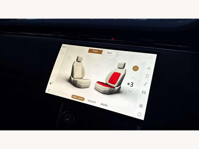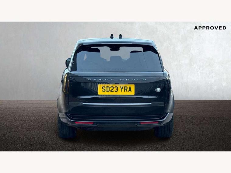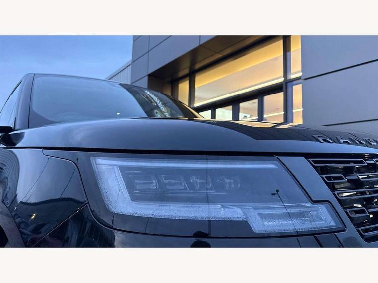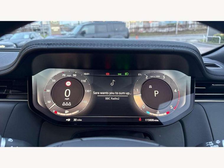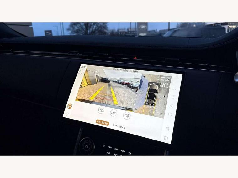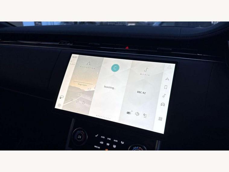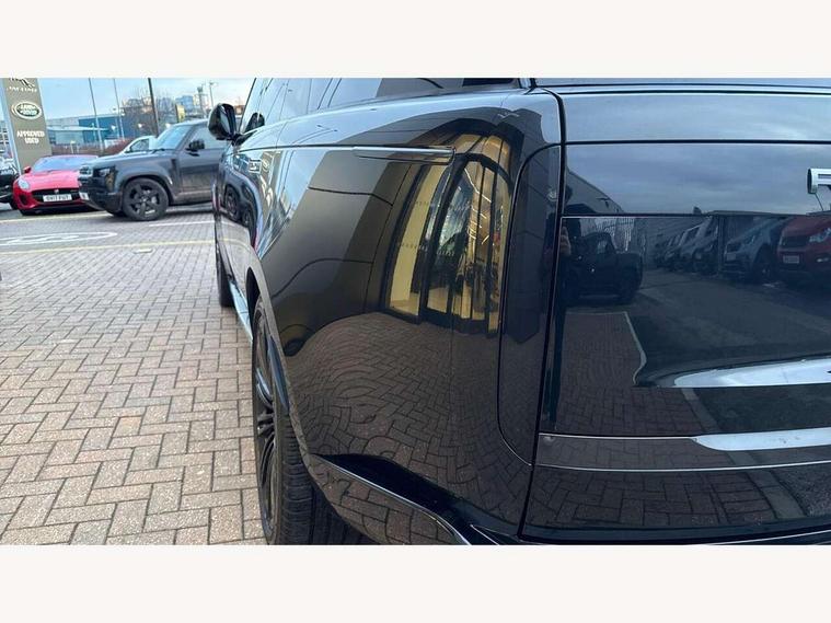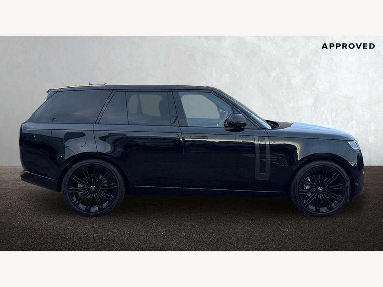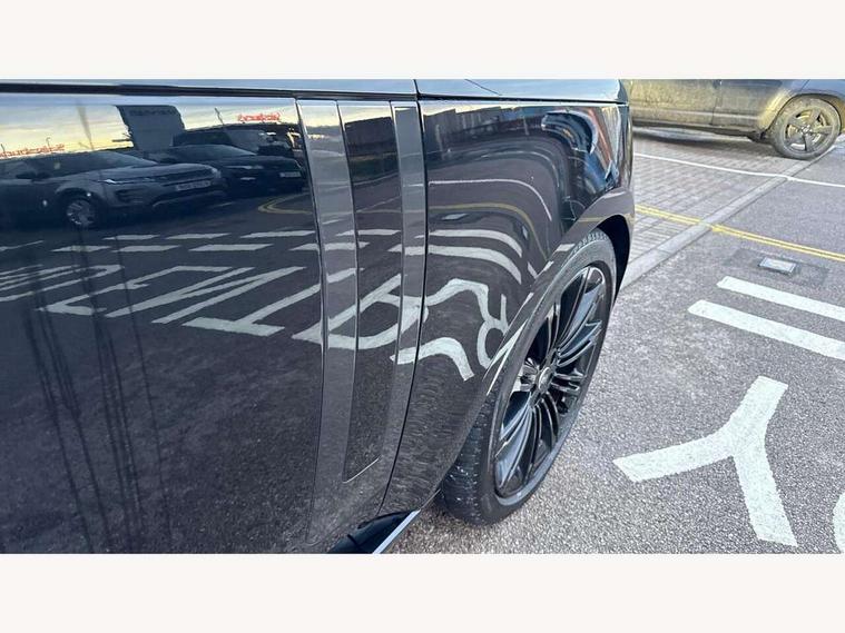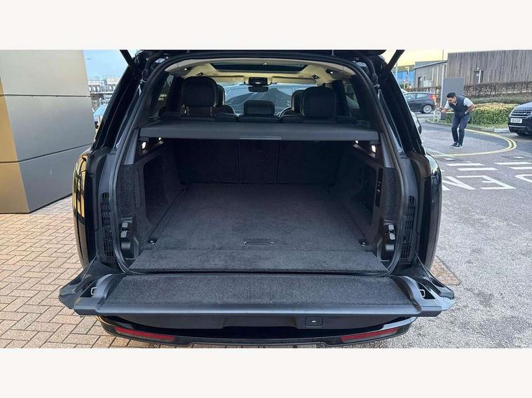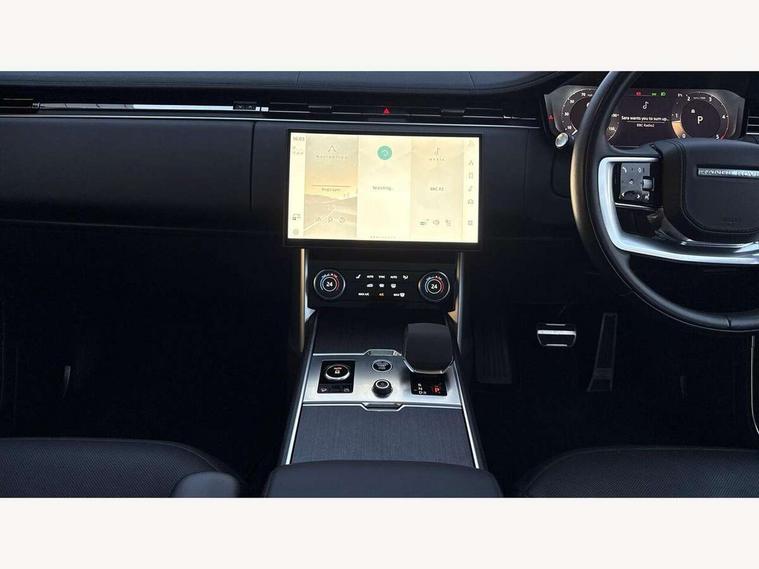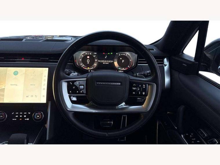 13.1" Touchscreen, 3D surround camera inc frwd traffic detection, vehicle clearance guidance, 3D view, clearsight ground view, manoevure light, 360 parking aid, wade sensing, All Terrain Info Centre, All wheel steering, Android Auto, Apple car play, Blind spot assist, Bluetooth connectivity streaming, Driver condition response, Eco mode, Electric power assisted steering (EPAS), Emergency call service, Front and rear parking aid, Interactive driver display, Lane keep assist, Rear collision monitor, Rear traffic monitor, Remote, Traffic sign recognition with adaptive speed limiter, Wi-Fi Enabled with data plan, Wireless device charging with phone signal booster, 8 speed automatic transmission, Active damper technology system, Adaptive dynamics, All terrain progress control, All Wheel Drive (AWD), Automatic access height, Terrain Response 2 Auto, Twin speed transfer box, Digital Audio Broadcast radio-DAB, Pivi pro including smart settings, Connected navigation pro, nuance speech, USB socket, Acoustic laminated windscreen, Animated directional indicators, Automatic headlights, Automatic levelling headlights, Centre high mounted stop light, Electric windows with one touch open/close and anti trap, Engine cover, Flush deployable exterior door handles, Front and rear recovery eyes, Front fog lights, Headlamp power wash, Heated rear window, Heated washer jets, LED tail lights, No badges, Power fold, auto-dimming, heated door mirrors with approach lights, Rain sensing windscreen wipers, Rear boot, Rear fog lights, Rear side wing doors, Side repeater indicators in mirror, Trailer stability assist, Winter wiper park position, 12V power sockets, 3 seat bench in 2nd row, Air quality sensor, Bright metal pedals, Cabin lighting, Customer configurable single point entry, Driver and passenger front seat armrests, Easy boot loading, Ebony Carpet, Front and rear cupholders, Front and rear grab handles, Front head restraints, Gearshift paddles, Heated steering wheel, Hook in load space, Loadspace light, Luggage tie down in loadspace, Multifunction steering wheel, Rear centre armrest, Rear head restraints, Rear ISOFIX, Single front passenger seat, Twin blade sunvisors with Illuminated vanity mirrors, Upper and lower glovebox, Online pack with data plan - Range Rover, 3x3 point rear seat belts, Anti-lock braking system (ABS), Brake hold function, Cornering brake control (CBC), Customer configurable autolock, DSC - Dynamic Stability Control, Electronic brake force distribution, Electronic parking brake, Electronic traction control, Emergency brake assist, Emergency braking, Front airbags with passenger seat occupant detector, Front side airbags, Hill descent control, Hill launch assist, Low traction launch, Occupant protection assist, Power operated child locks, Roll stability control, Tyre pressure monitoring system (TPMS), Immobiliser, Intrusion sensor and alarm, Keyless entry, Locking wheel nuts, Remote central locking, Noble chrome controls,