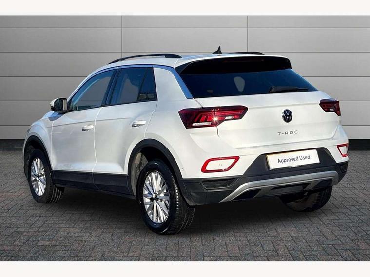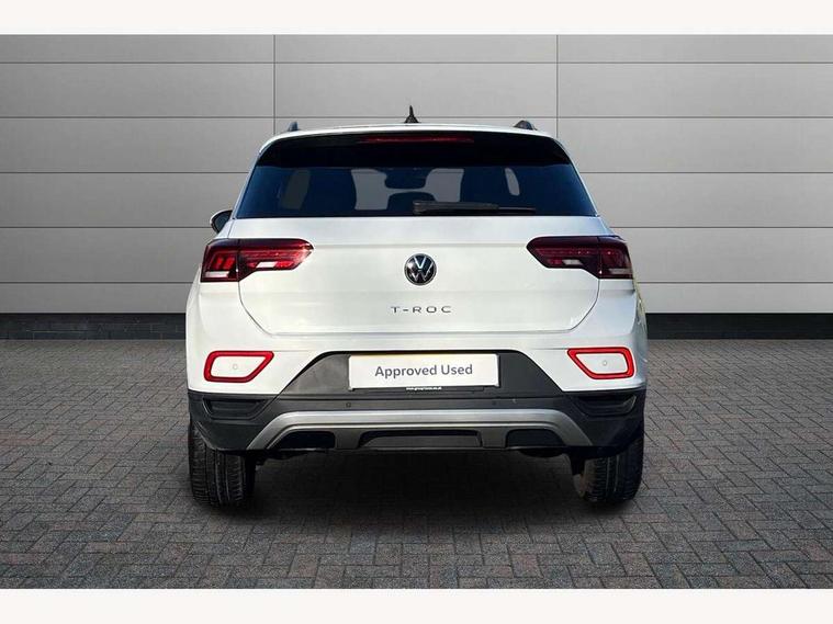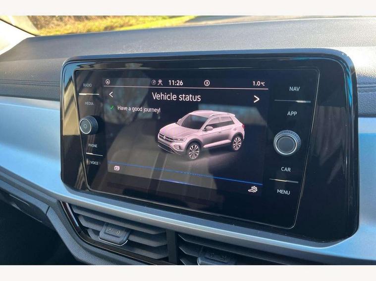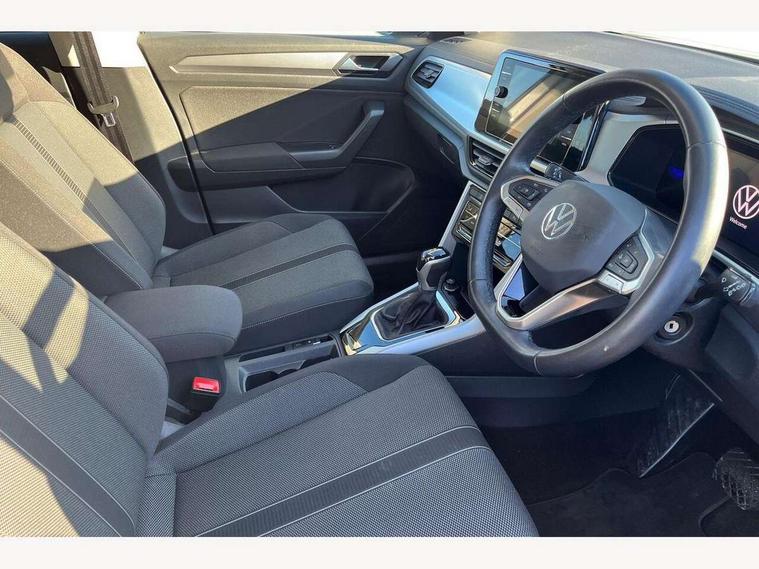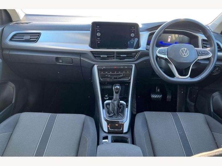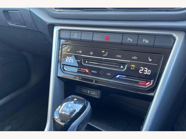 Bluetooth mobile phone interface, Driver alert system with fatigue detection, Driver tips and journey analysis, Emergency call service, Lane keeping system Lane Assist, Modified key software - reduce switch off time for key status change to Long no motion, Online services, Park assist including front and rear parking sensors, Power assisted speed sensitive steering, Service interval indicator, Tailgate/trunk lid release from outside, Think blue trainer driver tips and journey analysis, Warning sound and light for front seatbelts unfastened, Wireless app connect, Battery regeneration during braking, Front shock absorption, Rear shock absorption chassis with increased ride height, Start/stop function with battery regeneration, DAB Digital radio, Diversity antenna for FM reception, Music playback - MP3, WMA and AAC files, Premium USB cable in choice of either Apple or Android smartphone compatibility, SD card slot, Simultaneous pairing of 2 compatible mobile devices, Title and cover art display, We Connect and We Connect Plus functionality, 3rd brake light, Auto dimming interior rear view mirror, Automatic hazard lights activation under emergency braking, Automatic headlight control with LED separate daytime running lights with coming/leaving home function, Black roof rails, Body coloured bumpers and radiator grille with chrome trim and front fog lamps with chrome bezel, Body coloured exterior mirror housings and door handles, Extended roof spoiler, Exterior mirrors aspherical on driver side, convex on front passenger side, External USB type C socket and charging sockets, Front windscreen wiper with intermittent wipe and 4 position delay, Heated rear window, LED rear combination lamps, LED rear number plate lights, LED tail lamp rear comination lamps, Power windows with comfort operation and circuit breaker, Rain sensor, Rear exhaust tailpipe, Rear fog light on one side and reversing lights on both sides, Rear side wing doors, Rear wash/wipe with intermittent wipe setting, Remote electrically foldable door mirrors, puddle lights and reverse activated passenger's door mirror, 12V power socket in centre console, 3 rear head restraints, 3 seat bench in 2nd row, 4 load lashing points in luggage compartment, Air care climatronic air conditoning system with active combination filter and 2-zone temperature control, Ambient lighting with mirror logo projection, Cloth upholstery, Door and side trim panel in cloth, Drawer under drivers seat, Driver/front passenger seat height adjustment, Front centre armrest, Front comfort sports seats, Front cupholders x 2, Front reading light, Instrument lighting, white adjustable panel illumination, Interior light delay, Isofix child seat preparation, Leather gearshift handle, Load-through provision with cup holder when folded down ('Unsplit rear seat bench, split folding backrest, with centre armrest), Luggage compartment lighting, Lumbar support for driver's and front passengers seat, Non-folding front passenger seat backrest, Single front passenger seat, Storage compartment in left and right luggage area, Storage compartment in rear doors, Storage compartments in driver and front passenger doors, Sunvisors with illuminated vanity mirrors, Variable boot floor, height adjustable and removable, Driver assistance pack without proactive passenger protection - T-Roc, 3 point height adj front seatbelts + pretensioners, 3 point seatbelts in outer rear with ECE label, ABS, Child locks on rear doors, Driver and front passenger airbag with front passenger airbag deactivation, Driver and front passenger safety-optimised head restraints, Drivers seatbelt reminder, Electronic parking brake, Electronic Stability Control (ESC) inc EDL (Electronic Differential Lock) and ASR (Traction Control), Front and rear passengers curtain airbag system including front side airbags, Front assist with city emergency braking and pedestrian monitoring, Front disc brakes, Front seat side impact airbags, Hill start assist, Predictive pedestrian protection, Rear disc brakes, Single tone horn, Tyre pressure loss indicator, Volkswagen roadside assistance, Alarm with interior protection, Anti-theft alarm system with interior monitoring, backup horn, and towing protection, Remote central locking with SAFELOCK, radio remote control with 2 remote control folding keys, Pewter matt decorative inserts for intrument panel, centre console and door panels at the front, Trims for alloy wheels,