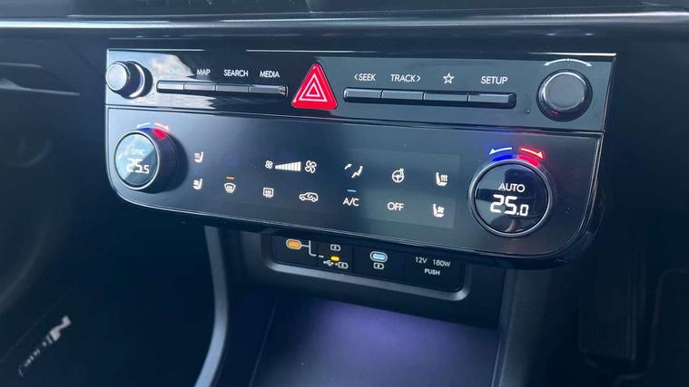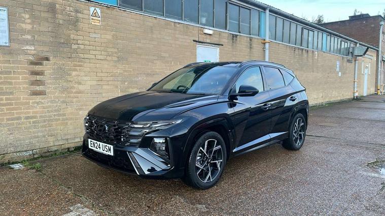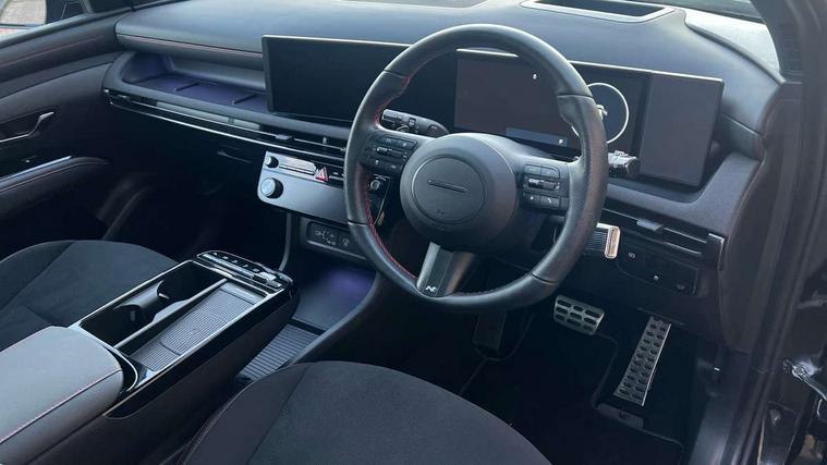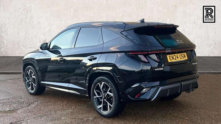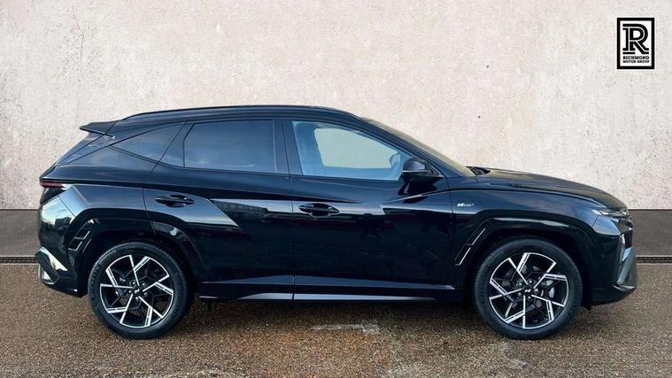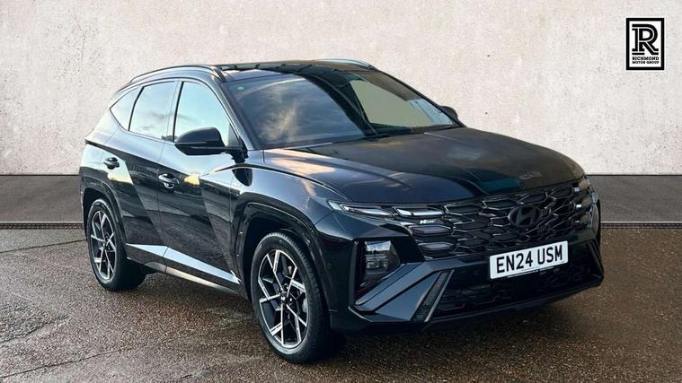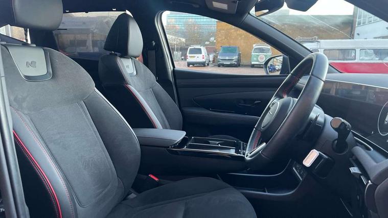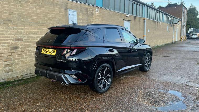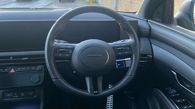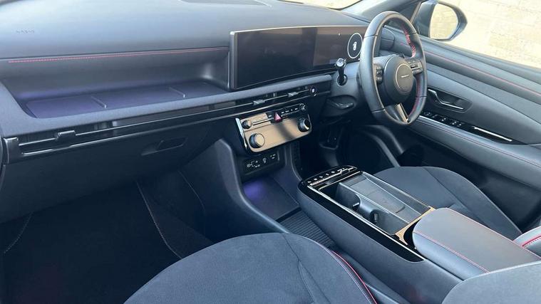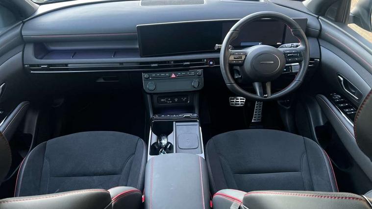 12.3" LCD display with driver's supervision instrument cluster, 12.3" widescreen navigation with bluelink and mapcare, Blind spot view monitor, Bluetooth system, Cruise control - smart adaptive speed control with stop and go function, Digital clock, Drive mode selector, Driver attention warning, E-call, Emergency stop signalling system, Forward Collision Avoidance Assist (FCA) - Car, Pedestrian and Cycle, Forward Collision Avoidance Assist Junction Turning (FCAJX), Front and rear parking sensors, Front, rear and side parking distance warning, Head up Display, Highway Driving Assist (HDA), Hyundai road side assistance, Intelligent speed limit assist, Lane follow assist, Lane keep assist, Over the air updates(OTA), Parking collision avoidance assist (PCA), PAS, Rear camera and guidance parking system, Rev counter, Smart power tailgate, Surround view monitor, Tailgate open warning light, Trip computer, Trip odometer, Voice recognition, Water temperature gauge, Windscreen washer fluid sensor and warning indicator, Wireless Apple CarPlay/Android Auto, Wireless phone charging pad, Shift by Wire Gear Selector (SBW), 2 front and 2 rear USB-C ports, DAB Digital radio, Krell premium audio system with 8 speakers and subwoofer, Steering wheel mounted audio/phone controls, Adjustable intermittent front windscreen wipers with aero wiper blade, Auto dimming rear view mirror, Automatic defog system, Automatic headlights with dusk sensor, Automatic windscreen wipers with rain sensor, Body colour bumpers, Body colour door mirrors with integrated indicators, Body colour exterior door handles, Body coloured wheel arches, Electric tilt/slide panoramic sunroof, Electrically adjustable, heated and power folding door mirrors, Follow me home headlights, Front and rear electric windows with anti-trap mechanism and one touch control, Front fog lights, Glossy black bumper mouldings, LED daytime running lights, LED rear lights, Matrix LED headlights, Positioning Lights - LED, Privacy glass - Rear windows and tailgate, Rear side wing doors, Rear wash/wipe with intermittent wipe setting, Roof rails, Soft touch rear door paneling, Tinted glass with windscreen shade band, Trailer stability assist, 12V power outlets in front console and luggage compartment, 3 seat bench in 2nd row, 40/20/40 split folding rear seat, 64 colours interior ambient lighting, Adjustable head restraints (Up and down), Cupholders in rear armrest, Door courtesy lights, Driver and passenger sunvisors with illuminated LED vanity mirrors, Driver's seat electric adjustments, Dual zone climate control, Front and rear door pockets, Front armrest with storage box, Front centre console and door bottle holders, Front passenger's seat electric adjustments, Heated front seats, Heated rear seats, Heated steering wheel, Height/reach adjustable steering column, Illuminated/air conditioned glove compartment, ISOFIX child seat anchorage points attached on outer rear seats, Leather wrapped steering wheel and gear knob, Leather/faux textile suede upholstery, LED interior lighting, Luggage compartment lighting, Luggage cover, Luggage hooks, Luggage net, Map and reading lights, Metal pedals, Rear seat remote folding function, Rear side window sunblind, Reclining rear seats, Retractable load cover, Single front passenger seat, Sunglasses holder, Touch sensitive climate controls with temperature dials, TUCSON branded metal door scuff plate, Underfloor boot compartment, Ventilated front seats, Wireless charging with armrest, N Line design package - Tucson, N Line interior design package - Tucson, Trailer wiring package - Tucson, 3x3 point rear seatbelts, Active bonnet, Airbag - Front, front side, curtain and centre front airbags, Anti-lock brake system (ABS), Brake assist function, Childproof rear door locks, Curtain airbag roll over sensor, Downhill brake control, Electric parking brake, Electronic stability control, Front and rear seatbelt reminder, Front passenger airbag deactivation switch, Front seatbelt pretensioners, Hill start assist control (HAC), Multi-Collision braking, Outer rear seatbelt height adjustment, Seatbelt height adjustment for front seats, Traction control, Tyre pressure monitoring system with individual tyre pressure display - TPMS, Vehicle stability management, Deadlocks, Immobiliser, Locking wheel nuts, Remote control central locking, Smart key with keyless entry and engine start/stop button, Speed sensitive auto door locking, Thatcham category 1 alarm, 19" Alloy wheels, Tyre repair kit,