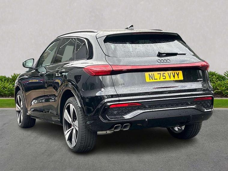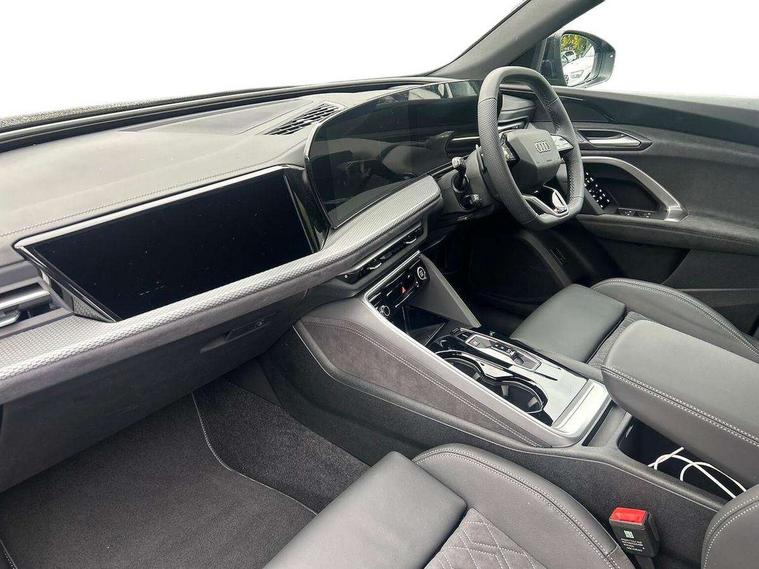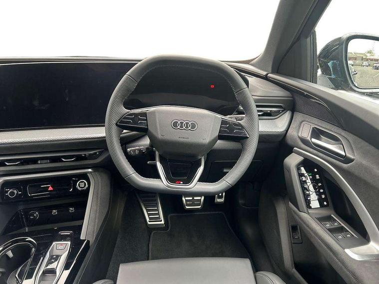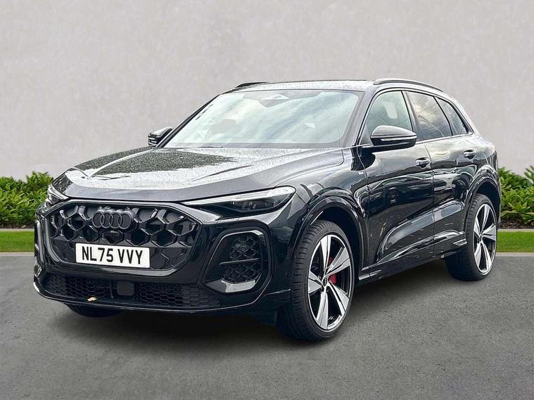 Adaptive cruise control, Advanced driver attention alert, Audi application store, Audi connect emergency call and service, Audi drive select, Audi smartphone interface, Audi virtual cockpit plus with 11.9" OLED colour display, Camera based traffic sign recognition, Fatigue monitor, Front cross traffic intersection assist, Lane change assistant with exit warning system, rear cross traffic alert and rear turn assist, Lane departure warning with emergency assist, MMI 10.9" front passenger touch display, MMI navigation plus with high resolution 14.5" OLED touchscreen colour display, Park assist plus, Parking system plus with 360 display, PAS, Reversing camera, Swerve assist and turn assist, Top view camera, Traffic sign based speed limiter, 2 USB-C ports in both the front and rear, Audi sound system impressive sound with 8 loudspeakers including centre speaker and subwoofer, 6-channel amplifier with a total output of 180 watts, DAB Digital radio, Smartphone compartment with wireless charging, Active digital light signatures - Six additional combinations of active daytime running light signature, Auto dimming rear view mirror, Black roof rails, Coming/leaving home lighting function, Electrically adjustable heated and folding + automatically dimming exterior mirrors, Exhaust tailpipes in dark chrome, Front and rear electric windows, Front door sill trims with aluminium inlays, illuminated with 'S' logo, Full body paint finish, Grill frame, inlay and front air inlets in matt anthracite chrome, Headlight cleaning system, Heated rear window, High beam assist, High gloss window surrounds, LED rear lights pro incl. dynamic rear indicators and illuminated light strip with animated coming and leaving home function, Logo projection light in exterior mirrors, Matrix LED headlights, Memory function for door mirrors, Privacy glass, Projection third brake light for rear window in LED, Radiator grille in phantom black, Rear and side windows with heat insulating glass, Rear honeycombe grille in matt black with inlay in matt anthracite chrome, Rear side wing doors, Rear wash/wipe, S Line badge on the front wings, Towbar preparation, Windscreen with acoustic glazing, 3 rear head restraints, 3 seat bench in 2nd row, 3 spoke leather steering wheel with multi-function buttons with touch control, flattened on top and bottom, with S badging and contrast stitching, 4 way electric lumbar support for driver and front passenger, 40:20:40 split folding rear seat bench with centre armrest and cup holders, Comfort centre armrest front, Deluxe 3 zone electronic climate control, Dinamica microfiber/leather upholstery with diamond stitching, Electrically adjustable front seats with memory function for driver's side, Front and rear floor mats, Front sport seats with integrated head restraints, Headlining in black cloth, Heated front seats, i-Size child seat mounting on the front passenger side and outer rear seats, i-Size and top tether on the outer rear seats, Interior trim in aluminium look, Luggage compartment lid, electrically opening and closing, Manual steering column adjustment, S embossed logo on front sport seats, Single front passenger seat, Softwrap in Dinamica, Stainless steel pedals and footrest, Steering wheel grips in perforated leather and shift paddles, Ambient lighting package plus - Q5, Black styling package plus - Q5, Storage and luggage compartment pack - Q5, 3x3 point rear seatbelts, ABS, Acoustic vehicle alerting system, Convenience key with safelock, Driver and front passenger airbag with passenger airbag deactivation, Electric child safety locks, First aid kit with warning triangle and high visibility vests, Front emergency brake assist, Front side airbags with head airbag system and front interaction airbag, Hill hold assist, Occupant detection in rear seat area, Proactive passenger protection system for front, sides and rear, Red brake calipers, Side airbags in front and rear with head airbag system and front interaction airbag, Tyre pressure loss indicator, Anti theft alarm, Anti-theft wheel bolts, Remote control key with SAFELOCK and keyless go, Accent surfaces and control buttons in gloss black, Black dashboard with contrast stitching, Steel grey seat stitching, Upper and lower interior elements in dinamica microfiber, Tyre repair kit,