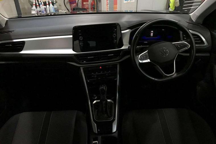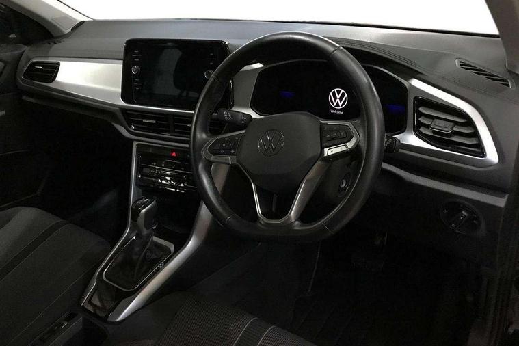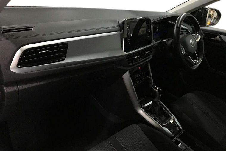 Bluetooth mobile phone interface, Driver alert system with fatigue detection, Driver tips and journey analysis, Emergency call service, Lane keeping system Lane Assist, Modified key software - reduce switch off time for key status change to Long no motion, Online services, Park assist including front and rear parking sensors, Power assisted speed sensitive steering, Service interval indicator, Tailgate/trunk lid release from outside, Think blue trainer driver tips and journey analysis, Warning sound and light for front seatbelts unfastened, Wireless app connect, Battery regeneration during braking, Front shock absorption, Rear shock absorption chassis with increased ride height, Start/stop function with battery regeneration, DAB Digital radio, Diversity antenna for FM reception, Front and rear 6 speakers, Music playback - MP3, WMA and AAC files, Premium USB cable in choice of either Apple or Android smartphone compatibility, SD card slot, Simultaneous pairing of 2 compatible mobile devices, Title and cover art display, We Connect and We Connect Plus functionality, 3rd brake light, Auto dimming interior rear view mirror, Automatic hazard lights activation under emergency braking, Automatic headlight control with LED separate daytime running lights with coming/leaving home function, Black roof rails, Body coloured bumpers and radiator grille with chrome trim and front fog lamps with chrome bezel, Body coloured exterior mirror housings and door handles, Extended roof spoiler, Exterior mirrors aspherical on driver side, convex on front passenger side, External USB type C socket and charging sockets, Front windscreen wiper with intermittent wipe and 4 position delay, Heated rear window, LED Headlights, LED rear combination lamps, LED rear number plate lights, LED tail lamp rear comination lamps, Power windows with comfort operation and circuit breaker, Rain sensor, Rear exhaust tailpipe, Rear fog light on one side and reversing lights on both sides, Rear side wing doors, Rear wash/wipe with intermittent wipe setting, Remote electrically foldable door mirrors, puddle lights and reverse activated passenger's door mirror, 12V power socket in centre console, 3 rear head restraints, 3 seat bench in 2nd row, 4 load lashing points in luggage compartment, Air care climatronic air conditoning system with active combination filter and 2-zone temperature control, Ambient lighting with mirror logo projection, Cloth upholstery, Door and side trim panel in cloth, Drawer under drivers seat, Driver/front passenger seat height adjustment, Front centre armrest, Front comfort sports seats, Front cupholders x 2, Front reading light, Instrument lighting, white adjustable panel illumination, Interior light delay, Isofix child seat preparation, Leather gearshift handle, Load-through provision with cup holder when folded down ('Unsplit rear seat bench, split folding backrest, with centre armrest), Luggage compartment lighting, Lumbar support for driver's and front passengers seat, Non-folding front passenger seat backrest, Single front passenger seat, Storage compartment in left and right luggage area, Storage compartment in rear doors, Storage compartments in driver and front passenger doors, Sunvisors with illuminated vanity mirrors, Variable boot floor, height adjustable and removable, Driver assistance pack without proactive passenger protection - T-Roc, 3 point height adj front seatbelts + pretensioners, 3 point seatbelts in outer rear with ECE label, ABS, Child locks on rear doors, Driver and front passenger airbag with front passenger airbag deactivation, Driver and front passenger safety-optimised head restraints, Drivers seatbelt reminder, Electronic parking brake, Electronic Stability Control (ESC) inc EDL (Electronic Differential Lock) and ASR (Traction Control), Front and rear passengers curtain airbag system including front side airbags, Front assist with city emergency braking and pedestrian monitoring, Front disc brakes, Front seat side impact airbags, Hill start assist, Predictive pedestrian protection, Rear disc brakes, Single tone horn, Tyre pressure loss indicator, Volkswagen roadside assistance, Alarm with interior protection, Anti-theft alarm system with interior monitoring, backup horn, and towing protection, Remote central locking with SAFELOCK, radio remote control with 2 remote control folding keys, Pewter matt decorative inserts for intrument panel, centre console and door panels at the front, Trims for alloy wheels,