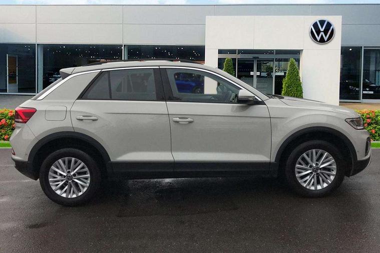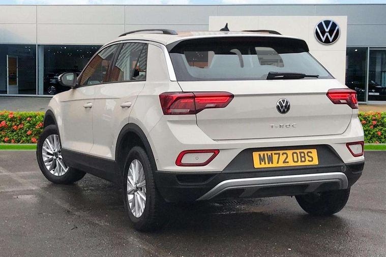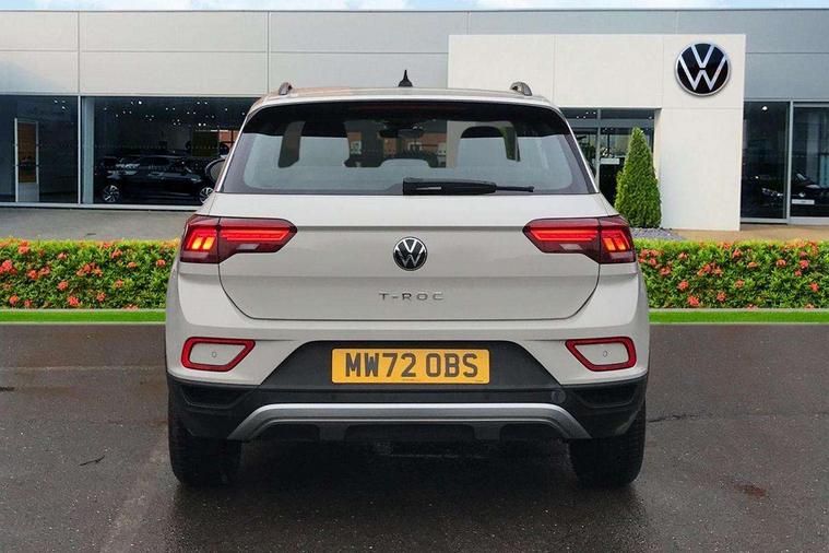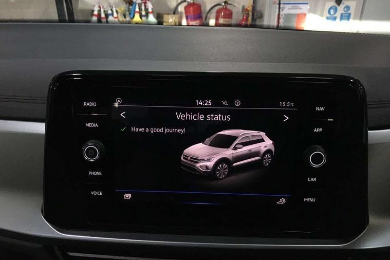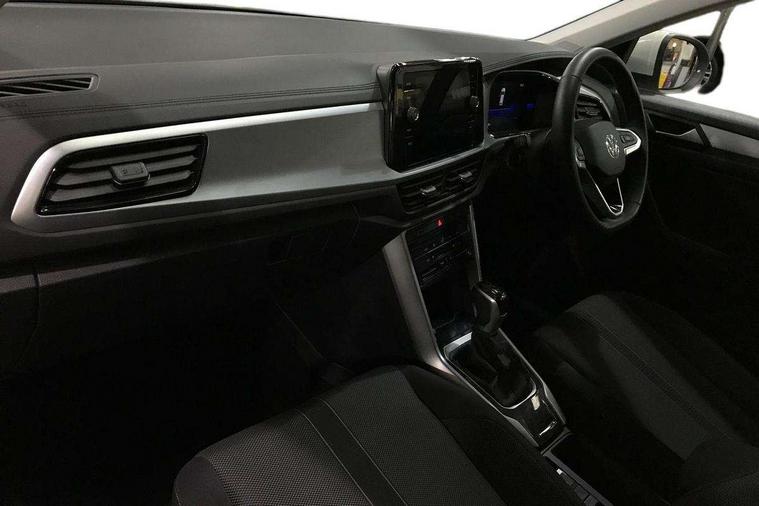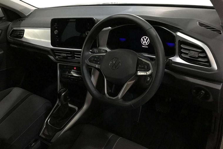 Bluetooth mobile phone interface, Driver alert system with fatigue detection, Driver tips and journey analysis, Emergency call service, Lane keeping system Lane Assist, Modified key software - reduce switch off time for key status change to Long no motion, Online services, Park assist including front and rear parking sensors, Power assisted speed sensitive steering, Service interval indicator, Tailgate/trunk lid release from outside, Think blue trainer driver tips and journey analysis, Warning sound and light for front seatbelts unfastened, Wireless app connect, Battery regeneration during braking, Front shock absorption, Rear shock absorption chassis with increased ride height, Start/stop function with battery regeneration, DAB Digital radio, Diversity antenna for FM reception, Front and rear 6 speakers, Music playback - MP3, WMA and AAC files, Premium USB cable in choice of either Apple or Android smartphone compatibility, SD card slot, Simultaneous pairing of 2 compatible mobile devices, Title and cover art display, We Connect and We Connect Plus functionality, 3rd brake light, Auto dimming interior rear view mirror, Automatic hazard lights activation under emergency braking, Automatic headlight control with LED separate daytime running lights with coming/leaving home function, Black roof rails, Body coloured bumpers and radiator grille with chrome trim and front fog lamps with chrome bezel, Body coloured exterior mirror housings and door handles, Extended roof spoiler, Exterior mirrors aspherical on driver side, convex on front passenger side, External USB type C socket and charging sockets, Front windscreen wiper with intermittent wipe and 4 position delay, Heated rear window, LED Headlights, LED rear combination lamps, LED rear number plate lights, LED tail lamp rear comination lamps, Power windows with comfort operation and circuit breaker, Rain sensor, Rear exhaust tailpipe, Rear fog light on one side and reversing lights on both sides, Rear side wing doors, Rear wash/wipe with intermittent wipe setting, Remote electrically foldable door mirrors, puddle lights and reverse activated passenger's door mirror, 12V power socket in centre console, 3 rear head restraints, 3 seat bench in 2nd row, 4 load lashing points in luggage compartment, Air care climatronic air conditoning system with active combination filter and 2-zone temperature control, Ambient lighting with mirror logo projection, Cloth upholstery, Door and side trim panel in cloth, Drawer under drivers seat, Driver/front passenger seat height adjustment, Front centre armrest, Front comfort sports seats, Front cupholders x 2, Front reading light, Instrument lighting, white adjustable panel illumination, Interior light delay, Isofix child seat preparation, Leather gearshift handle, Load-through provision with cup holder when folded down ('Unsplit rear seat bench, split folding backrest, with centre armrest), Luggage compartment lighting, Lumbar support for driver's and front passengers seat, Non-folding front passenger seat backrest, Single front passenger seat, Storage compartment in left and right luggage area, Storage compartment in rear doors, Storage compartments in driver and front passenger doors, Sunvisors with illuminated vanity mirrors, Variable boot floor, height adjustable and removable, Driver assistance pack without proactive passenger protection - T-Roc, 3 point height adj front seatbelts + pretensioners, 3 point seatbelts in outer rear with ECE label, ABS, Child locks on rear doors, Driver and front passenger airbag with front passenger airbag deactivation, Driver and front passenger safety-optimised head restraints, Drivers seatbelt reminder, Electronic parking brake, Electronic Stability Control (ESC) inc EDL (Electronic Differential Lock) and ASR (Traction Control), Front and rear passengers curtain airbag system including front side airbags, Front assist with city emergency braking and pedestrian monitoring, Front disc brakes, Front seat side impact airbags, Hill start assist, Predictive pedestrian protection, Rear disc brakes, Single tone horn, Tyre pressure loss indicator, Volkswagen roadside assistance, Alarm with interior protection, Anti-theft alarm system with interior monitoring, backup horn, and towing protection, Remote central locking with SAFELOCK, radio remote control with 2 remote control folding keys, Pewter matt decorative inserts for intrument panel, centre console and door panels at the front, Trims for alloy wheels,