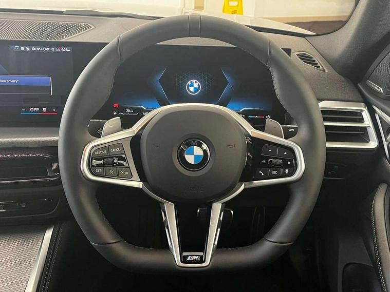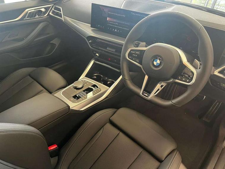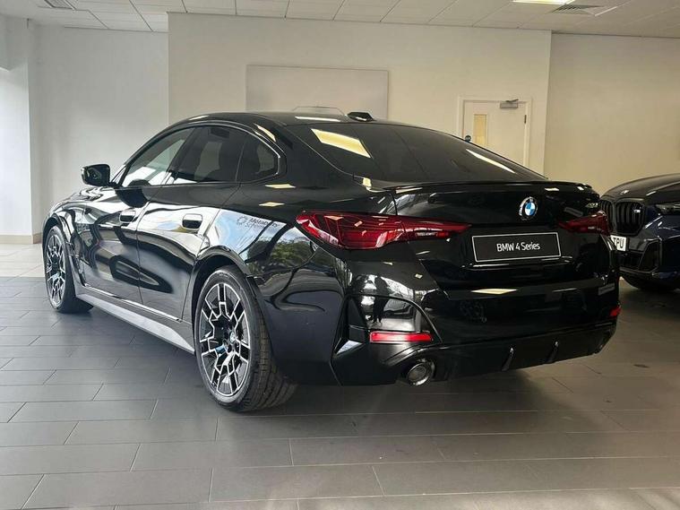 Active guard plus, Attentiveness assist, Automatic start/stop function, BMW ConnectedDrive online services, BMW iDrive controller on centre console, BMW service history, BMW Teleservices, Brake pad wear indicator in front and rear, Check Control warning system for monitoring of lights and door/luggage compartment open warning, Condition based service, Electric bootlid, Electric power steering with Servotronic steering optimised at all speed ranges, Instrument cluster with speedometer with mph readout, tachometer, fuel gauge and oil temperature gauge, Integrated owners handbook, Language version English, Oil sensor for level and grade, On board computer - average speed, fuel consumption, outside temp display with acoustic warning, clock/date, service interval, odometer/trip meter, Run flat indicator, Shifting point display, Start/stop button in black, Variable sport steering, 8 speed automatic steptronic transmission with gearshift paddles, Balanced 50/50 weight distribution, Double joint spring strut front axle, Drive experience mode switch - Comfort mode, ECO PRO mode and SPORT mode, Low centre of gravity, Petrol Particulate Filter, Stroke dependent dampers, DAB tuner, Personal eSim, Acoustic glazing, Automatic headlight beam throw control with load dependent regulating reaction, dynamic compensation of braking dive and acceleration squat, Automatic windscreen wipers and automatic headlight, BMW radiator grille with mesh grille, end face of the nuggets in aluminium matt and frame in chrome matt, Body colour fuel filler flap, Body colour roof fin, Bonnet and tailgate badge, Electric folding wing mirrors - Driver side electrochromic, auto anti dazzle function & front passenger side auto parking function without anti dazzle, Electric windows - front and rear, with open/close fingertip control, anti trap facility and comfort closing function all round, Follow me home headlights, Front and rear bumper system, Front apron plastic in body colour, Green tinted heat protection glazing, Illuminated bow type door handles in body colour drivers side with door lock, Interior rear view electrochromatic mirror with automatic anti dazzle function, LED 3rd brake light, LED daytime running lights, LED front fog lights, LED front indicators, Licence plate panel integrated into front bumper and tailgate, Low and high beam headlights in Bi-LED, M designation on front side panels, left and right, M Sport entry door sill strips, One piece front bumper cover including towing eye cover in body colour, Preparation for high beam assistant, Rear side wing doors, Rear wiper, Reversing light, Side frame trim strip black matt, Two part LED tailights in L-shape with components in smoked glass, brake light, LED turn indicator and rear fog light, Visible exhaust tailpipe finisher, Visible VIN plate, Welcome lights in interior and door handle area, Widened track and increased camber values for max transverse dynamics, agility and steering precision, Windscreen washer jets concealed underneath bonnet, 12V power socket in front centre console, 2 front cupholder in centre console with clamping elements and matt black inlay, 3 rear headrests, 3 seat bench in 2nd row, 3 spoke flat bottom M sport leather multifunction steering wheel, 3 zone automatic air conditioning, 4 pieces lashing eyelets in luggage compartment, 40:20:40 split folding rear seat, folding head restraint of centre seat and rear centre armrest with two cupholders, Anthracite headlining, Armrest integrated in front and rear door trim + front centre console armrest, Battery in luggage compartment, BMW ID, Extended storage - 2x Dual USB Type C 3A charging function in the rear centre console for the rear, Extended storage - Luggage compartment partition net on left side trim panel, Bag hook on both sides of the luggage compartment, Extended storage - Multifunction hook, Extended storage - Trailer tow hitch button in black (extendable trailer tow hitch) on the right hand side, Four grab handles integrated in roof lining, Front and rear door pockets, Front footwell lights, Heated driver and front passenger seats, Height adjustable front headrests, Illuminated armrest storage compartment, Illuminated glove compartment with separate small compartment, Interior light and front reading light, Luggage compartment light, Single front passenger seat, Steering column adjustment - Infinitely variable in height and length, Sunvisors with illuminated vanity mirrors and ticket pocket, Through load system, Toolkit located in luggage compartment, Velour front floor mats, Ambient lighting pack - 4 Series, BMW Live Cockpit Plus pack - 4 Series, Connected professional package - 4 Series, M High gloss shadowline exterior trim pack - 4 Series, M sport exterior styling pack - 4 Series, Park assist pack - 4 Series, 3 point seatbelts on all seats, BMW emergency call, Brake energy regeneration, Braking pre-tensioning, Child locks, Child seat ISOFIX attachment for the two outer rear seats, Crash sensor activating of airbags, Unlocking doors, hazard warning lights, interior light, safety battery terminal, Driver and front passenger side airbags, integrated in the door side seat backrest bolsters for all seat variants, Driver/Front Passenger airbags, Dry braking, Dynamic brake control, Dynamic stability control + (DSC+) - Anti-lock Braking System (ABS) with brake assist and cornering brake control + Automatic Stability Control (ASC), Dynamic Traction Control - DTC, Electric parking brake including automatic hold function and automatic release of the parking brake when driving off, Electronic differential lock control (EDLC), Front and rear ventilated brake disc, Front passenger manual airbag deactivation, Head airbags for all 4 outer seats, Hill start assistant, Seat belt security check for driver and front passenger, Seat belt with belt stopper, pyrotechnic belt tensioners and belt force limiters, Seat occupancy detection for driver and passenger side, Side impact protection, Tyre pressure 