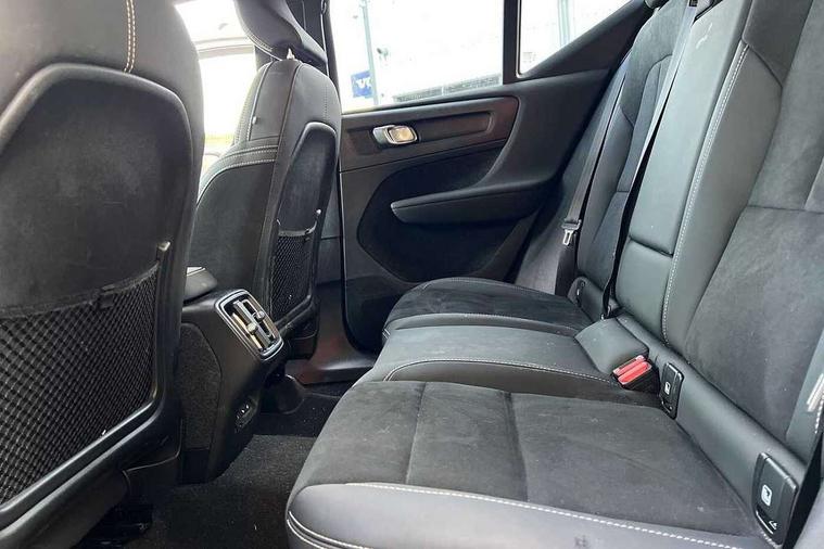 12.3" Progressive Driver Display, 360 degree surround view parking camera with side proximity sensors, 9" centre console portrait touch screen, Adjustable steering wheel force, Bluetooth hands free telephone kit, E-call, Front park assist, Google automatic services - Nav with google maps, apple carplay/android auto, voice recognition with google assistant, Hands free power tailgate, Lane keep assist with driver alert control, Oncoming Lane Mitigation, Rear park assist, Speed limiter, Speed sensitive steering, Wireless/Inductive Mobile Phone Charging, Dynamic chassis, DAB Digital radio, Premium Sound by Harman Kardon, Dolby Pro Logic II Surround Sound, Dirac Unison, 12 speakers/600W and subwoofer, Steering wheel mounted remote controls, Active bending pixel LED headlights with adaptive shadow technology, Active high beam incorporating daytime running lights, Adaptive brake lights with high level LED brake lights, Auto dimming interior mirror, Automatic headlamp levelling, Dark tinted windows for rear door side windows and cargo compartment, Front aluminium tread plates, Front and rear electric windows, Headlight cleaning system, High gloss black front and rear skid plate, High gloss black mesh front grille with high gloss black surround, High gloss black window trim, Home safe and approach lighting, Integrated roof rails in high gloss black, LED front fog lights, Power glass tilt and slide panoramic sunroof with sun curtain, Puddle lights, Rain sensor with automatic windscreen wiper activation, Rear side wing doors, Rear wiper, Roof antenna, Roof spoiler, Visible VIN plate, 12V socket in front tunnel console and luggage compartment, 2-Zone electronic climate control with CleanZone air quality system and pollen filter, 3 seat bench in 2nd row, 3 Spoke tailored steering wheel with chrome trim, 60/40 versatile split folding rear seat, A-pillar parking ticket holder, Ambient front door and instrumental panel lighting, Centre console cupholders and storage, Flexible load floor and grocery bag holder, Floor mats, Front door pocket and front cupholder illumination, Front footwell illumination, Front headrests, Front reading light and theatre lighting, Front seat cushion extensions, Front tunnel pocket, Glovebox bag hook, Heated front seats, Height adjustable passenger seat, Height/reach adjustable steering column, High gloss centre tunnel deco, Illuminated glovebox, Illuminated luggage compartment, Illuminated tailgate, Illuminated vanity mirrors, Integrated waste bin, Isofix attachments on outer rear seats, Load protection net, Multi directional lumbar support, Power driver seat with memory + exterior mirrors memory, Power folding rear headrests, Power passenger seat, Rear armrest / integral cup holders / storage tray, Rear reading and courtesy lights, Single front passenger seat, Underfloor cargo storage, Climate pack without heated front seats - XC40, Driver assist pack - XC40, 3x3 point rear seatbelts, City safety with steering support with Pedestrian + cyclist + front collision warning with full auto brake and rear auto brake, Drivers knee airbag, Dual stage driver/passenger airbags, Electronic parking brake with auto hold, First aid kit, Front and outer rear seatbelt reminder and pretensioners, Front seats SIPS airbags, Hill descent control, Hill start assist, Inflatable curtain, Passenger airbag cut-off device, Power child locks on rear doors, Road sign information display, Run off Road Mitigation, Run off Road Protection, SIPS (Side Impact Protection System), Slippery road and hazard light alert, Stability and Traction Control with Spin control, Engine Drag Control and Corner Traction Control, Tyre pressure monitoring system, Vehicle deceleration control with Anti-lock Brake System, Electronic Brake Distribution and Emergency Brake Assist, Warning triangle, WHIPS whiplash protection system - front, Anti-theft alarm including immobiliser/volume sensor + level sensor, Key integrated remote control central locking + fuel flap with deadlocking system and auto open/close power windows, Keyless drive includes keyless entry and keyless start, Locking wheel nuts,