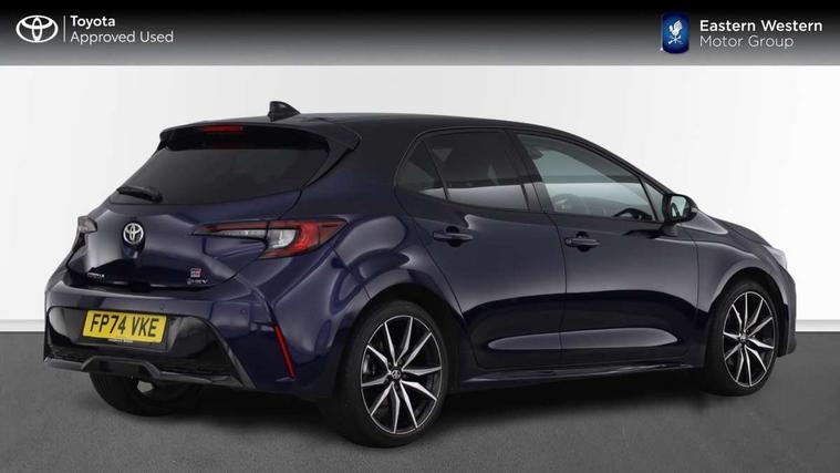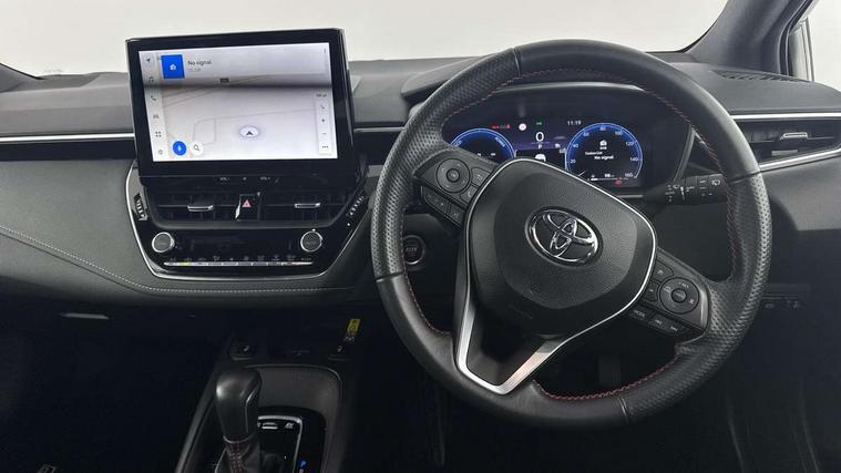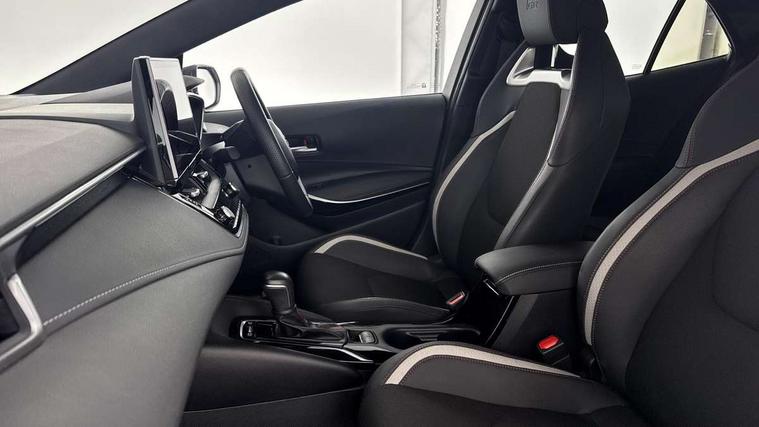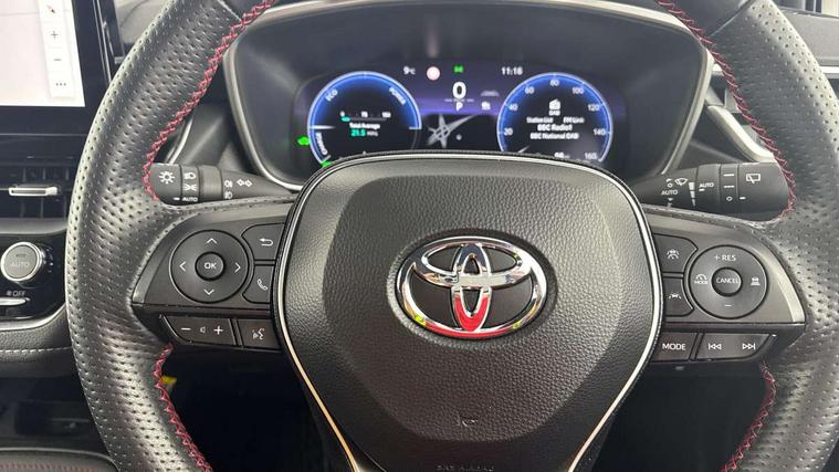 10.5" Multimedia display screen, Bluetooth telephone connectivity, Connected car functionality upgrade, tracker, remote status and e-care, Drive mode select (Eco, Normal), E-call, Electrically assisted power steering, EV drive indicator, Front and rear parking sensors with auto brake, Full Digital 12.3" TFT Digital Combimeter, Key reminder warning, Lane Departure Alert (LDA) switch on steering wheel, Memory on adjustable speed limiter, MyT connected services, Proactive driving assist (PDA), Reversing camera, Smart entry and push button start with GR Logo, Smartphone integration with Apple CarPlay and wired android auto, Tailgate, Toyota remote services, Toyota smart connect navigation, Wireless charger, Gasoline particulate filter, Vehicle Stability Control (VSC), 6 speakers, AM/FM radio, DAB Digital radio, Front USB-C in centre console, Front USB-C in dashboard, Smart voice assist/ Voice recognition, USB and Aux in connectors + 12V front outlet, Anti-jam protection on power windows, Auto up and down function on all power windows, Automatic folding mirrors, Automatic headlights with high beam assist, Black centre and side air vents, Black toyota logo in front, Body coloured bumpers, Body coloured door mirrors, Body coloured outside door handles, Dark chrome lower grille, Electrochromatic mirror, Follow me home headlights, GR Sport dark chrome front mesh grille and black rear grille, GR Sport exclusive under guard, GR sport scuff plates, LED daytime running lights, LED dual beam projector headlights, LED front fog lights, LED High mounted stop light, LED rear combi lights with LED lightguide, Manual headlight levelling system, New grille pattern, Noise reduction layer on windscreen, Piano black diffuser, Power adjustable heated door mirrors, Power front windows, Power rear windows, Privacy glass with UV filter, Rain sensing wipers, Rear side wing doors, Rear window defogger, Rear window wiper, Reverse tilting door mirrors, Rocker and door lower moulding, Roof spoiler, Satin chrome insert on front air vents, Satin chrome insert on front door assist grips, Satin silver front spoiler, Shark fin antenna, Tailgate release with push button, Time adjustment on intermittent wiper, Turning signal integrated indicators in door mirrors, Unique lower skirt, Unique side rocker with black insert, UV-filter on driver and passenger windows, 2 Shopping bag hooks in luggage compartment, 3 rear headrests, 3 seat bench in 2nd row, 3 spoke leather steering wheel with satin insert/red stitching + gear knob, 4 tie down hooks in luggage compartment, 60/40 split folding rear seat, Adaptive cruise control (ACC) switch on steering wheel, Adjustable speed limiter switch on steering wheel, Audio, multimedia and telephone switches on steering wheel, Black armrest on centre console box, Black gear shift console, Boot light, Centre room light, Driver and front passenger personal light, Driver and passenger assist grip, Driver and passenger seatback pockets, Driver and passenger sun visor with mirror and light, Dual zone automatic air conditioning with ECO mode switch, Fabric/synthetic leather upholstery, Front and rear cup and bottle holders, Front door pockets, Front head restraints, Front passenger seat, Front sliding synthetic leather armrest, GR Sports seats with partial leather bolsters, Heated seats, Illuminated entry system in room lamp, ISOFIX seat fixing (2 fixings on rear outer seats), Manual height adjustable for driver and front passenger seat, Manually tilt with sliding driver and front passenger seat, Nanoe-X air purifier, Parcel shelf, Pollen filter, Power window switches with satin chrome inserts, Rear armrest with 2 cupholders, Rear passenger coat hooks (2), Red stitching on gear shift, Remote air conditioning, Satin chrome inside door handles, Satin chrome surround on speedometer, Sliding armrest on centre console box, Slow opening glovebox with lights, Textile floor mats, Tilt/telescopic steering column, Voice recognition switch on steering wheel, Whiplash Injury Lessening (WIL) feature (active headrest) for seats, White ambient lighting on open tray and front cup holder, Toyota safety sense 3 pack - Corolla, 3x3 point rear seatbelts, Adjustable driver and front passenger seat belt extender to top anchor point, Anti lock braking system + Electronic brake force distribution, Brake assist function, Child locks on rear doors, Downhill Assist Control (DAC), Electronic parking brake, Emergency brake light signal (EBS), Front passenger airbag on/off switch, Front seatbelt reminder, HAC - Hill start assist control, Rear seat belt reminder, Seatbelt pretensioners and force limiters, Supplemental restraint system (SRS) 7 airbags - dual driver, dual side curtain, side impact and driver knee airbags, Traction control, Tyre pressure warning system, Acoustic vehicle alert system (AVAS), Alarm with motion sensor and immobilizer, Power passenger window lock, Remote central locking + deadlocks, GR Sport interior styling with accents and exterior styling, Satin chrome dash trim, Soft touch texture on upper dashboard, Stitching on lower dashboard, 18" Black machined face 10 spoke alloy wheels, Tyre repair kit, Unique wheel finish with red wheel cap,