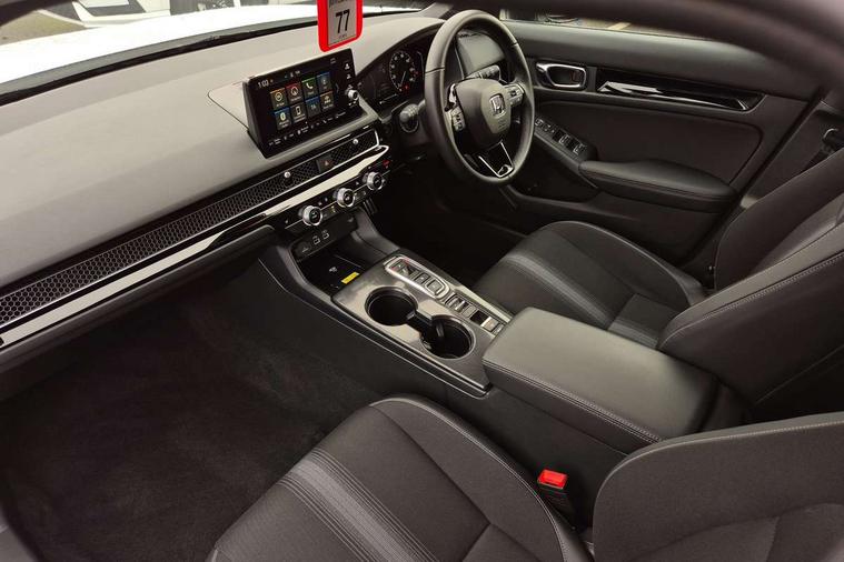 7" Multi information display screen, Adaptive cruise control, Adaptive motion for electric power steering, Adjustable speed limiter, Agile handling assist, BLIS (Blind Spot Information System) with Cross Traffic Monitor, Bluetooth hands free telephone connection, Driving modes, Economy mode, Electric power steering wheel with variable gear ratio steering, Emergency call service, Emergency stop signalling system, Forward collision warning, Front and rear parking sensors, Honda CONNECT with Navigation 9" touchscreen, AM/FM/DAB, Apple Carplay and Android Auto, live traffic info, Honda sensing, Idle stop, Intelligent speed limiter, Lane departure warning system, Lane keep assist, Low speed following, Power meter, Rear parking camera, Road departure mitigation, Smartphone wireless charging plate, Tailgate, Traffic jam assist, Traffic sign recognition, Wireless apple carplay, Vehicle stability assist, 'Shark fin' mobile antenna, 2x USB Front socket (1 data & 1 charge), 8 Speakers, Digital Audio Broadcast (DAB) Tuner, Front tweeters, Steering wheel mounted audio controls, Aspherical driver door mirrors, Auto dimming rear view mirror, Auto headlight adjuster, Auto headlights, Automatic coming/leaving home lighting function, Automatic rain sensing wipers, Black window frames, Body colour door handles, Electric adjustable heated door mirrors, Electric front and rear windows, Electrically folding door mirrors, Headlight extension black, High beam assist, High level LED brake light, LED daytime running lights, LED front fog lights, LED front turn type, LED Headlights, LED rear lights, Low gloss black window garnish, Material finish grille, Pop up hood, Privacy glass, Rear side wing doors, Rear wiper, Single hidden exhaust pipe, Variable front intermittent wipers, 3 seat bench in 2nd row, 60/40 split folding rear seat, Cargo accessory power socket, Cargo net hooks, Driver and front passenger seat armrests, Driver's electric lumbar adjustment, Driver's seat height adjustment, Dual climate control air conditioning system, Fabric/synthetic leather upholstery, Front accessory power socket, Front map lights, Front/rear courtesy lights, Glovebox light, Heated front seats, Hybrid emblem, Isofix points/i size, Leather steering wheel, Meter Illumination white, Passenger seat back pocket, Platinum chrome interior door handles, Rear air vents, Rear head restraints, Rear reading lights, Rear seat centre armrest, Single front passenger seat, Stainless steel sports pedals, Sunvisors with illuminated vanity mirrors, Tilt/telescopic adjustable steering wheel, Tonneau cover, Trunk light, USB Rear number 2 x charge, White ambient roof light, 3x3 point rear seatbelts, ABS+EBD+Brake assist, Airbags - driver and front passenger, Airbags - Knee (AS), Airbags - Knee (DR), Anti-whiplash front headrests, Brake hold function, Collision mitigation braking system, Collision mitigation throttle control, Deflation detection system, Driver SRS airbag (single stage inflation), Electronic parking brake with auto hold, Front and rear curtain airbags, Front and rear seat belts with emergency locking retractor (ELR), Front centre airbag, Front side airbags, Hill start assist, Low speed brake system, Manual child lock in rear doors, Passenger airbag deactivate switch, Rear airbags, Regenerative braking/deceleration paddle control, Immobiliser, Mirrors and windows key fob, Remote central locking with 2 jack knife keys, Security alarm, Selectable door unlock, Smart entry + Smart start, Superlocking, Tilt sensors, Ultrasonic security sensor, Tyre repair kit,