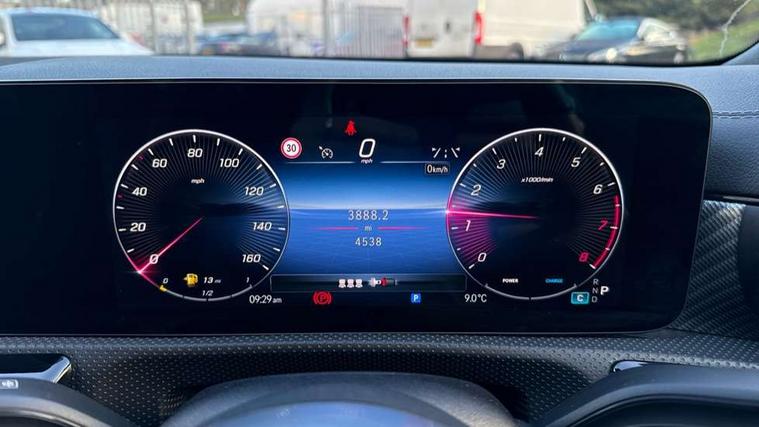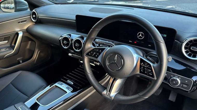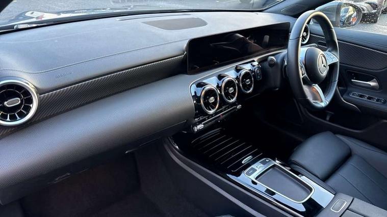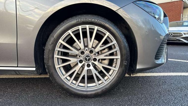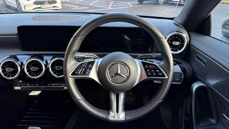 10.25 inch Instrument display with digital cockpit, 10.25 inch touchscreen central media display, Active lane keeping assist, Attention assist - Monitors steering behaviour and long journey fatigue, Blind spot assist, Bluetooth connection, Car wash mode, Cruise control with limiter, Direct steer system, DYNAMIC SELECT with a choice of driving modes (ECO, Comfort, Sport and Individual), ECO start/stop function, Fluid level warning indicator for fuel, oil, coolant and washer fluid, Hard-disk navigation, Hey Mercedes Voice activation, Lamp failure indicator, Mercedes me connect including emergency call system, accident recovery, breakdown and maintenance management, Mercedes me remote services, Outside temperature gauge, Owners manual in English, Pre-installation of private car share, Radio aerial integrated into front and rear windshields, Service indicator (ASSYST), Smartphone integration with Apple CarPlay and Android auto, Speed limit assist, Trip computer in multifunction display with current consumption indicator, Comfort suspension, Rear axle multi-link, DAB digital radio tuner, MBUX multimedia system, Mercedes Benz sound system (100 W) with 6 speakers, Pre installation for Mercedes Benz Link, Adaptive brake lights, Body colour door handles (Chrome insert with Keyless entry), Chrome beltline strips, Electric windows, Electrically adjustable and heated door mirrors with integrated LED indicators, Exhaust system with 2 Visible tailpipe trim elements and rear apron with trim in chrome, Headlamp assist automatic headlamp activation, Heated glass rear windscreen + timer control, High level LED third brake light, Interior mirror with black reading lamps and frameless, LED high performance headlamps with integrated LED daytime running lights and adaptive highbeam assist, LED tail lamp, Privacy glass with dark tinting on rear side windows and rear window, Progressive body-styling - Front apron with trim strip in chrome, visible tailpipe trim elements and rear apron with trim strip in chrome, Radiator grille with Mercedes-Benz pattern in high-gloss black and central Mercedes star, single louvre in matt grey with chrome inserts, Rain sensing windscreen wipers with two sensitivity settings, Rear boot, Rear fog lamp, Rear side wing doors, Variable front intermittent wipers, Window line trim strip in chrome, 3 seat bench in 2nd row, 3 spoke ARTICO man made leather multi function sports steering wheel with black grained gearshift paddles, oeration via touch control panels, 4 way lumbar support, 40:20:40 split folding rear seat backrests, Air conditioning - One zone THERMATIC automatic climate control with automatically controlled air distribution, Air vents with surround in silver chrome, Artico man-made leather upholstery, Automatic child seat recognition sensor, Black roof lining, Brushed stainless steel sports pedals with rubber studs, Comfort seats, Fluorescent jacket, Front centre armrest with stowage, Front head restraints, Heated front seats, Luggage net on driver/front passenger seat backrest, Manually height and reach adjustable steering column, Rear head restraints, Single front passenger seat, Stowage compartment in centre console with retractable cover, Sunvisors with illuminated vanity mirrors, Twin front cupholders, Two outer rear seat isofix and top tether child seat fixing points, Velour floor mats, Light and sight pack - CLA, Mirror pack - CLA, Parking pack with reversing camera - CLA, Seat comfort pack - CLA, USB package plus - CLA, Active bonnet pedestrain safety measure which detects an impact and raises bonnet by 65mm, Active brake assist includes forward collision warning system with autonomous braking, Adaptive brake assist with hold function and hill start assist, Anti lock braking system (ABS) with brake assist, Black seat belts, Bonnet with power domes, Brake pad wear warning indicator, Childproof locks manually operated for rear doors and electrically operated for rear power windows, Crash responsive emergency lighting, Driver and front passenger head and sidebags, Driver and front passenger windowbags, Drivers knee airbag, Dual stage driver and front passenger airbags, Electric parking brake, Electronic stability programme with acceleration skid control, ESP curve dynamic assist, Front and rear seatbelt reminder, Front passenger seat occupancy sensor, Three point rear seat belts, Tyre pressure monitoring system, Warning triangle and first aid kit, Alarm system with immobiliser and interior protection -Thatcham category 1, Guard 360 deg vehicle protection - tow away protection with visual, acoustic warning, interior monitoring, preinstallation for parking damage, Remote central locking and crash sensor with emergency opening function, Dark carbon fibre look trim, 18" multi-spoke himalayas grey painted light alloy wheels with high sheen rim finish, Summer tyres, Tirefit tyre sealant kit,