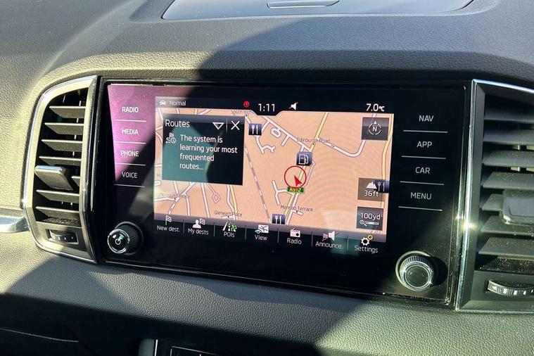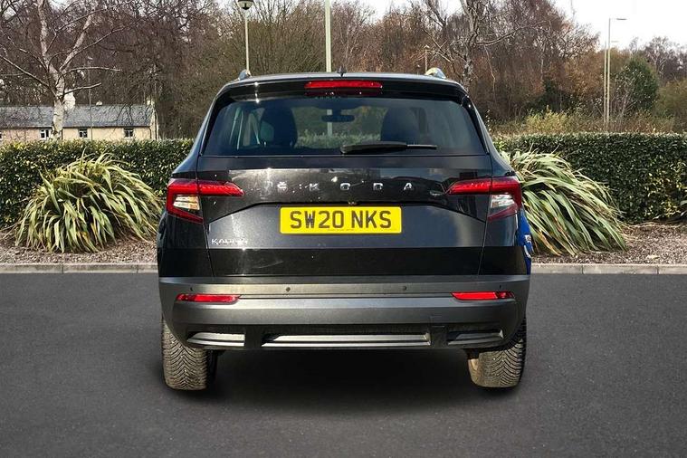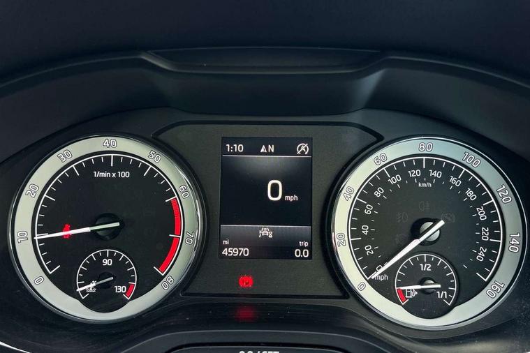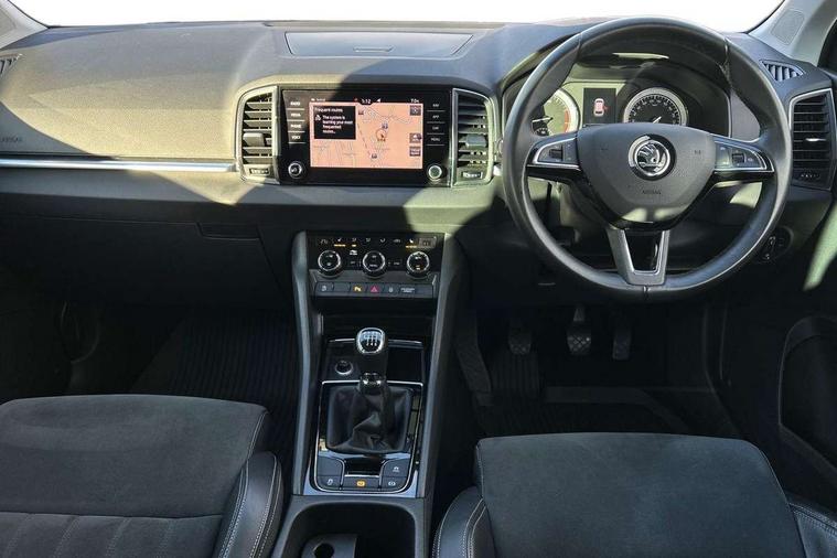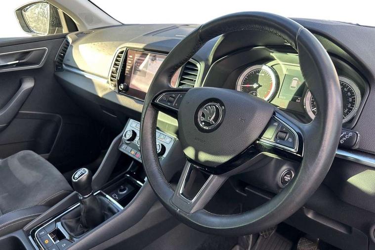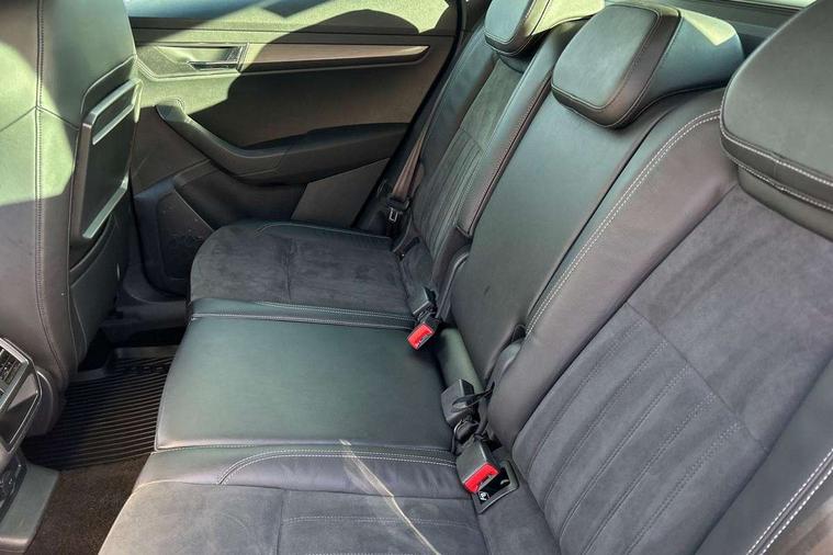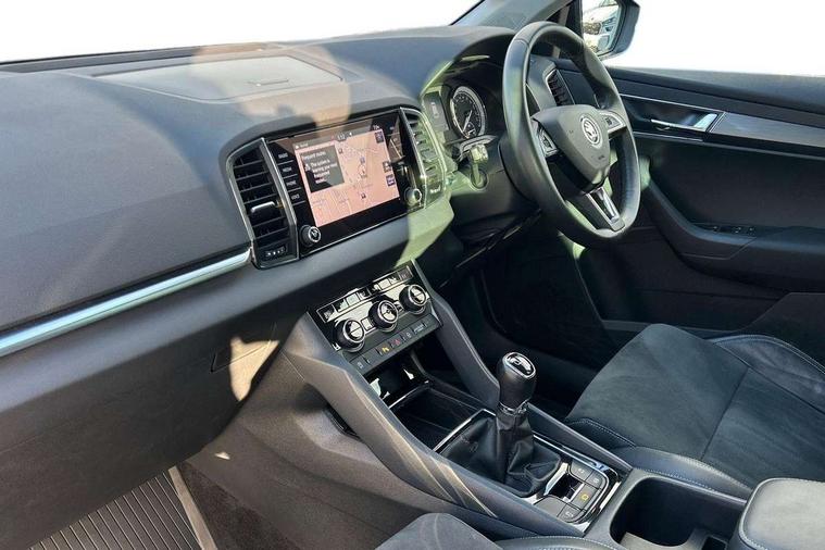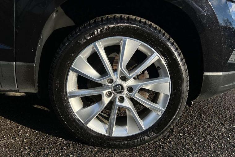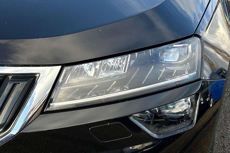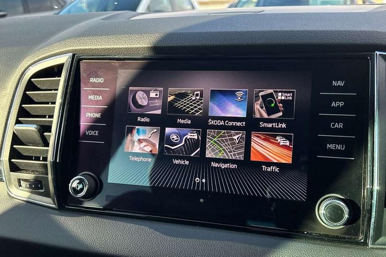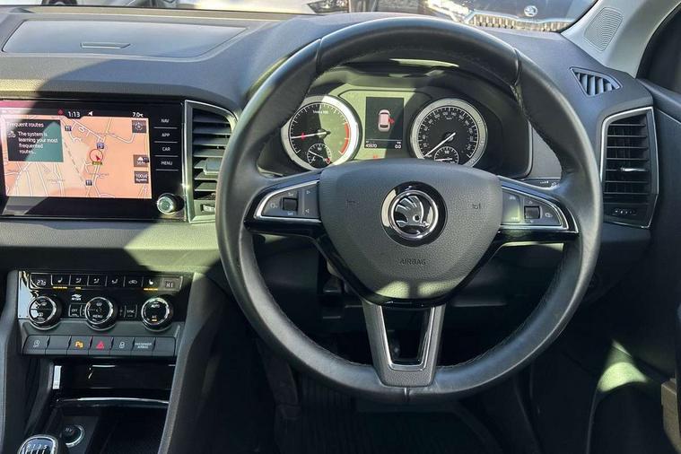 Drive mode selector, Driver alert system, Driver fatigue sensor, Driver profile selection, Multifunction colour trip computer, Outside temperature gauge, Rear view camera, Service interval indicator, Start/stop system with regenerative braking, DAB radio with Bluetooth, SD card slot, USB connection, Acoustic glass, Aero front windscreen wipers with intermittent function, Automatic headlight control system, Black electric window control buttons, Body colour door mirrors and handles, Body coloured bumpers, Electric front and rear windows with child proof lock, Full LED headlights + adaptive front light system + LED daytime running lights and front cornering fog lights, Headlight washers, Heated rear windscreen, LED rear lights with high functionality, Light assistant (coming/leaving home/tunnel light), Privacy glass, Safety reflectors on front doors, Third brake light, 1.5 litre bottle holders in driver and front passenger door panels, 12V socket in boot, 12v socket in front centre armrest with storage compartment and rear air vents, 2 Folding hooks and nets in boot, 2 Front readings lights for driver and passenger, 3 rear height adjustable headrests, 4 foldable roof handles with rear coat hooks, 4 lashing points on luggage floor, Backrest release, Cargo elements in boot, Chrome inner door handles, Dual zone climate control, Folding tables on the front seat backrests, Front head restraints, Front seat and rear pockets, Height adjustable front three point seats belts with tensioners, Height adjustable passenger seat, Height/reach adjust steering wheel, Ice scraper, Illuminated and cooled glovebox, Illuminated luggage compartment, Isofix child seat preparation outer rear, Net programme in boot, Pen holder, Pollen filter, Rear boot cover, Rear reading lights, Rear seats fixed folding and divided 60:40, Removable LED torch in the boot, Retractable parcel shelf attachable to tailgate, Safety vest holder, Storage box in upper central dashboard closed, Storage compartment below the passenger seat, Sunvisors with illuminated vanity mirrors, Textile floor mats, Umbrella under passenger seat, VarioFlex seats with retractable parcel shelf, Chrome roof rails + chrome pack - Kodiaq, Airbags - Front side, head, knee and curtain, Automatic door unlocking in case of crash, Automatic fuel cut off in case of crash, Driver airbag, Electronic parking brake with auto hold function, Emergency rear braking signal, ESC including ABS, MSR, ASR, EDS, HBA, DSR, RBS, MKB and traction control, Front assist radar scanning of the space in front of the car with automatic braking, Hill hold control, Passenger airbag with switch-off function, Pedestrian monitor, Seatbelt reminder signalisation and pretensioner for all seats, Three point seatbelts rear, Two tone horn, Tyre pressure display, Tyre pressure monitor, Alarm with interior monitoring, back up horn and tilt sensor with safe function, Electronic engine immobiliser, Keyless entry and keyless start with safe system, Remote central locking with 2 remote folding keys, Chrome framed air vents, Storage on wheel cover,