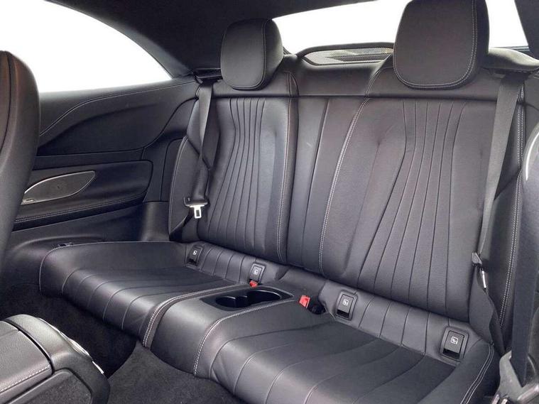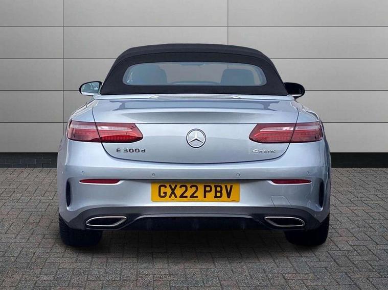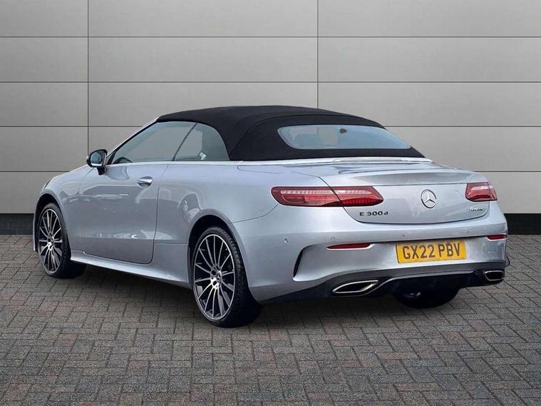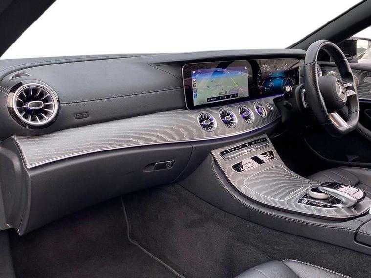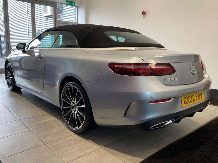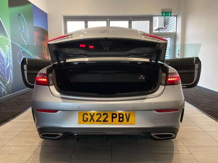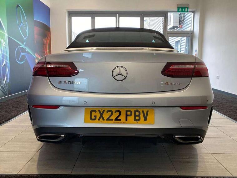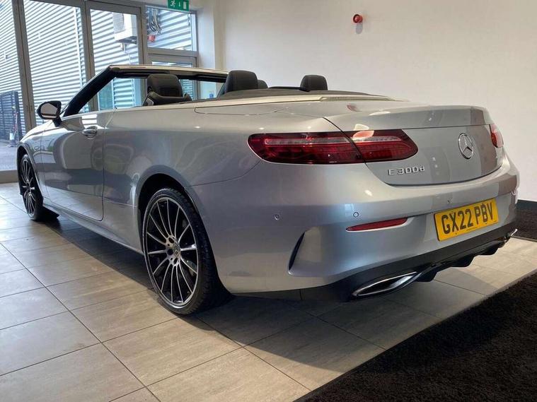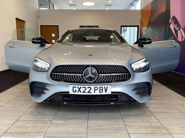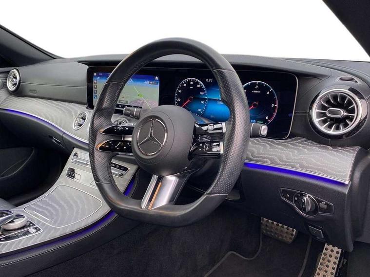 360 degree parking camera, Active parking assist including front and rear parking sensors, Analogue clock, Attention assist, Automatic boot separator, Brake wear warning display, Cockpit display 12.3" widescreen digital instrument cluster, Collision prevention assist plus, Direct steer speed sensitive steering, DYNAMIC SELECT with a choice of driving modes (ECO, Comfort, Sport, Sport+ and Individual), E-call, ECO start/stop function, Hey Mercedes Voice activation, High resolution 12.3" multimedia colour display, Mercedes connect me, Outside temperature display, Pre-installation for Vehicle Monitoring, Pre-installation for Vehicle Setup, Remote boot release, Service indicator (ASSYST), Status display for rear seat belts in instrument cluster, Touchpad with controller, Traffic sign assist, Trip computer in multifunction display showing current fuel consumption, 14 litre AdBlue tank, 66 litre fuel tank, 9G TRONIC 9 speed automatic transmission, Agility control sports suspension with selective damping system, Diesel particulate filter, Incorrect fuelling protection, 2 USB ports in centre console, 2 USB ports in the rear, Burmester surround sound system with 13 speakers and a 9 channel amplifier with total output of 590 watts, MBUX multimedia system with DAB digital radio and touchpad including satellite navigation, Smartphone integration via Android Auto/Apple CarPlay, Media Interface, USB and Bluetooth interface and touchpad with control wheel, Acoustic soft-top with enhanced climate and noise comfort, Adaptive brake lights, AIRCAP wind deflector and draught stop, AMG bodystyling front and rear aprons in polished aluminium, AMG boot lid spoiler in body colour, Body colour door handles, Body coloured bumpers, Daytime running lights, Diamond radiator grille with integral star and single louvre in high gloss black, Electric windows with one touch opening/closing and obstruction sensors, Exterior mirrors heated and electronically adjustable, High gloss black exterior mirror housing, High gloss black front apron, High gloss black rear bumper with chrome trim, Illuminated front door sill panels with Mercedes-Benz lettering, LED high performance headlamps, Magic Vision Control heated windscreen wiper system, Radio aerial integrated into rear window, Rain sensing windscreen wipers, Rear boot, Rear LED lights, Third brake light, Top surround of side windows in polished aluminium, Visible twin pipe exhaust system integrated into bumper, Waistline in polished aluminium, 2 seat bench in 2nd row, 3-spoke flat bottom multifunction AMG steering wheel with Touch Control buttons, trimmed in black nappa leather, 50/50 split folding rear seat, Airscarf - neck level heating, Artico man-made leather upper dashboard and beltlines with contrast stitching, Automatic child seat recognition sensor, Belt feeder driver and front passenger seat belt automatically positioned within easier reach, Black door pins, Black roof lining, Central stowage compartment with 12 V socket in centre console, Central stowage compartment with USB socket for use with Android Auto and Apple CarPlay, Centre armrest and door handle illumination, Centre console in grey open-pore ash wood, Floor mats with AMG lettering, Front and rear door pockets, Front centre armrest with stowage compartment, Front footwell lights, Glasses compartment in overhead control panel, Glove compartment - lockable, air conditioned and illuminated, Head restraints for driver and front passenger (four-way adjustability) and in rear (two-way), Heated front seats, Interior lighting - 64 colour Ambient lighting, Interior rear light/integral reading lights, Isofix rear child seat fastenings, Leather upholstery, Multi contour front sports seats, Seat occupancy sensor for front passenger seat, Single front passenger seat, Sports pedals in brushed stainless steel with black rubber studs, Steering column manually adjustable for height and reach, Steering wheel gearshift paddles, Sunvisors with illuminated vanity mirrors, THERMOTRONIC automatic climate control system with 3 climate zones, Memory pack - E Class, Mirror pack - E Class, Night package - E Class, Seat comfort pack - E Class, Stowage pack - E Class, 2 x 3-point rear seatbelts, Active bonnet pedestrian safety measure which detects an impact and raises bonnet, Adaptive brake system with HOLD function and brake drying in the wet, Adaptive driver and front passenger airbags, Airbags - sidebag for driver and front passenger with combined thorax/pelvis bag, Anti-lock braking system (ABS), Drivers knee airbag, Electric parking brake, Electronic Stability Programme, Front and rear window airbags, Head airbags, Hill hold function, Perforated front brake discs with "Mercedes-Benz" lettering, Seatbelt warning, Tyre pressure monitoring system, Warning triangle and first aid kit, Alarm system/interior protection/immobiliser, Central locking with interior switch, automatic locking and crash sensor with emergency opening function, Chrome surround electric key, Keyless Go entry and starting function, Open-pore grey ash wood trim, 20" AMG multi spoke design alloy wheels painted in high gloss black with high sheen finish, Run flat tyres,