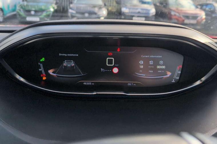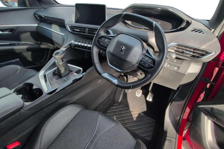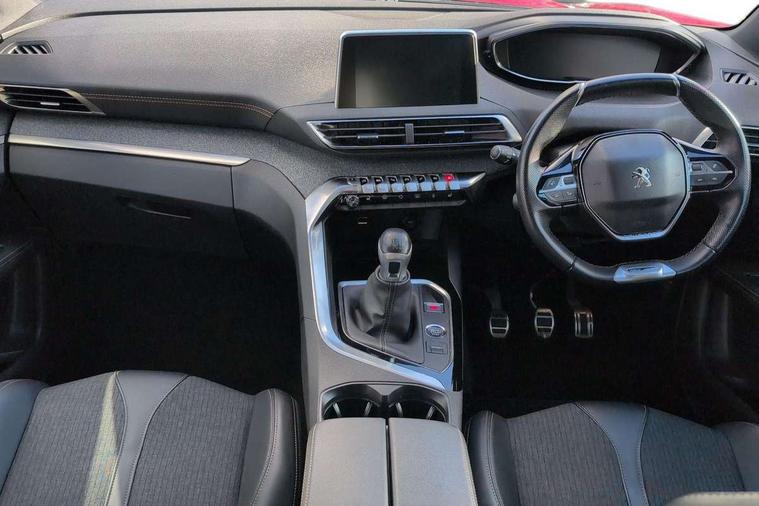 'Lights On' Reminder warning buzzer, 3D connected navigation + voice control + Peugeot connect SOS and assistance, Bluetooth telephone facility, Digital clock, Exterior temperature indicator with ice warning, Front and rear parking sensors, Lane departure warning system, Mirror screen with mirror link, apple carplay and android auto, Multi function trip computer, PEUGEOT i-Cockpit with 8.0" capacitive touchscreen in centre console, PEUGEOT i-Cockpit with amplify (choice of two configurable interior ambiences), PEUGEOT i-Cockpit with compact sports steering wheel, PEUGEOT i-Cockpit with configurable 12.3" Head-up digital instrument panel, Smartphone charging plate, Speed limit recognition and recommendation, Sports button, Dynamic stability control and electronic anti-skid system, DAB Digital radio, Steering column mounted multifunction controls, USB socket, 2 X Rear number plate lights, Aluminium longitudinal roof bars, Automatic triggered rear windscreen wiper in reverse gear, Black and chrome front wing trim, Black bumper protection plate, Body colour door handles, Body colour rear spoiler with stainless steel edging trim, Body coloured bumpers, Body protectors (bottom of front and rear bumpers + wheel arches + protection at bottom of doors) in black, Chrome bumper inserts, Chrome front fog light trim, Chrome radiator grille and surround, Chrome rear bumper facia, Chrome side window trim, Dark tinted rear side windows + tailgate window, Door mirror mounted LED Peugeot lion approach lights, Electric operated/heated door mirrors, Front windscreen wiper with magic wash cleaning system, Full LED headlights with LED fog lights with static cornering function, sports front bumper and grille, Gloss black finish B and C pillar, Gloss black rear cluster connecting strip, Gloss black windscreen surround, GT Line emblem in satin copper, Headlights left on audible warning, Heated rear windscreen with integrated antenna, LED daytime running lights, LED sequential scrolling front indicators, LED side indicator lights integrated into door mirrors, Lion grey front bumper scuff plate, Nera black door mirrors, One touch electric front/rear windows with pinch protection, Panoramic opening glass roof, Power folding door mirrors with blind spot detection indicator and auto dipping function in reverse gear, Radiator grille in chrome edge trim with chequered design and black 'PEUGEOT' lettering, Rear LED Peugeot signature 'Claw Effect' lights, Sports front bumper, Stainless steel roof arches, Twin exhaust tailpipe, 1/3 to 2/3 split folding rear seats, 12V Sockets in dashboard, rear cabin and load area, 2 cupholders in front centre console, 2 rear reading spotlights, 230V socket on rear centre console, 2x Rear coat hooks, 3x Isofix child seat fittings in the front passenger and outer rear seats, 4 Grab handles retractable and damped, 4 Lashing eyes in boot, Aikinite stitching in armrest, gear lever and dashboard facia, Blue ambient lighting for connecting zone, Blue ambient lighting to front door panels, central storage and cupholders, Blue ambient lighting to head up instrument panel, Centre front armrest with butterfly wing opening and illuminated storage compartment, Driver and front passenger seat height adjustment, Driver seat manual adjustment, Dual zone automatic climate control, Electric power steering with reach and rake adjustable steering column, Fixing rings 4 in load compartment, Flocked front door pocket interior with blue ambient lighting, Flocked glovebox interior, Fold flat front passenger seat with picnic table, Footwell illumination, Front headrests, Front interior light with 2 reading spotlights and rear interior light with timer, Front seat back map pockets, Gear shift indicator, Height adjustable headrests, Illuminated glovebox, Illuminated vanity mirrors, LED interior lighting in storage spaces and load area, Mistral floor mats with Aikinite contrast stitching, Mistral full grain perforated leather steering wheel with aikinite stitch detail and satin chrome 'GT Line' emblem, Rear armrest with ski flap and two cup holders, Rear centre console ventilation system, Rear headrests, Reclining front seats, Roof LED interior lighting, Roof lining - Mistral black, Satin chrome dashboard trim, Satin chrome digital instrument panel and touchscreen trim, Satin chrome front door panel recess trim, Satin chrome gear lever, Satin chrome interior door handles, Satin chrome scorpion's tail and toggle switch trim, Seatbelt not fastened audible and visual alert for front seats, Seatbelt unfastened on the move audible and visual alert for front and rear seats, Stainless Steel Scuff Plates, Two position boot floor, Safety pack - 3008, Safety Plus Pack - 3008, Visibility pack - 3008, 3x Rear three-point retractable seatbelts with force limiters in the outer rear seats, Adaptive driver and front passenger airbags with passenger airbag deactivation function, Anti-lock braking system with electronic braking distribution and emergency braking assistance, Auto city emergency braking, Driver and front passenger side airbags, Driver SMART airbag, Electric child locking functionality on rear windows and doors, Electric parking brake, ESP with ASR, Front and rear curtain airbags, Front optimised safety headrests and 3 x rear retractable headrests with height adjustable, Front passenger SMART airbag with deactivate switch, Front three point retractable seatbelts with pre tensioners and force limiters, Front ventilated disc brakes and rear disc brakes, Height adjustable front seatbelts, Hill start assist, Tyre pressure sensor, Anti theft alarm, Automatic door lock/re-lock after 30 seconds, Automatic hazard light activation upon heavy brake application, Central locking button on dash, Deadlocks, Electric tailgate with Peugeot open & go system, Electronic immobiliser, Locking wheel bolts, Remote control central locking with two plip keys, Brumeo fabric Dashboard, front and rear door panel finish, Satin chrome dash trim, S