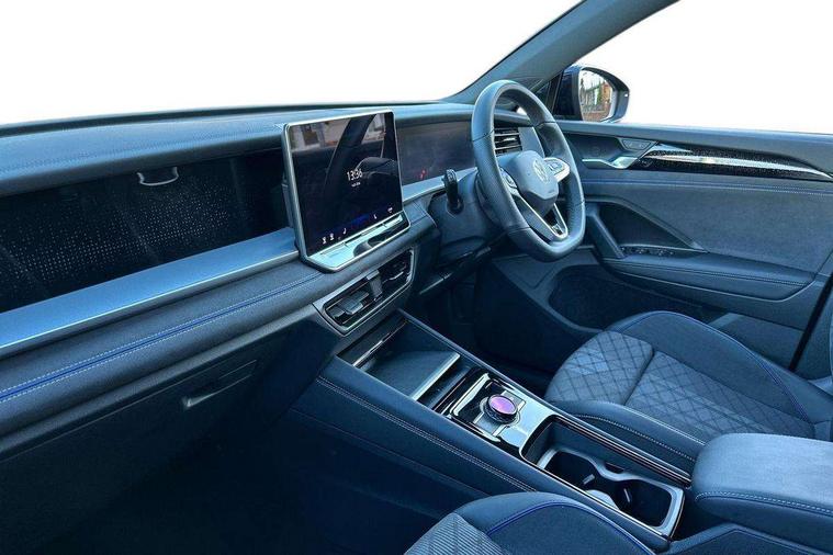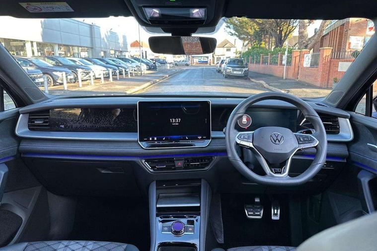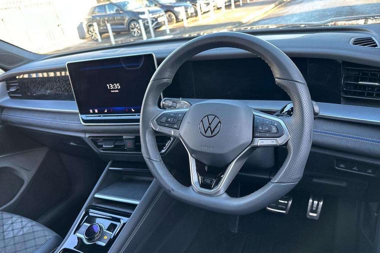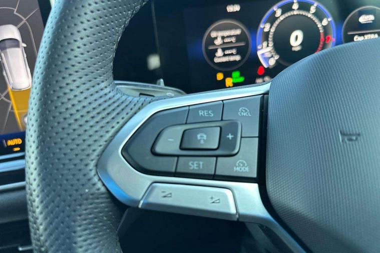 Adaptive cruise control (ACC), Digital Cockpit Pro - 10.25" high resolution dash display screen with customisable menus and information, Driver alert system, Driver attention monitoring system, Dynamic road sign display, E-Sim card for online connectivity, eCall emergency call system, Lane change system, Side assist, Rear traffic alert and Exit warning system, Multifunction front facing camera, Oncoming vehicle braking when turning including swerve support, Start/stop system with regenerative braking, Voice activation spoken voice commands for telephone and navigation system, Warning signal and warning light for front and rear seatbelts not fastened, Wireless App-Connect, Front wheel drive, Digital radio reception (DAB), Diversity antenna for FM reception, Air intake with Chrome trim, Auto dimming interior rear view mirror, Automatic headlight control system, Body colour door handles, Chrome moldings on the side windows, Coming/leaving home lighting function, Dynamic headlight range control with dynamic cornering light, Exterior mirrors convex on the left and aspherical on the right, Heat insulating glass in side and rear windows, Illuminated Volkswagen logo rear with animation, Laminated safety glass windshield, heat insulating, LED 3rd brake light, LED separate signature day time running light, Puddle lights, Rain sensor windscreen wipers, Rear fog light on one side, reversing light on both sides, Rear side wing doors, Rear wiper, Reverse activated passenger's door mirror, Surround lighting with welcome light, Volkswagen logo in front, illuminated lighting animation with wake up/goodbye scenario and illuminated door handles, 10 colour interior ambient lighting, 12V outlet in center console rear and in luggage compartment, 3 rear headrests, 3 rear seat bench in 2nd row, backrest split folding with centre armrest and 2 seats in 3rd row of seats, Black roof lining, Brushed stainless steel pedals, Carpet mats, front and rear, Centre console with illuminated storage compartment with sliding cover and two drinks holders, Chrome elements on the mirror switch and power window switches and door pulls, Door and side trim panel insert in Art velour, Flat luggage compartment floor, Front centre armrest, Front scuff plates in aluminium, ISOFIX anchors for child seats on outer rear seats and front passenger seat compatible with i-Size, Mechanical rear seat release, Power adjustable lumbar support in front, Single front passenger seat, Sports comfort seats in front, Sun visors with illuminated vanity mirrors, 3 Point seat belts in front with pretensioners, 3 point seatbelts in outer rear with ECE label, Autonomous emergency braking front assist with pedestrian and cyclist monitoring, Driver and front passenger airbag with front passenger airbag deactivation, Electronic parking brake with auto hold, First aid kit with warning triangle and safety vest, Front and rear curtain airbags, Front and rear side airbags, Front centre airbag, Front disc brakes, Hill start assist, Rear disc brakes, Two tone horn, Decorative material set R-Line, Interior door handle in matte chrome,