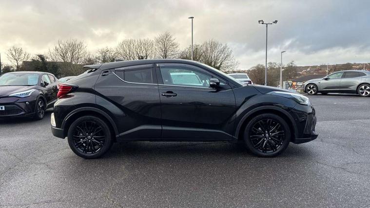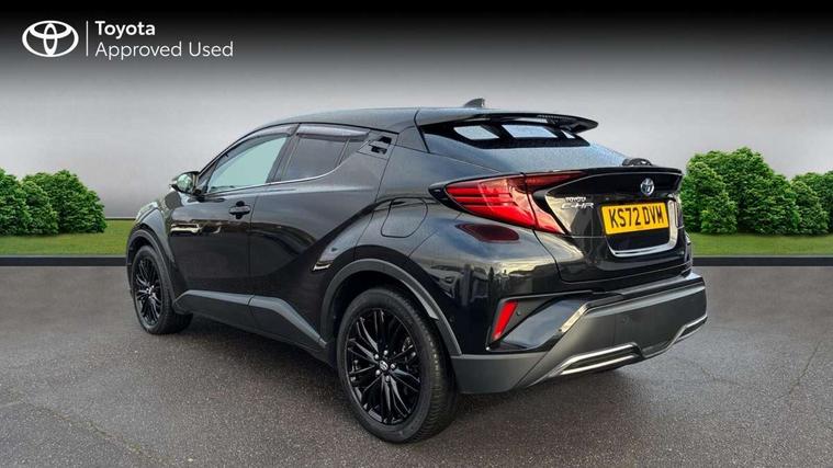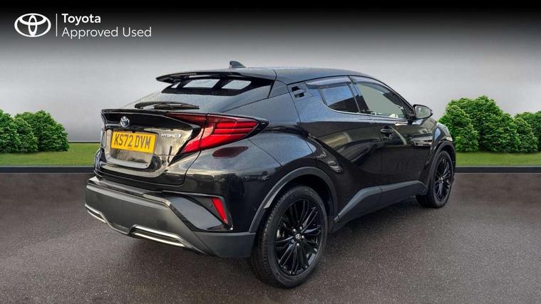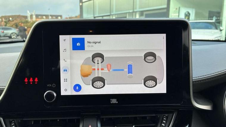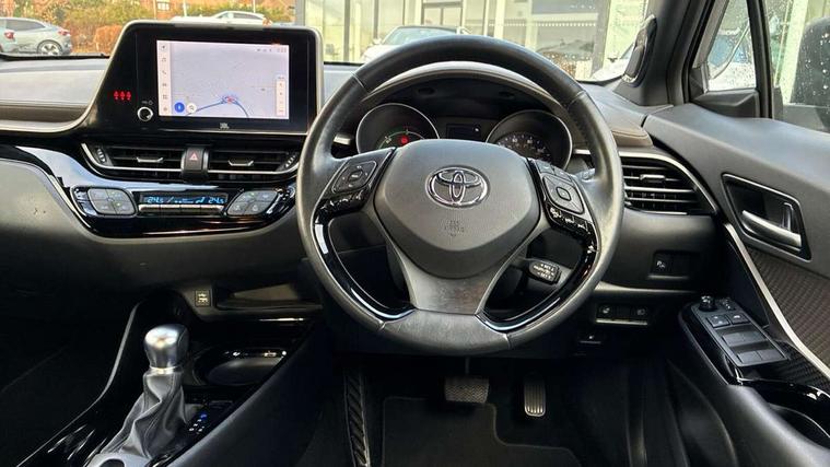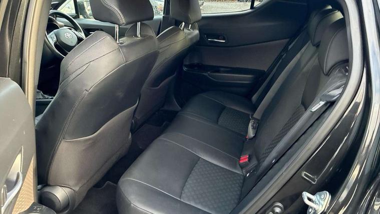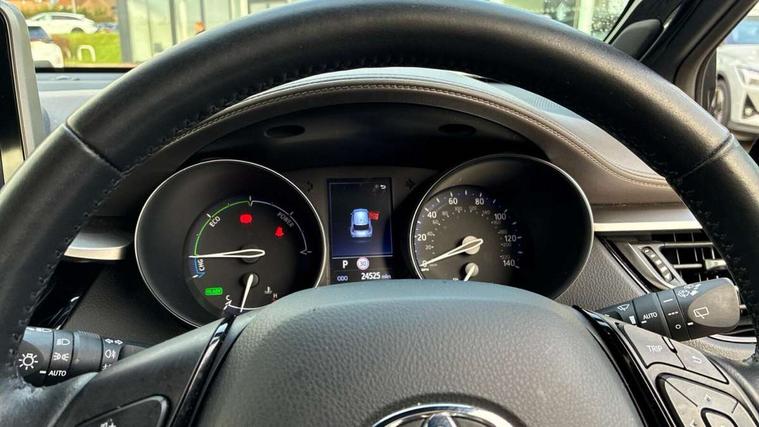 4.2" coloured TFT screen for multi-information display, Adaptive cruise control, Apple car play and Android auto, Bluetooth connectivity, E-call, Electric power steering, Hybrid system indicator, Lane departure alert with steering control, Lane trace assist, Push button tailgate release, Remote boot door release in cabin, Remote boot door release in key, Reversing camera, Road sign assist - RSA, Simple Intelligent parking assist, Smart voice assist, Touch 2 Go navigation system, Trip computer, Voice recognition, Wireless smartphone integration, Vehicle Stability Control (VSC), 6 speakers, AM/FM radio, DAB Radio (Digital Audio Broadcasting), Toyota touch 2 multimedia system with 8" display, USB connector, Wi-fi connectivity, Adaptive front light system, Adaptive LED Headlights, Anti-jam protection on power windows, Auto high beam, Auto up and down function on all power windows, Automatic headlight levelling, Automatic headlights, Automatic headlights cut-off, Black and body coloured rear bumper, Black lower front grille, Black upper front grille, Body colour door handles, Body colour door mirrors, Body colour front spoiler lip, Body coloured front bumper, Boot door release with push button, Electric heated door mirrors, Follow me home headlights, Front and rear power windows, Hard tonneau cover, Headlight cut off reminder, Honeycomb lower front grille, LED daytime running lights, LED fog lights, LED front light guide, LED High mounted stop light, LED rear brake lights, LED rear combination lights, Noise reduction layer on front windows and windscreen, Power adjustable door mirrors, Privacy glass, Rain sensor, Rear sequential indicators, Rear side wing doors, Rear spoiler, Rear tailgate, Rear window defogger, Rear window wiper, Shark fin antenna, UV-filter on driver and passenger windows, UV-filter on rear windows, Variable front intermittent wipers, 12v power outlet - front, 3 rear headrests, 3 seat bench in 2nd row, 3 spoke leather steering wheel, 60/40 split folding 2nd row rear seats, Adjustable rear headrests, Adjustable speed limiter switch on steering wheel, Assist grips front and centre pillar, Audio and telephone switches on steering wheel, Black front door assist grips, Blue ambient lighting on front cup holders, Blue ambient lighting on front doors, Boot light, Chrome interior door handles, Driver and front passenger personal light, Driver and front passenger Whiplash Injury Lessening seats, Driver and passenger seatback pockets, Dual zone automatic air conditioning, Floor mats, Front cupholders, Front head restraints, Front sports seats, Glovebox with internal light, Heated driver and front passenger seats, Heated steering wheel, Hooks for luggage holding net, Humidifying Nanoe air purifier, Illuminated entry system, Isofix attachments on rear seats, Leather gearshift, Leather wrapped steering wheel, Light on driver sun visor, Light on passenger sun visor, Manual telescopic steering wheel, Manual tilt steering wheel, Microphone on front personal light, Mirror on driver sun visor, Mirror on passenger sun visor, Multimedia switches on steering wheel, Pollen filter, Power adjustable lumbar support on driver seat, Power tilting cushion on driver seat, Shopping bag hooks, Single front passenger seat, Slow opening on lower glovebox, Voice recognition switch on steering wheel, Leather pack - C-HR, Tech with parking sensor pack - C-HR, 16 Disk front wheel brake, 3x3 point rear seatbelts, ABS+EBD+Brake assist, Electronic parking brake, Front and rear seatbelt reminder, Front passenger airbag on/off switch, Hill start assist control (HAC), Pre collision system with pedestrian detection, Pre-tensioners and force limiters, Rear door child safety locks, SRS Airbags - Driver + Front passenger, front side, front and rear curtain and driver's knee airbags, Toyota safety sense, Tyre pressure monitoring system, Tyre pressure warning system, Acoustic vehicle alert system (AVAS), Glass-breaking alarm sensors, Immobiliser, Intrusion alarm, Intrusion sensor, Motion sensor alarm, Power door locks, Power passenger window lock, Remote central locking, Black lower dashboard, Dark brown upper dashboard, Piano black console, Silver deco line on upper dashboard, Tyre repair kit,