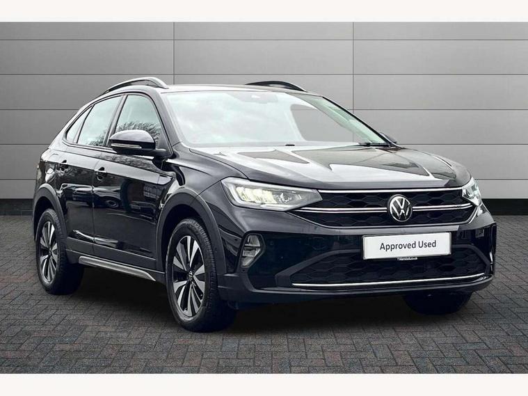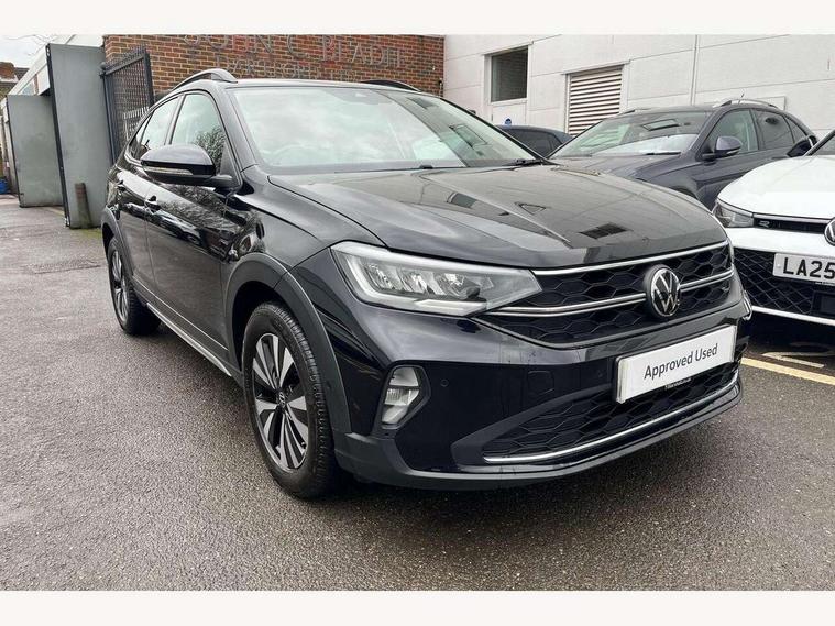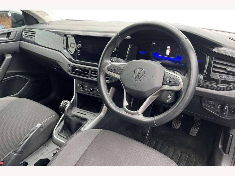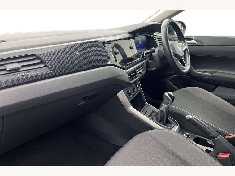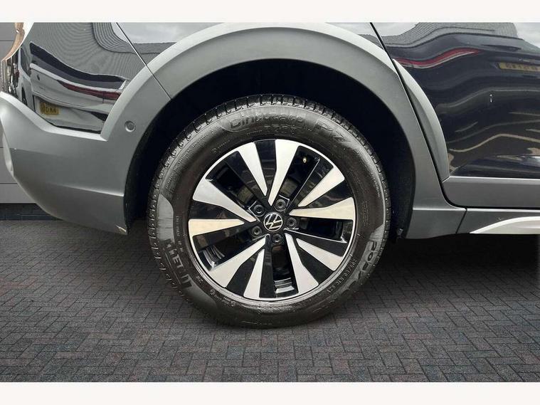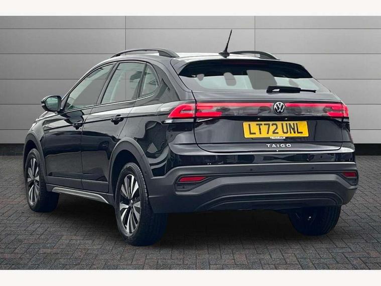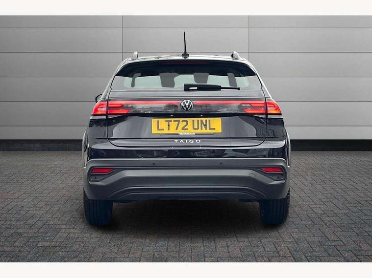 Driver alert system, e-Call (emergency call), Power Steering, Travel assist including emergency assist, Washer fluid level indicator, Wireless Charging including Bluetooth, Start-stop system with battery regeneration (recuperation - energy recovery during braking), WeConnect plus, Ambient lighting with logo projection, Aspherical driver's exterior mirror, Auto headlights, Body coloured bumpers, Body coloured exterior mirror housings and door handles, Electric windows, External USB type C socket and charging sockets, Front fog lamps with cornering function, Headlight range control, Heat insulating glass windscreen, LED headlamps, LED rear combination lamp, LED third brake light, Left convex exterior mirror, Power folding adjustable/heated exterior mirrors and front passenger exterior mirror lowering function, Rear fog light on one side, reversing light on both sides, Rear side wing doors, Rear wash/wipe with intermittent wipe setting, 'Slash/ Austin' Cloth upholstery, 12V socket in centre console, 2 front reading lights, 3 rear head restraints, 3 seat bench in 2nd row, Black carpets, Child seat anchor for child seat system i-Size, 2x top tether and child seat anchor in front on front passenger side, Door and side trim panels in titan black, Driver and front passenger seat height adjustment, Front centre armrest, Handbrake lever handle in leather, Height and reach adjustable steering wheel, Leather trimmed gear knob, Leather wrapped multifunction steering wheel, Luggage compartment floor, Luggage compartment light, Lumbar support for driver's and front passengers seat, Seat covers in titanium black, Single front passenger seat, Split folding backrest with centre armrest and unsplit rear seat bench, Storage compartment under front seats, Sun visors with illuminated vanity mirrors, Chrome Package - Taigo, Drivers assistance pack - Taigo, Light and Sight pack including High beam assist - Taigo, 2 x 3-point seatbelts/outer rear seats with ECE label, 3-point seat belts in front with pretensioner and height adjustment, 3-point seatbelt for centre rear seat, Driver and front passenger airbags with front passenger airbag de-activation, front side and curtain airbags, Driver and front passenger safety-optimised head restraints, Electronic stability control, Extended and predictive pedestrian/ cyclist protection, Front and rear disc brakes, Front curtain and side airbags with center airbag, Hill start assist, Manual rear child locks, Single tone horn, Tyre pressure loss indicator, Anti-theft alarm system with interior monitoring, backup horn, and towing protection, Anti-theft wheel bolts, Lava stone black gloss/matt decorative inserts in dash and front door panels, Low rolling resistance tyres,