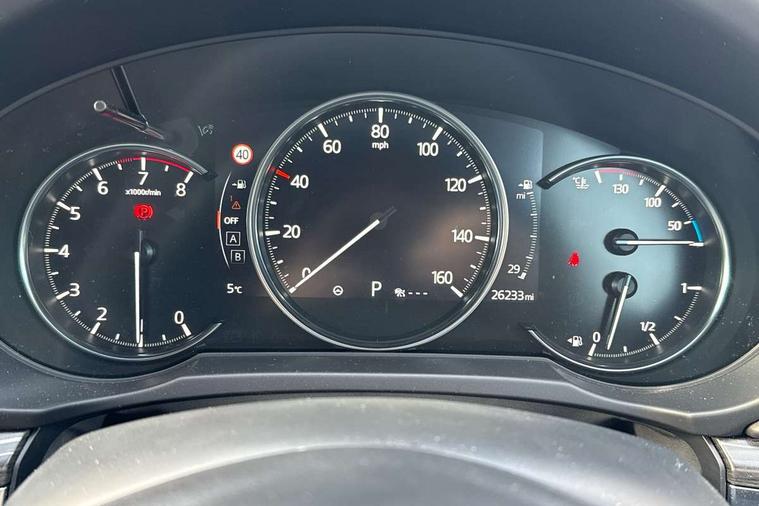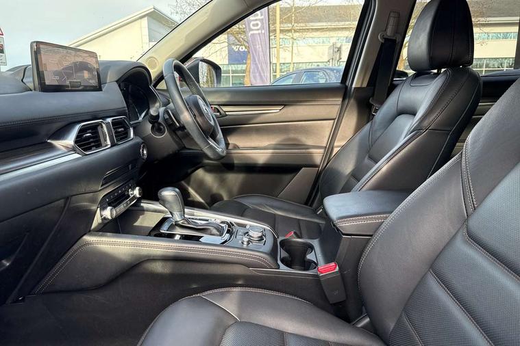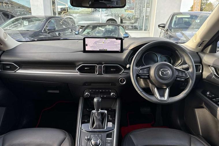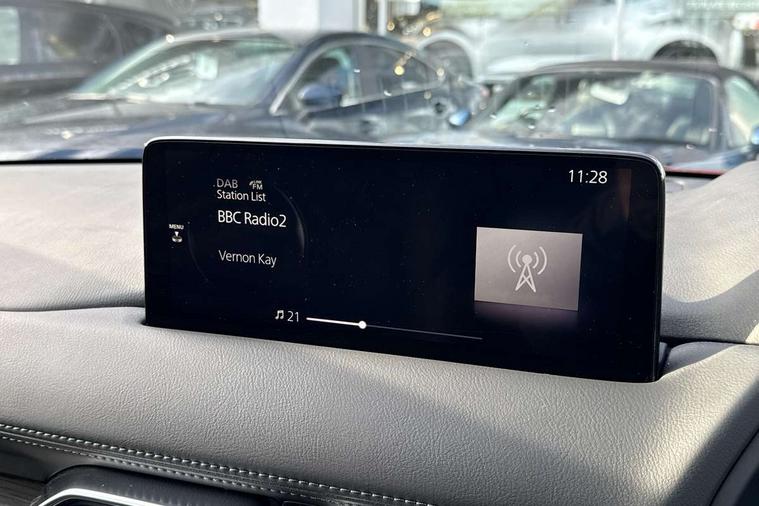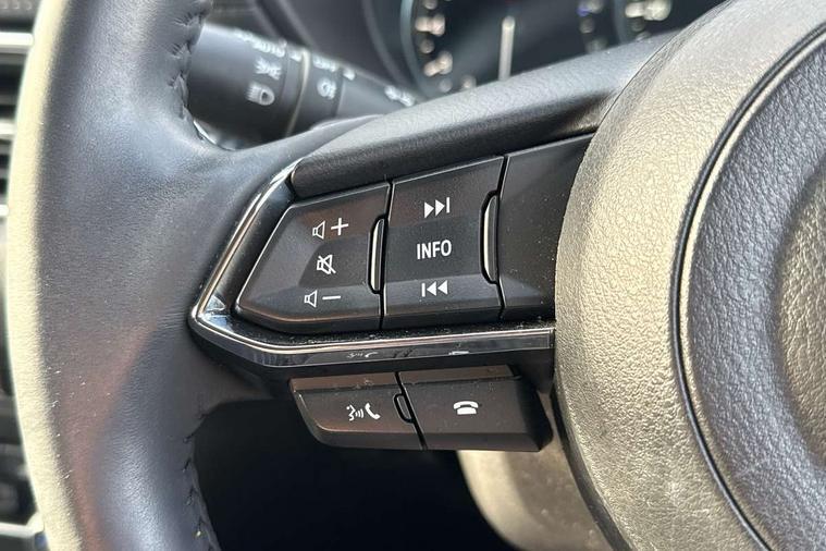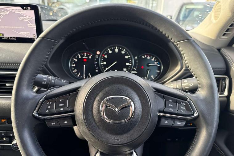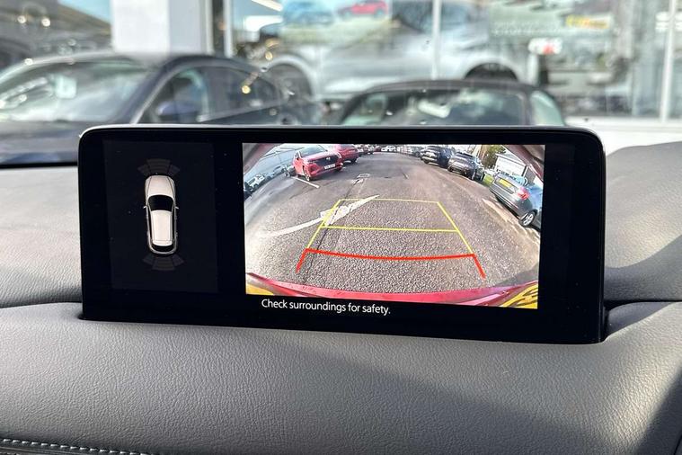 10.25" display with Mazda Connect infotainment, 7" colour TFT display, Advanced blind spot monitoring, Apple car play/Android Auto, Bluetooth connectivity with voice control, Collision prevention assist, Connected services, Cruising Traffic Support, Drive mode selector, Electric power steering, Emergency stop signalling system, Engine start/stop button, Forward collision warning, Front and rear parking sensors, Integrated navigation system, Intelligent speed assist, Lane departure warning system, Lane keep assist, Radar cruise control with Stop and Go, Reversing camera, Service indicator, Traffic sign recognition (TSR), Trip computer, Windscreen projected colour active driving display (HUD) with memory, i-stop, 2 USB sockets in rear, 2x USB sockets in front, 6 speakers, AM/FM radio, Bluetooth audio streaming, DAB Digital radio, Multimedia Commander including separate volume dial, Steering wheel mounted audio controls, Adaptive front lighting system, Auto dimming rear view mirror, Automatic headlights, Black inlay dashboard panel, Body colour door mirrors, Body colour roof spoiler, Body coloured front and rear black lower bumper mouldings, Bright finish signature wing, Coming/leaving home lighting function, Door mirror integrated indicators, Dual chrome tailpipes, Dusk sensitive headlamps, Electric front/rear windows with one touch auto up/down, Front grille in gloss black finish, Gloss black B and C pillars garnish, High beam assist, Intermittent rear wash/wipe, LED auto levelling, LED daytime running lights, LED front fog lights, LED Headlights, LED third brake light, Power folding and heated door mirrors, Power tilt/slide sunroof, Privacy glass (rear side windows only), Rain sensing front wipers, Rear side wing doors, Satin black side mouldings, Scuff plates, Shark fin antenna, Signature LED rear combination lights, Vinyl with wood grain metal inlay door trim panel, Windscreen wiper de-icer, 12v electrical power outlet, 3 seat bench in 2nd row, 3 stage heated front seats, 40:20:40 Karakuri fold-flat seat system, 6 way electric adjustable passenger seat, 8 way electric driver seat with lumbar support + memory, Cargo room flat floor board with waterproof undertray, Driver seat power slide, recline and height adjustment, Driver, Front passenger and two rear grab handles with coat hooks, Driver/passenger front seatback pockets, Driver/passenger sunvisors + illuminated vanity mirrors (drivers with ticket holder), Dual zone climate control, Folding centre armrest with 2 cup holders, Front and rear door pockets, Front centre storage with two cupholders, Front passenger seat power slide, recline and height adjustment, Heated steering wheel, Humidity sensor, Illuminated glovebox, Interior dome light with integral spotlight, ISOFIX child seat anchorage points attached on outer rear seats, Karakuri tonneau cover, Leather upholstery, Leather wrapped steering wheel and gear knob, Light roof lining, Luggage compartment LED lighting, Luggage compartment power outlet, Paddle shifts, Rear air vents, Rear headrests, Rear seat recline, Roof mounted sunglasses holder, Single front passenger seat, Three height adjustable head restraints, Tilt/height adjustable steering wheel, White interior LED illumination lighting, 3 point front seatbelts with pre-tensioners, 3 rear 3 point seatbelts, ABS, Advanced Smart City Brake Support - SCBS, Child locks on rear doors, Driver and front passenger side airbags, DSTC-Dynamic Stability and Traction Control, Dual front airbags, Electronic brake force distribution, Electronic parking brake with auto hold, ESP, Front and rear curtain airbags, Front passenger airbag deactivation, G-Vectoring control, Hill hold assist, Seatbelt reminder front and rear, Single stage passenger airbags, Smart brake support with forward obstruction warning, Tyre pressure monitoring system, Automatic door locking when moving off, Deadlock, Immobiliser, Power door locks, Remote central locking, Smart keyless entry, Thatcham Cat.1 alarm, 19" diamond cut black alloy wheels, Tyre repair kit,