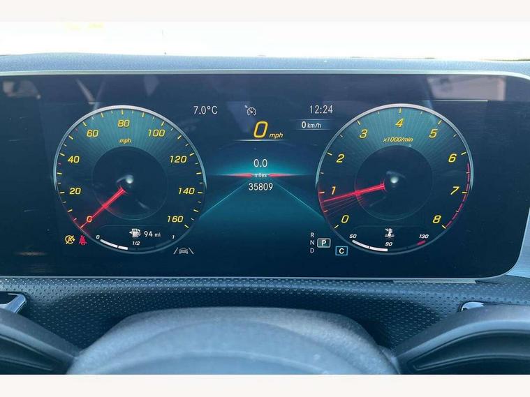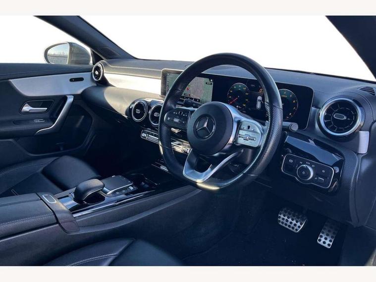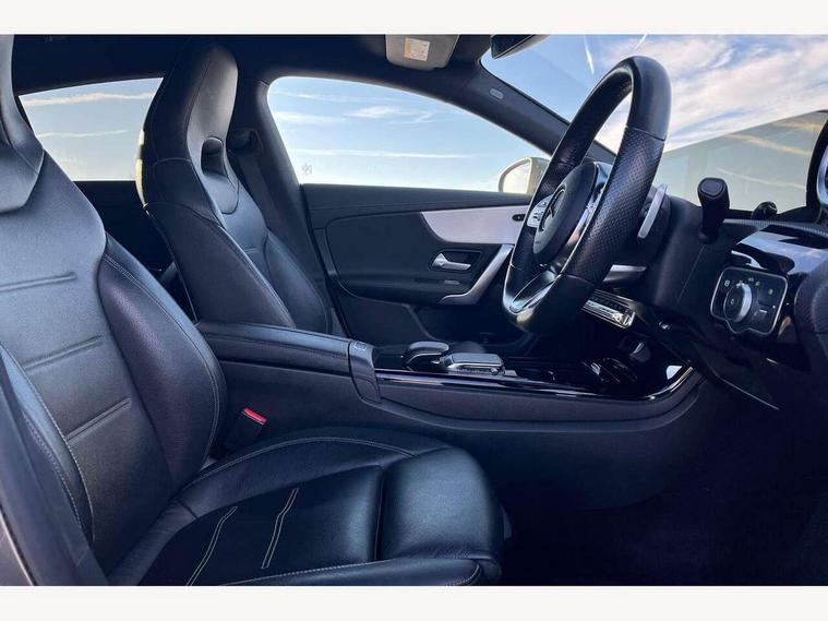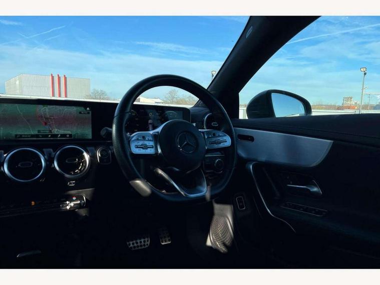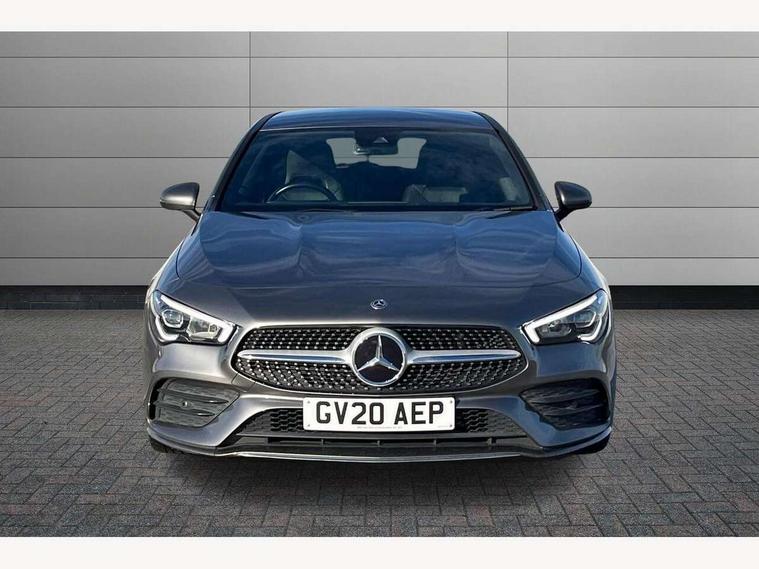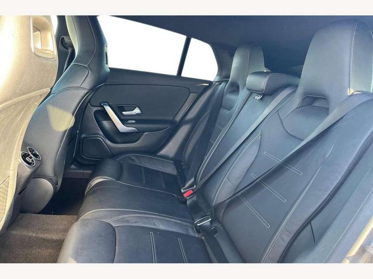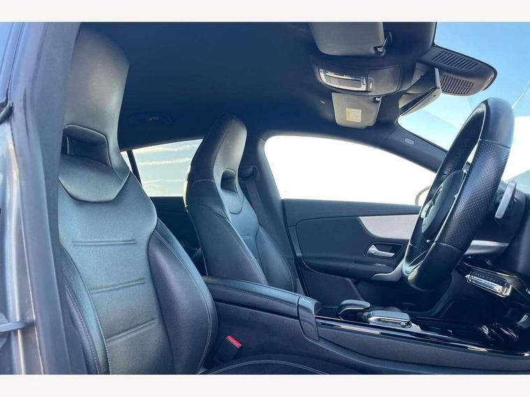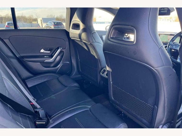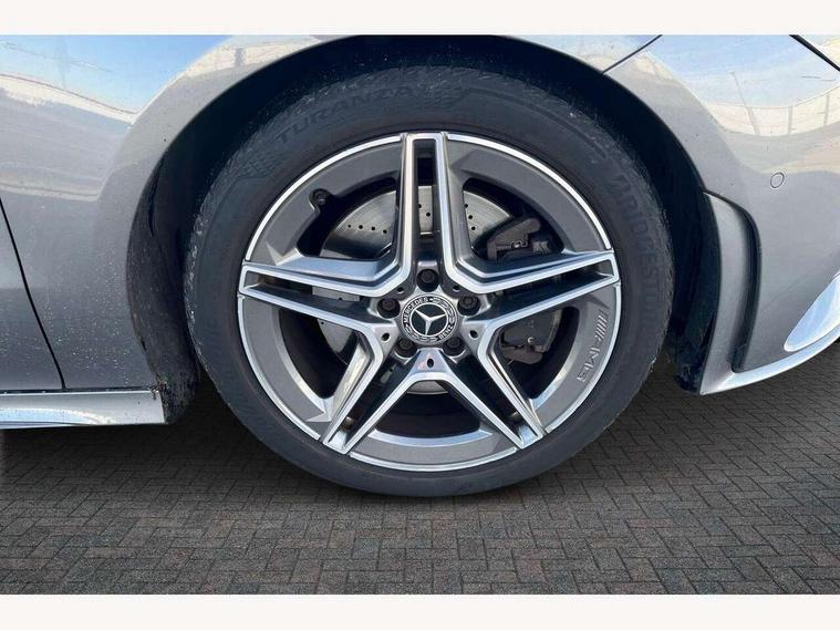 10.25 inch touchscreen media display, 7 inch Instrument display with digital cockpit, Active lane keeping assist, Attention assist - Monitors steering behaviour and long journey fatigue, Bluetooth connection, Car wash mode, Cruise control with limiter, Direct steer system with speed sensitive power steering, DYNAMIC SELECT with a choice of driving modes (ECO, Comfort, Sport and Individual), Easy-pack tailgate, ECO start/stop function, Fluid level warning indicator for fuel, oil, coolant and washer fluid, Hard-disk navigation, Hey Mercedes Voice activation, Lamp failure indicator, Mercedes me connect including emergency call system, accident recovery, breakdown management and maintenance, Outside temperature gauge, Owners manual and service booklet in English, Pre-installation for Vehicle Monitoring, Pre-installation for Vehicle Setup, Pre-installation of private car share, Preinstallation for Mercedes Benz link, Radio aerial integrated into front and rear windshields, Service indicator (ASSYST), Smartphone integration with Apple CarPlay and Android auto, Speed limit assist, Trip computer in multifunction display with current consumption indicator, Wireless charging, 7G-DCT 7 speed automatic transmission, Lowered comfort suspension, Rear axle multi-link, DAB digital radio tuner, MBUX multimedia system with DAB digital radio and touchpad including satellite navigation, Mercedes Benz sound system (100 W) with 6 speakers, USB (type C) ports (2) in stowage compartment and 1 in front of centre console, Adaptive brake lights, AMG body styling with AMG front apron and rear apron and visible exhaust tailpipe in chrome trim elements, AMG bodystyling side skirts, Body colour bumpers, Body colour door handles, Chrome beltline strips, Chrome weather strip, Diamond radiator grille pins in chrome with silver painted louvres and chrome insert, Electric windows, Electrically adjustable and heated door mirrors with integrated LED indicators, Exhaust system with 2 Visible tailpipe trim elements and rear apron with trim in chrome, Headlamp assist automatic headlamp activation, Heated glass rear windscreen + timer control, High level LED third brake light, Interior mirror with black reading lamps and frameless, LED high performance headlamps with integrated LED daytime running lights, LED tail lamp, Privacy glass with dark tinting on rear side windows and rear window, Rain sensing windscreen wipers with two sensitivity settings, Rear fog lamp, Window line trim strip in chrome, 3 spoke flattened bottom nappa leather multifunction steering wheel with perforated leather in grip area, 40:20:40 split folding rear seats with backrest, Air conditioning - Two zone thermotronic luxury automatic climate control with display, Air vents with surround in silver chrome, Automatic child seat recognition sensor, Black roof lining, Brushed stainless steel sports pedals with rubber studs, Floor mats with stitched AMG lettering, Front centre armrest with stowage, Front door sills with Mercedes Benz lettering, Galvanished gear shift paddles on steering wheel, Heated front seats, Illuminated glove compartment stowage, Luggage net on driver/front passenger seat backrest, Manually adjustable front seats, Manually height and reach adjustable steering column, Rear head restraints, Sport seats with fixed head restraints, Stowage compartment in centre console with retractable cover, Sunvisors with illuminated vanity mirrors, Touchpad on center console, Twin front cupholders, Two outer rear seat isofix and top tether child seat fixing points, Light and sight pack - CLA, Mirror pack - CLA, Parking package - CLA, Seat comfort pack - CLA, Active bonnet pedestrain safety measure which detects an impact and raises bonnet by 65mm, Active brake assist includes forward collision warning system with autonomous braking, Adaptive brake assist with hold function and hill start assist, Anti-lock braking system (ABS), Black seat belts, Bonnet with power domes, Brake pad wear warning indicator, Childproof locks manually operated for rear doors and electrically operated for rear power windows, Crash responsive emergency lighting, Driver and front passenger head and sidebags, Driver and front passenger windowbags, Drivers knee airbag, Dual stage driver and front passenger airbags, Electric parking brake, Electronic stability programme with acceleration skid control, ESP curve dynamic assist, Front and rear seatbelt reminder, Front passenger seat occupancy sensor, Three point rear seat belts, Tyre pressure monitoring system, Warning triangle and first aid kit, Keyless Go starting function, Remote central locking and crash sensor with emergency opening function, Urban guard vehicle protection system with immobiliser and interior protection, Light aluminium with longitudinal grain interior trim, 18" 5 twin spoke design alloy wheels painted in titanium grey with high sheen finish, Summer tyres, Tirefit tyre sealant kit,