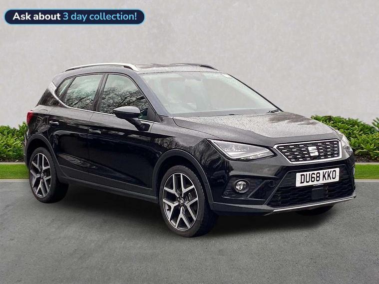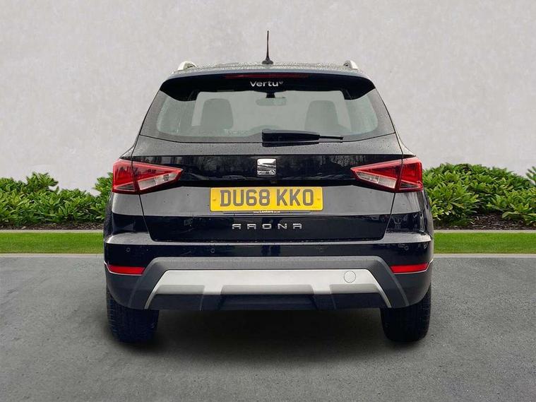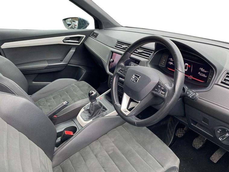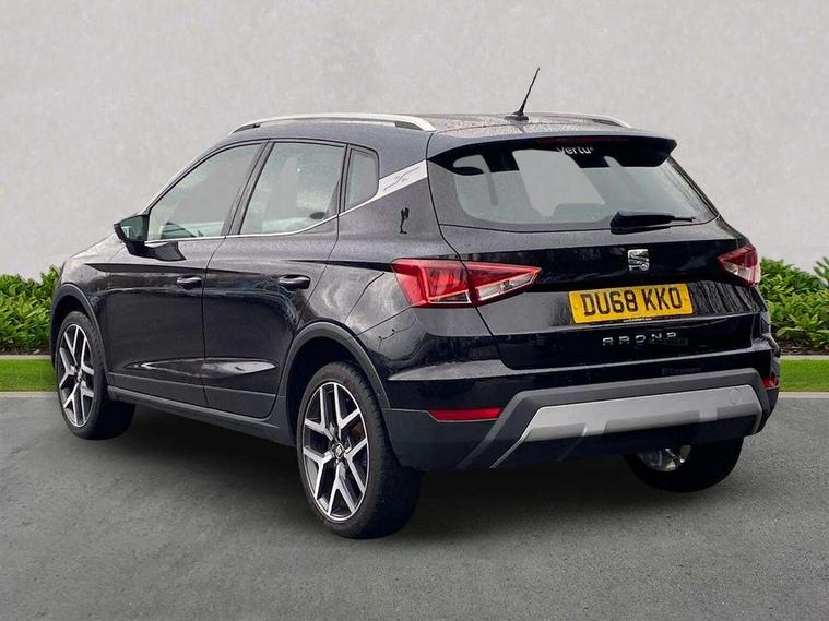 'Lights On' Reminder warning buzzer, Adaptive cruise control, Blind spot monitor, Digital clock, Digital cockpit, Electric speed sensitive power steering, Front assistant collision mitigation, Front parking sensor, Low fuel warning light, Outside temperature display, Park assist system, Rear cross traffic alert, Rear parking sensor, Rear view camera, SEAT Drive profile, Trip computer, Comfort suspension, 6 speakers, Bluetooth interface for hands free and audio streaming, DAB Digital radio, Steering wheel mounted audio controls, Anti theft roof antenna, Auto dimming interior mirror, Automatic activation of hazard warning lights, Automatic headlights, Body coloured bumpers, Body coloured door handle inserts, Chrome grille bars, Chrome grille surround, Chrome roof rails, Chrome window surround, Coming/leaving home lighting function, Electric front/rear windows with one touch/auto up/down, Electrically adjustable and heated door mirrors, Electrically folding wing mirrors, Front fog lights, Full LED headlights, Hidden exhaust pipe, LED daytime running lights, LED tail lights, Rain sensor windscreen wipers, Rear fog lights, Rear window wash/wipe, Roof colour door mirrors, 2 cupholders, 3 rear height adjustable headrests, 60/40 split folding rear seat, Active head restraints, Ambient interior lighting, Double boot floor, Driver and passenger sunvisors, Driver/front passenger seat height adjustment, Dual zone climate control, Dust/pollen filter, Footwell ambient lighting, Front courtesy lights, Front reading light, Front seat and rear pockets, Gear shift indicator, Height/reach adjustable steering column, Illuminated boot, Instrument lighting with brightness control, Isofix attachments on outer rear seats, Leather handbrake, Leather steering wheel and gear knob, Microsuede cloth upholstery, Multi-colour ambient interior lighting, Connectivity pack plus - Arona, Storage pack - Arona, 3 point seatbelts on all rear seats, ABS+EBA, Child locks on rear doors, Driver/Front Passenger airbags, Electronic stability control, Front and rear seatbelt reminder, Front side/curtain airbags, Height adjustable active front headrests, Hill hold control + Tyre Pressure monitor, Multi-Collision braking, Passenger airbag deactivate switch, Tiredness recognition system, Traction control, 2 folding remote keys with window open/close function, Alarm with interior monitoring, Immobiliser, Keyless entry and start, Locking wheel bolts, Remote central locking + deadlocks, Interior chrome line trim, White dashboard, 18" Performance alloy wheels,