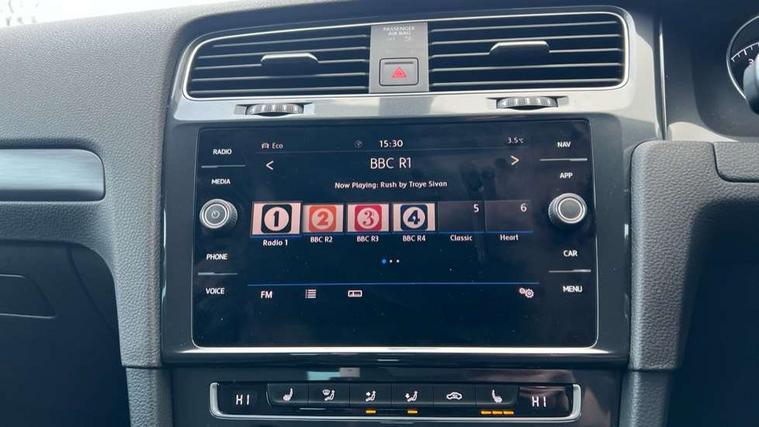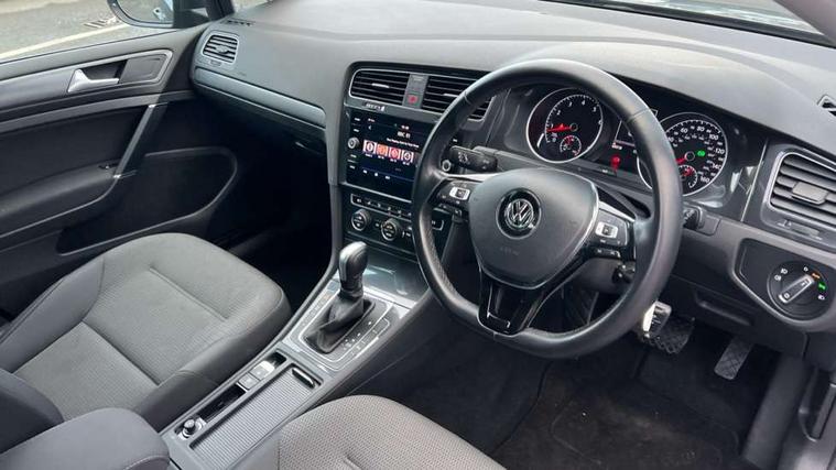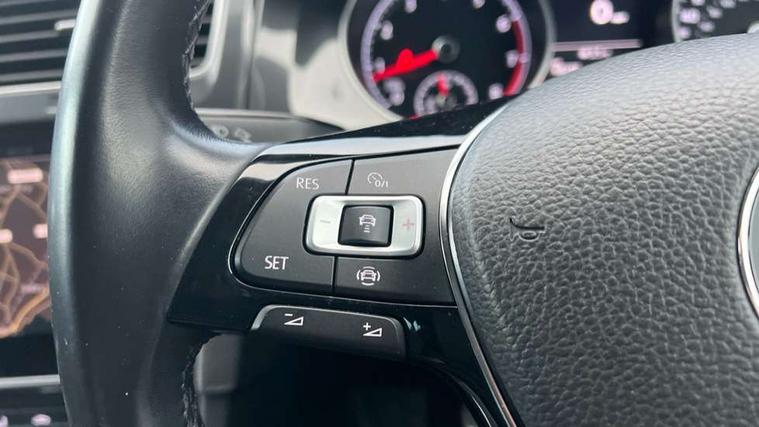 'Lights On' Reminder warning buzzer, ACC - Adaptive cruise control with front assist, forward collision warning, distance monitoring, city emergency brake and speed limiter, Bluetooth telephone and audio connection for compatible devices, Brake pad wear indicator warning light, Driver alert system, Driving Mode Selection with four preset modes - Eco, normal, sport or individual modes, Multifunction computer with visual gear change recommendation for fuel consumption, Power assisted speed sensitive electro-mechanical steering, Push tank flap, Speed limit display, Speedo, rev counter, electronic odometer, trip, service interval display, exterior temperature and fuel gauge, Stop/start system, Think blue trainer driver tips and journey analysis, Warning buzzer and light for front seatbelts unfastened, Battery regeneration during braking, XDS electronic differential lock, Composition media system, DAB Digital radio receiver, Driver Personalisation profile selection, MP3/WMA compatability, Multi device interface (MDI) via USB connection, Premium USB cable in choice of either Apple or Android smartphone compatibility, SMS Functionality, Title and cover art display, USB and SD card connectivity, Volkswagen media control, Black front air intake and radiator grille with chrome insert, Black rear diffuser, Body colour bumpers, Body colour door handles, Body colour door mirrors with integrated indicators, Dusk sensor + automatic driving lights, Electric front windows, Electric rear windows, Electrically adjustable and heated door mirrors, Fully galvanised body, Heated rear windscreen, High level 3rd brake light incorporating LED Technology, LED front fog lights with static cornering light function, Range adjustable headlights via infotainment system with LED daytime running lights, Rear fog lamp, Rear number plate lights incorporating LED technology, Rear tinted glass 65% light absorbing from B pillar backwards, Rear window aerial, Rear window wash/wipe with intermittent wipe, Reflectors in all doors, Tailgate with integrated rear roof spoiler, Windscreen wipers/ intermittent wipe + 4 position delay, 12V socket in luggage compartment, 3 rear headrests, 4 load lashing points in luggage compartment, 60/40 split folding rear seat backrest, Bag hook in luggage compartment x 2, Climate control - 2 zone electronic air conditioning with automatic air recirculation and allergy filter, Cooled glovebox, Cover for storage compartment in centre, Dust/pollen filter, Front and rear reading lights X 2, Front centre armrest with storage compartment and two rear air vents, Front seat back storage pockets, Grab handles front x 2, rear x 2 with integrated coat hooks, Height and reach adjustable steering wheel, Illuminated vanity mirrors, Instrument lighting white adjustable panel illumination, Interior light delay, Isofix preparation for 2 rear child seats, Load through provision with rear centre armrest and cupholders x2, Luggage compartment lighting, Overhead storage box, Pearl grey headlining, Storage box in luggage compartment, Storage compartment in roof console with cover, Storage compartments in centre console, Storage compartments in front doors, Storage compartments in rear doors, Stowable luggage compartment cover, Sun visors, Variable boot floor, height adjustable and removable, Convenience Pack - Golf, Mirror pack - Golf, Winter pack - Golf, 3 rear three point seatbelts, Airbags - Driver's and front passenger's, curtain airbag, Driver's knee, front side impact and passenger's airbag deactivation switch, Anti-lock Braking System (ABS) with Hydraulic Brake Assist (HBA), Automatic post collision braking system, Child locks on rear doors, Driver/Passenger optimised head restraints, Electronic parking brake with auto hold, Electronic stability control (ESC) including Electronic differential lock (EDL) and ASR (Traction control) with deactivation via infotainment system, Front ventilated disc brakes and rear disc brakes, Pre crash preventive occupant protection, Three point height adjustable front seatbelts with tensioners, Tyre pressure loss indicator, Alarm with interior protection and deactivation via infotainment system, Electronic engine immobiliser, Brushed dark silver decorative inserts in dash and door panels, Chrome plated air vent surround, Chrome-plated light switch surround, Polar night black decorative inserts in centre console, Steel space saver spare wheel,