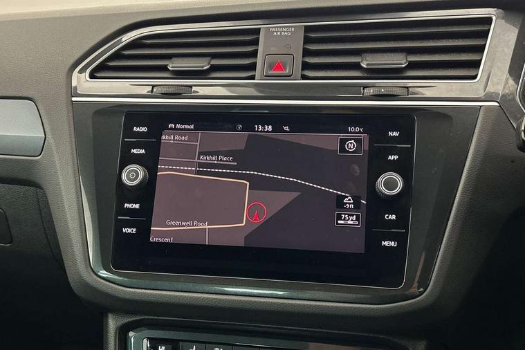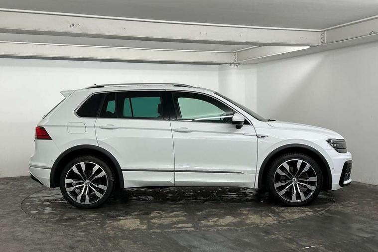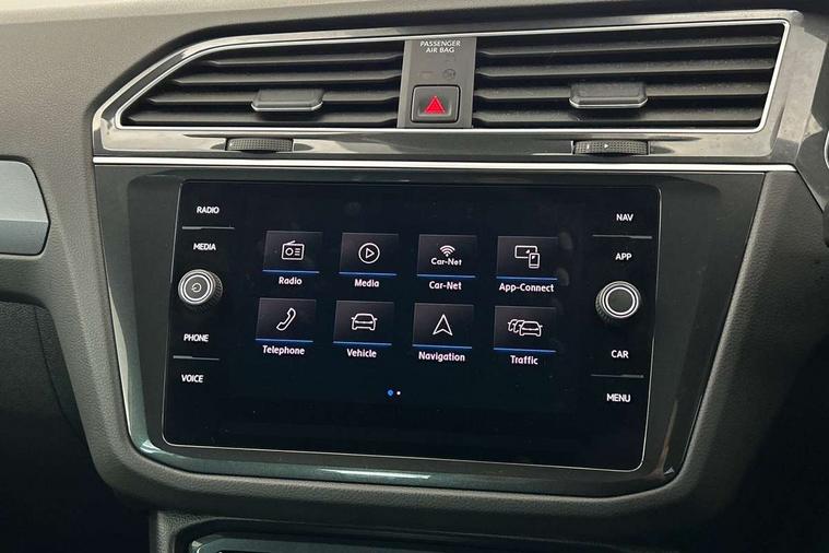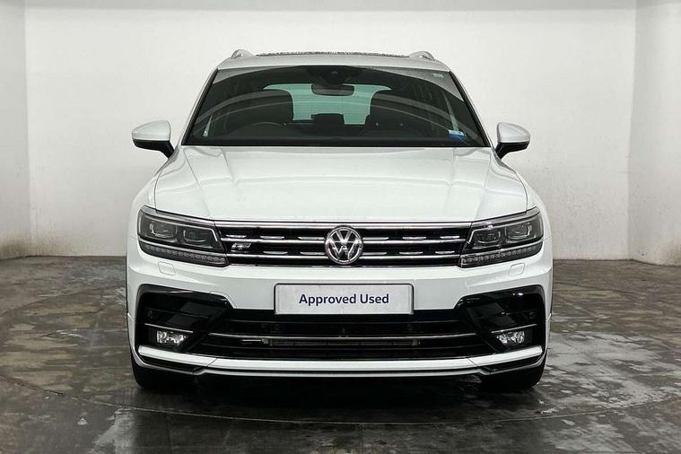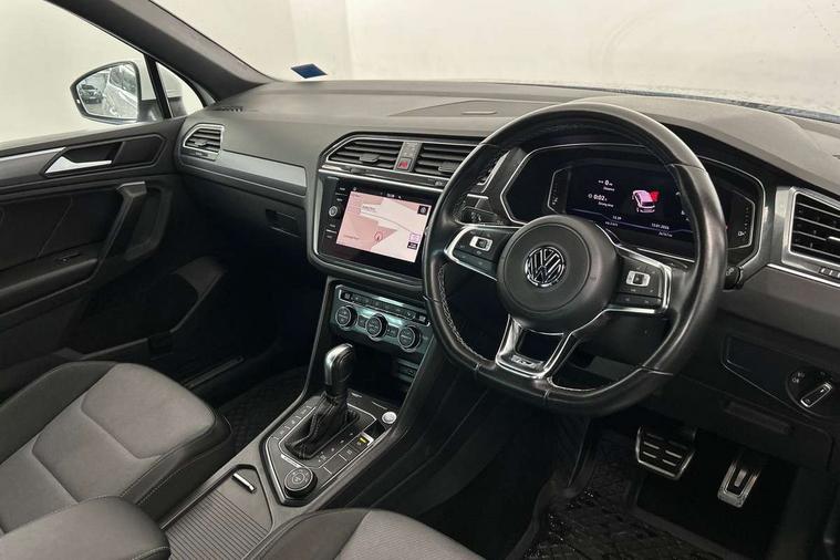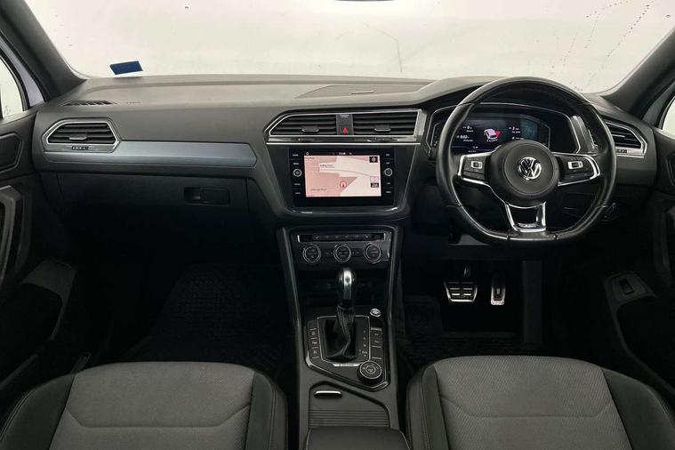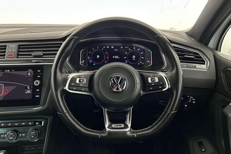Active information display, Adaptive cruise control, App-Connect, Area view with park assist steering and front and rear parking sensors, Bluetooth phone integration system, Car-Net Security and Service, Coasting function, Distance control assist, Drive mode selector, Driver profile selection, Fatigue detection system, Front assist, radar sensor controlled distance monitor, city emergency braking + predictive pedestrian protection, Fully electric tailgate + keyless entry and start, Instrument cluster, Lane assist, Low washer fluid warning light, Outside temperature display, Progressive power assisted steering, Service interval indicator, Speed limiter, Start/Stop function, Warning lights, XDS electronic differential lock, 2x USB sockets in front, 4 X 20 watt output, DAB Digital radio, SD card slot, Simultaneous pairing of 2 compatible mobile devices, SMS functionality - read, compose and send SMS messages using touch-screen display, Title and cover art display, 3D effect cherry red LED rear tail lights, Auto dimming interior mirror, Automatic activation of hazard warning lights, Body colour door handles, Body colour door mirrors, Body colour rear spoiler, Body colour side skirt, Body coloured bumpers, Chrome side window surrounds, Chrome trimmed radiator grille, Coming/leaving home lighting function, Dusk sensor + auto driving lights, Electric folding door mirrors, Electric heated + adjustable door mirrors, Electric panoramic sunroof with sunblind, Front air intake with chrome strip, Front and rear electric windows, Heated rear window, High level 3rd brake light, LED headlights with dynamic light assist daytime running lights and cornering front fog lights, LED rear number plate lights, Piano black rear diffuser, R Line body kit, R Line side sills, Rain sensor windscreen wipers, Rear tinted glass from B-pillar backwards approx 65% tinted, Rear windscreen washer and wiper with interval delay, Side skirts and rear bumper with chrome insert, Silver roof rails, Silver under body guard, Trailer Stability Programme, Windscreen wipers/ intermittent wipe + 4 position delay, 12V Accessory socket in centre console, 3 rear headrests, 3 spoke leather multifunction steering wheel with paddle shift, 3 zone climate control, 4 load lashing points, 40:20:40 split folding rear seats, Bag hook in luggage compartment, Black headlining, Foldable passenger seatback, Front + rear carpet mats, Front centre armrest with 12v socket, Front centre armrest with storage + rear 2 air vents + cupholders, Front seat back storage pockets, Front seatback folding tables, Height/reach adjust steering wheel, Illuminated driver/passenger vanity mirrors, Illuminated scuff plates, Instrument lighting white adjustable panel illumination, Interior light with delay, Isofix Preparation 2 Rear child seats, Leather gear knob, Load through provision with 2 cupholders when folded, Lockable cooled glovebox, Luggage compartment lighting, Luggage compartment side storage, Map pockets on front seats, Passenger seat height adjuster, Rear cupholders, Removable luggage cover, Sliding/reclining rear seats, Stainless steel pedals, Storage compartment in driver's door, Storage compartment in passenger's door, Storage compartment in rear doors, Storage tray on dashboard, Sunglasses storage, Unique R Line door sill protectors, Variable boot floor, Ambient lighting pack - Tiguan, Winter pack - Tiguan/Tiguan Allspace, 3 rear 3 point seatbelts, ABS+EBD+Brake assist, Active bonnet, Active pedestrian safety system, Curtain airbags, Driver/Front Passenger airbags, Driver/Passenger whiplash optimised head restraints, Drivers knee airbag, DTC - Drag torque control, Electronic parking brake with auto hold, ESP with EDL + ASR, First aid kit, Front side airbags, Front ventilated disc brakes and rear disc brakes, Head airbag system, Height adjustable front 3 point seatbelts + pretensioners, Hill hold control, Passenger airbag deactivate switch, Passenger knee airbag, Proactive preventive occupant protection, Rear side airbags, Rigid safety cell with front and rear crumple zones, Seatbelt warning lamp and buzzer, Two tone horn, Warning triangle, Alarm with interior protection, Electronic engine immobiliser, Remote central locking with 2 remote folding keys, Aluminium decorative inserts, Chrome door trim inserts, 20" Suzuka alloy wheels + anti theft wheel bolts, Steel space saver spare wheel,