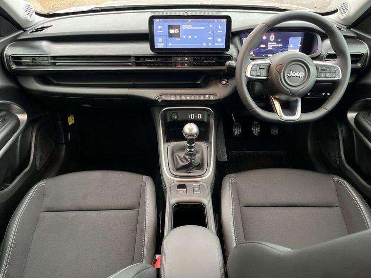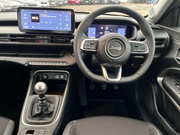(AEB) Autonomous Emergency Braking with pedestrian and cyclist recognition, 10.25" Full TFT reconfigurable colour cluster, All-Terrain Mode Selector, Apple Carplay/Android Auto with wireless mirroring, BSRF connectivity box, Connectivity services, Drowsy driver detection system, eCall emergency call system, Keyless Start/Engine On Button, Lane keep assist, Odometer, PAS, Quick Guide English, Traffic sign recognition, Warranty Booklet - UK, Battery default, High efficiency alternator, Rear USB port with type-C charging, 3rd brake light, All power windows express Up/Down, Automatic headlights, Body colour exterior door handles, Day time running light, Gloss black mirror caps, Rain sensor, Rear side wing doors, Rear wiper, Silver skid plates, Wiring preperation for towing group by Mopar, 3 rear headrests, 3 seat bench in 2nd row, Automatic A/C (1 Zone), Cargo Flex Kit - Flat floor on trunk area, height adjustable cargo floor, double face carpet/scratch resistant and washable, Central console dividers x2, Driver and front passenger sunvisor with vanity mirror, Foldable second row seats 40/60 - Fix and Fold, Front central armrest with storage, Front head restraints, Front passenger grab handle, Front passenger isofix child seat attachment, Front seat backrest pocket, I am Jeep label, Single front passenger seat, Synthetic leather gear lever knob, Synthetic leather steering wheel, Anti-lock braking system (ABS), Child locks on rear doors, Electric parking brake with auto hold function, ESC - Electronic Stability Control + traction control, Hill descent control, Kit fix and go predisposition/housing only, Rear seat ISOFIX, Three 3 point rear seatbelts, Vulnerable road user recognition - Pedestrian/Cyclist incl. AEB, Volumetric anti theft alarm, Black dashboard, Fix and go puncture repair kit,