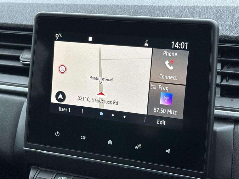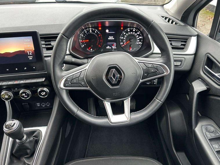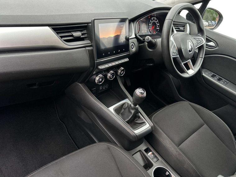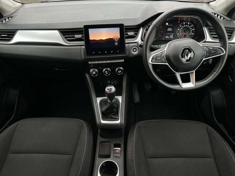 4.2" TFT Driver information display, Cruise control + speed limiter, eCall emergency call system, Eco mode, Gear change indicator, Lane departure warning system, Lane keep assist, Renault automatic emergency assist, Traffic sign recognition, Trip computer, Variable assistance power steering, EasyLink Nav 7" touchscreen, 4x20W amp, FM DAB, sound auditorium, 2xUSB, 1xJack, Bluetooth, smartphone integration plus, Apple carplay/Android auto, Automatic front wipers with rain sensors, Automatic headlights, Body colour door handles, Body coloured bumpers, Body coloured door mirrors, Electric adjustable/heated/folding door mirrors, Electric front windows + one touch + anti-pinch, Electric rear windows, Extra tinted glass in rear windows and tailgate, Full LED front and rear headlamps integrating daytime running lights at the front and rear, Gloss black side door protection with chrome effect, LED front fog lights, Rear fog lights, Rear wiper, Roof bars, Variable speed on front windscreen wipers, 12V Accessory socket, 3 rear headrests, 5.2L front glovebox, 60/40 split folding rear seat bench, Automatic climate control with one touch demist function, Centre console storage tray, Cloth upholstery, Front head restraints, Heating system with pollen filter, Height adjustable driver's seat, Height/reach adjust steering wheel, ISOFIX child seat fixing points on rear outermost seats, Middle console with armrest and storage, Rear air vents, Synthetic leather steering wheel, 3 rear seatbelts, ABS+EBA, AEBS, Distance warning alert, Driver and front passenger, side, head and curtain airbags, Driver height adjustable seat belt, Electric parking brake, Electronic stability control, Front and rear no seatbelt warning sound, Front dash warning indicator in case of heavy braking, Front driver and passenger side airbag deactivation, Hill start assist, Rear door and window child locking function for rear door, Tyre pressure warning light, Anti drill door locks and locking fuel cap, Deadlocking system, Hands free keycard with push button and start/stop function, RAID (Renault Anti-Intruder Device) automatic door locking, Remote central locking with thatcham approved immobiliser, Black soft touch dashboard with black gloss air vent surrounds,