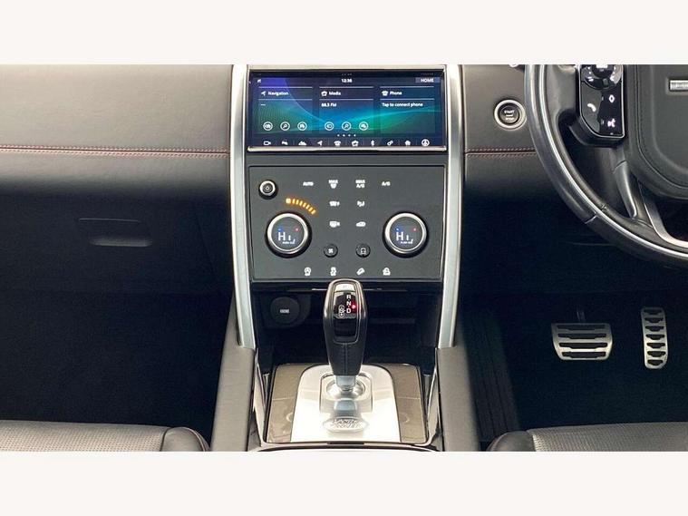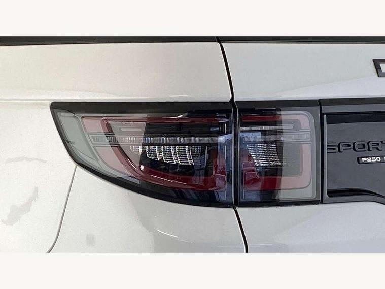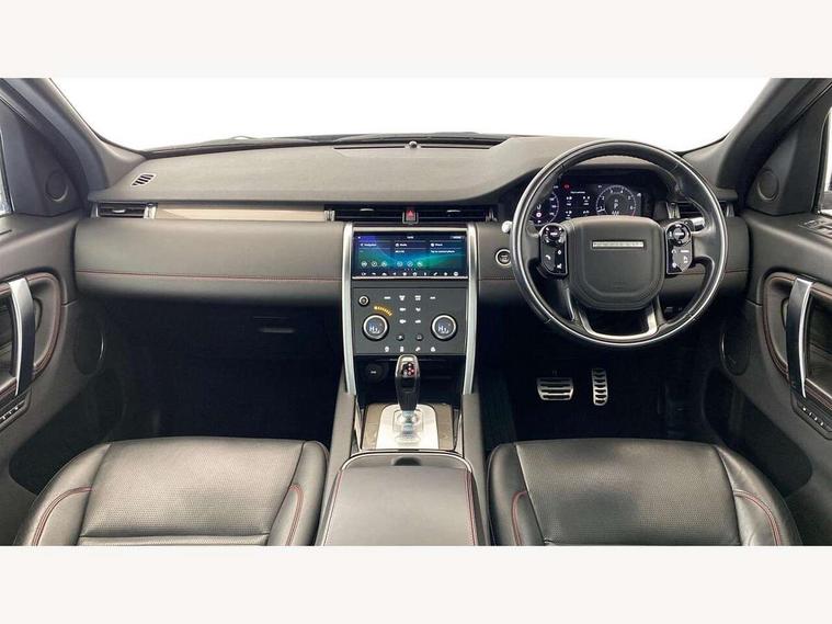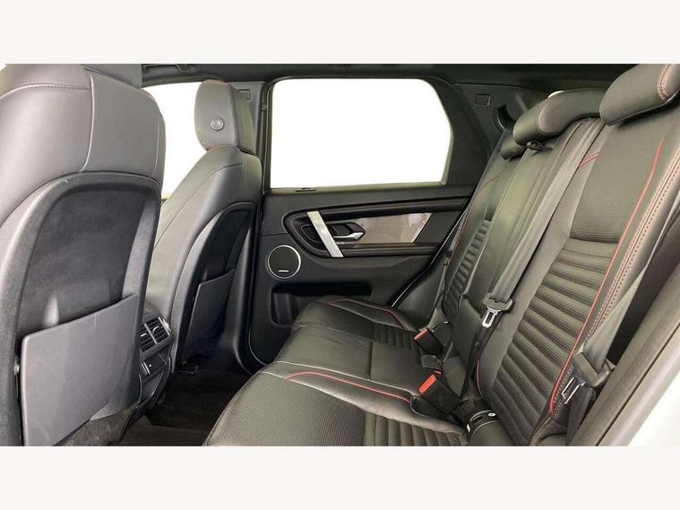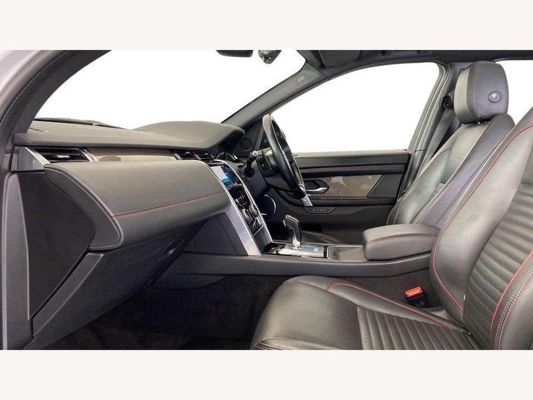Android Auto, Apple CarPlay, Blind spot assist, Connected navigation pro, Driver condition monitor, InControl remote premium, Interactive driver display, Lane keep assist, PAS, Powered tailgate/boot lid, Service interval indicator, Traffic sign recognition with adaptive speed limiter, Trip computer, All terrain progress control, Coil suspension system, Terrain Response 2, Bluetooth connectivity including audio streaming, Digital Audio Broadcast radio-DAB, Steering wheel mounted audio controls, Automatic headlight levelling, ClearSight interior rear view mirror, Door mirror memory, Electric front/rear windows, Illuminated metal front treadplates with R dynamic branding, Power fold, auto-dimming, heated door mirrors with approach lights, Rain sensing windscreen wipers, Rear wiper, Black gearshift paddles, Bright metal pedals, Front passenger isofix child seat attachment, Illuminated vanity mirrors, Rear headrests, Third row dual adjustable individual seats, Tilt/reach adjustable steering wheel, Online pack - Discovery sport, 3 point seatbelts on all seats, ABS, Brake hold function, Collision mitigation braking system, Cornering brake control (CBC), Driver/Front Passenger airbags, Drivers knee airbag, Electronic brake force distribution, Electronic parking brake, ESP + traction control, High speed emergency braking, Hill descent control, Hill launch assist, Pedestrian airbag system, Roll stability control, Side and curtain airbags for front and 2nd row seats, Tyre pressure monitoring system, Battery Back Up System (BBUS) with tilt sensor, Intrusion sensor, Keyless entry, Locking wheel nuts, Centre stack rails in noble chrome,