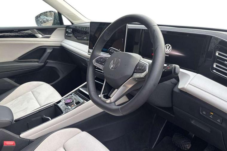 Adaptive cruise control (ACC), Advanced driver attention and drowsiness monitor, Bluetooth mobile phone interface, Car2X technology, Comfort drive travel assist, lane keeping system, lane assist and emergency assist, Digital Cockpit Pro - 10.25" high resolution dash display screen with customisable menus and information, Dynamic road sign display, E-Sim card for online connectivity, eCall emergency call service, Front Assist - Autonomous emergency braking with pedestrian and cyclist monitoring, Lane change system, Side assist, Rear traffic alert and Exit warning system, Multifunction front facing camera, Oncoming vehicle braking when turning including swerve support, Park assist pro with park distance control (Remote park assist), Power assisted steering with speed sensitive, Start/stop system with regenerative braking, Warning signal and warning light for front and rear seatbelts not fastened, Wireless App-Connect, Front wheel drive, Digital radio reception (DAB), Diversity antenna for FM reception, Air intake with Chrome trim, Ambient lighting with logo projection, Auto dimming interior rear view mirror, Automatic headlight control system, Body colored bumpers in R-Line style, Body coloured door handles, Body-coloured exterior mirror housings, Chrome moldings on the side windows, Coming/leaving home lighting function, Heat insulating glass in side and rear windows, Heated rear window, Heated windscreen washer jets, High level 3rd brake light, Illuminated door handle recesses, Illuminated lightline between headlamps, Laminated safety glass from B-pillar backwards 90% tinted, Laminated safety glass windshield, LED Day time running light, Rain sensor windscreen wipers, Rear fog light on one side, reversing light on both sides, Rear side wing doors, Rear wiper, Silver roof rails, 12V outlet in center console rear and in luggage compartment, 12V socket in centre console, 3 bench rear seats in 2nd row, Air care climatronic 3 zone air conditioning system with rear air conditioning control panel, Carpet mats, front and rear, Centre console with illuminated storage compartment with sliding cover and two drinks holders, Ceramique headlining, Chrome elements on the mirror switch and power window switches and door pulls, Door and side trim panel with leatherette insert, Door sill protectors, Front centre armrest, Interior ambient lighting with 30 colour options, ISOFIX anchors for child seats on outer rear seats and front passenger seat compatible with i-Size, Mechanical rear seat release, Power adjustable lumbar support in front, Rear bench seat, split folding, longitudinally movable and folding with load-through hatch and centre armrest, Safety optimised front head restraints, Single front passenger seat, Sports comfort seats in front, Sun visors with illuminated vanity mirrors, Three rear head restraints, Variable luggage compartment floor, Comfort package with park assist plus and Safelock - Tiguan, Driver assistance package - Tiguan, 3 point seat belt for centre rear seats, 3 Point seat belts in front with pretensioners, 3 point seatbelts in outer rear with ECE label, Driver and front passenger airbag with front passenger airbag deactivation, Electronic parking brake with auto hold, Front and rear curtain airbags, Front and rear side airbags, Front centre airbag, Front disc brakes, Hill start assist, Manual child proof rear door locks, Rear disc brakes, Two tone horn, Warning triangle, Decorative inserts Cross in dash and front door panels, Interior door handle in matte chrome, Soul instrument panel,