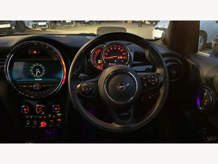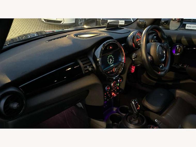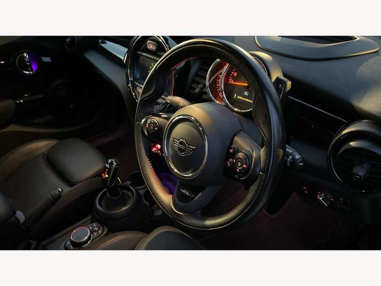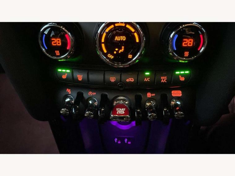Acoustic seat-belt warning, Basic bluetooth function with USB audio, Brake fluid level warning light, Brake pad wear indicator warning light, DTC - Dynamic traction control, Exterior temperature gauge, Intelligent emergency call, MINI TeleServices, Oil level indicator, On board computer, Push button starter, Service interval indicator, Servotronic PAS, Electronic differential lock, Performance Control, Auxiliary input socket, DAB digital radio module, 2 speed wipers+intermittent wipe, Anti dazzle mirror, Anti trapping/one touch open close front windows, Body colour scoop integrated into engine- compartment lid, Body coloured bumpers, Chrome bezels around rear lights and headlights, Chrome door handles, Chrome plated fuel cap, Chrome plated trim on bottom edge of window, Chrome strip on lower grille, Electric front windows, Electric rear windows, Electrically adjustable door mirrors, Flared wheel arches, Follow me home headlights, Green tinted heat insulating glass, Heated door mirrors/heated windscreen washers, Heated rear window with auto timer, High gloss black tailgate, Honeycomb radiator grille, LED fog lights, LED rear lights, Rear wiper, Side scuttles, Twin chromed exhaust pipes, White indicator lights, 2 rear head restraints, 4 boot load lashing points, 4 way manually adjustable passenger seat with height, reach, tilt, backrest and headrest, 6-way manually adjustable driver's seat, Active carbon filter, Adjustable front seats backrest, Air recirculation system, Auxiliary socket in centre console storage compartment, Centre console storage, Driver's seat height adjuster, Driver/passenger sunvisors, Front and rear cupholders, Front head restraints, Front passenger grab handle, Front seat backrest storage nets, Front sports seats, Gear/selector and handbrake in artificial leather, Internal chrome door handles, Isofix child seat preparation, Luggage compartment lighting, Multifunction steering wheel, Reach + rake adjustable steering column, Rear grab handles, Rear storage trays, Split folding rear seats, Storage compartments in doors, Toolkit in luggage compartment, 3 point seatbelts, 3x3 point rear seatbelts, ABS/EBD, ASC+T, Cornering brake control (CBC), Crash Sensor - activates hazard/interior lighting + unlocks doors, Driver and passenger airbags, Driver/front passenger side airbags, DSC - Dynamic Stability Control, Fuel cut off safety device, Head airbags, Hill start assist, Manual passenger airbag deactivation function, Seatbelt pretensioners, Tyre pressure warning, Ventilated front disc brakes, Drive away door locking, Locking wheel bolts, Remote central locking/doors+fuel cap+tailgate, Second remote key, Thatcham category 1 alarm + immobiliser,