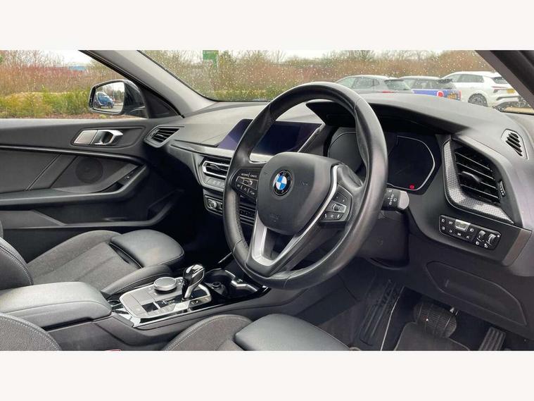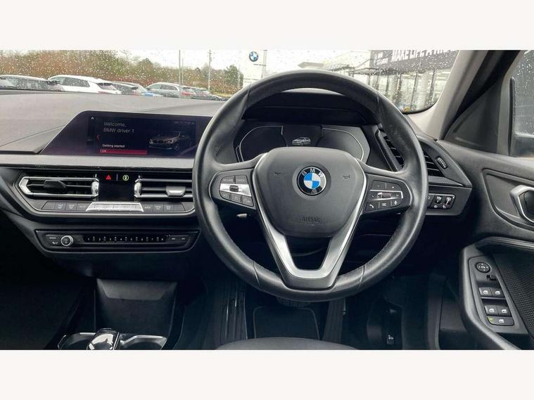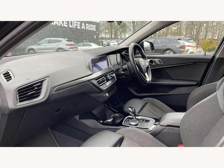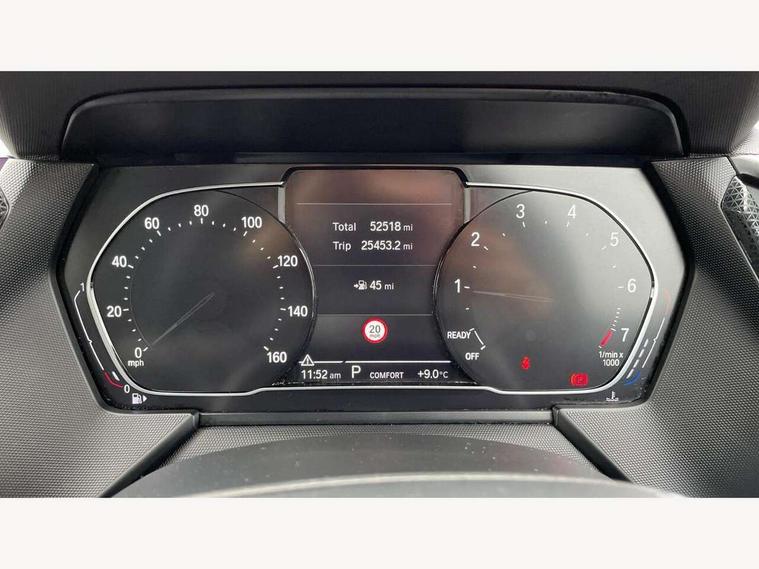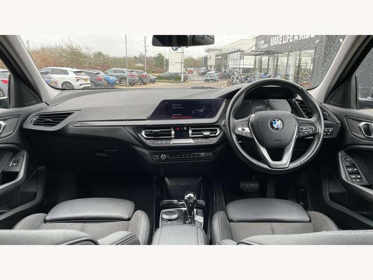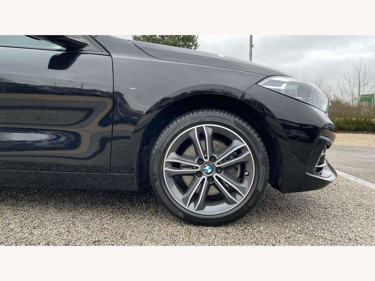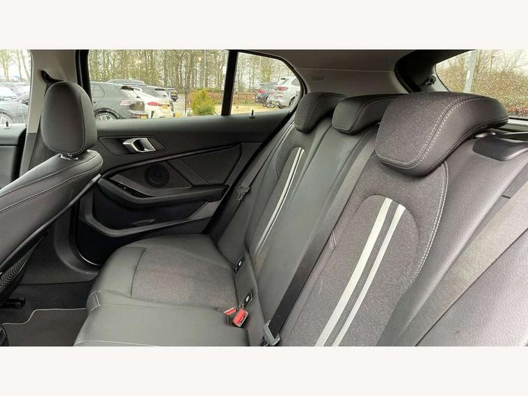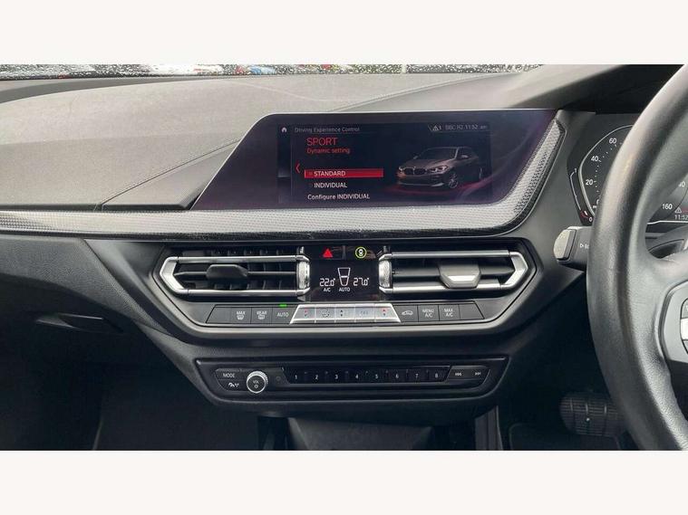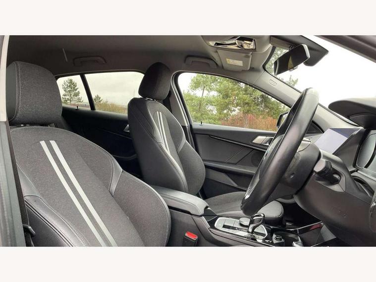 Active guard plus, Attentiveness assist, BMW Online services, BMW Teleservices, Check Control warning system for monitoring of lights and door/luggage compartment open warning, Connected eDrive Services, Eco pro mode, Electric power steering, Integrated owners handbook, On board computer, Optimum shift indicator, Personal Profile, Pull away assistant, Speed limiter, Anti roll bar front and rear, Balancer shaft, Double VANOS, Drive Performance Control, Electronic differential lock, Petrol Particulate Filter, VALVETRONIC engine management, Bluetooth audio streaming, DAB Digital radio, Auto dimming rear view mirror, Body colour door handles, Body colour mirror caps, Chrome exhaust tailpipe in single, round (Exhaust tailpipe, stainless steel - single, round), Chrome kidney grille with extra wide black, high gloss black vertical slats, Direction indicator side lights in exterior mirrors, Fading support, Follow me home headlights, Front and rear electric windows with open and close fingertip control, anti trap facility and comfort closing, Front bumper in Body colour with exclusive Sport air inlets finished in High gloss Black, Front door sill finishers in black plastic with BMW designation, Green tinted heat protection glazing, Headlight beam throw control, Heated, electrically adjustable exterior mirror aspheric on driver side, convex on passenger side, High gloss shadow line exterior trim, High level third brake light, LED daytime running lights, LED front fog lights, Lightweight engineering, Matt black air guide grilles, Matt black roof moulding, B pillar finisher and wheel arch trim, Matt black window frame, Model designation on right side of tailgate, Nearside reverse light in rear light cluster, Rain sensor including auto headlights activation, Rear bumper in Body colour with exclusive Sport design elements finished in High gloss Black, Rear fog lights, Rear window wiper, Shark fin antenna, Visible VIN plate, Welcome lighting, Windscreen wipers with integrated washing jets, 12V power socket in centre console, 2 cupholders in front centre console, 3 rear seat head restraints, 3 spoke sports leather steering wheel in pearl Chrome, Child seat ISOFIX attachment for two outer rear seats and front passenger seat with anchorage points, Conditioned based service, Driver side folding compartment in instrument panel, Folding rear clothes hook, Folding rear seats, Four grab handles integrated in roof lining, Front and rear door pockets, Front and rear side armrest integrated into door trim, Front armrest foldable with integrated storage compartment, Front sports seats with electric side bolster adjustment, Glove compartment, Height adjustable front head restraints, Manual adjust steering wheel, Multi-function controls for steering wheel, Rear seat backrest with manual 60:40 split folding with 3 top tether clips integrated on rear of seat panels, Storage compartment in centre console, Sun visors with vanity mirrors and insert tab, Two zone automatic air conditioning, Velour floor mats, Extended storage pack - 1 Series, Interior lights pack - 1 Series, 2 tone horn, 3 point seatbelts on all seats, front pyrotechnic belt tensioners, stopper and belt force limiters, rear coded belt buckles, Airbags - Front driver and passenger, front and rear head, front side, curtain head protection, Anti lock braking system (ABS) with brake assist, BMW emergency call, Brake drying, Braking readiness, Crash sensor activating central locking release, hazard warning lights, fuel cut off, interior lighting + activation of safety battery terminal clamp, Driver and front passenger seat belt security check, Dynamic stability control + (DSC+), Dynamic Traction Control - DTC, Electrically operated hand brake, Front passenger manual airbag deactivation, Rear child proof door locks, Seatbelt warning, Side impact protection, Tyre pressure monitoring system, Warning triangle and first aid kit, Automatic drive away locking facility, Central locking switch for all doors, fuel filler cap and luggage compartment, Deadlocking function system to all doors, Locking wheel bolts, Remote central locking with two Integrate key, one button for opening and closing all lock, open and close window, button for open luggage compartment, Start/stop button with comfort go keyless engine start and auto start stop deactivation button, Thatcham Cat.1 alarm and immobiliser, Contrast stitching on instrument panel, Illuminated Berlin interior trim, Reduced rolling resistance tyres,