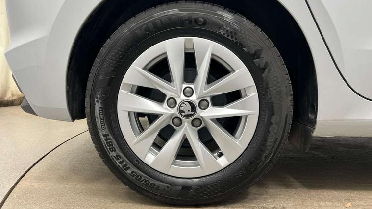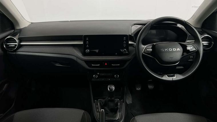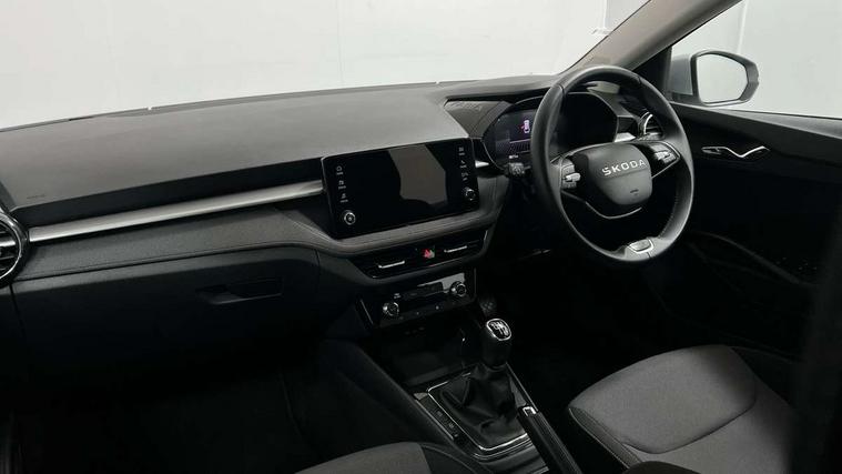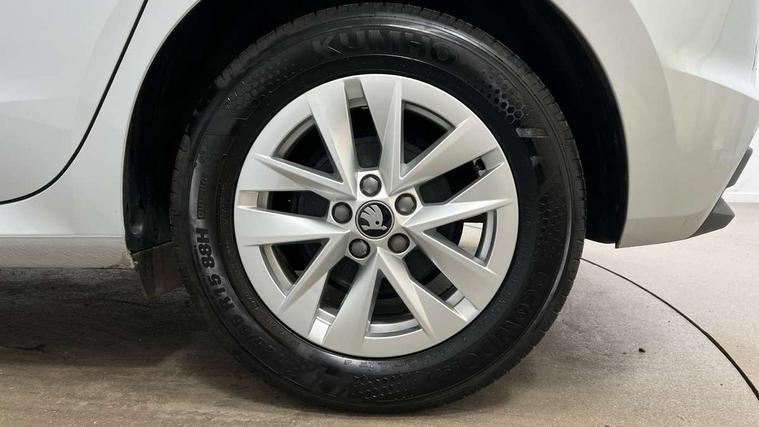 8" Digital instrument display, Advanced driver attention and drowsiness monitor, Bluetooth connection, Electromechanical power steering, Exterior temperature gauge, Service interval indicator, Traffic sign recognition, Wireless SmartLink for Apple CarPlay and Android Auto, 6 Speakers (4 in front and 2 in rear), 8.25" Skoda infotainment touchscreen display, Auxiliary socket for external MP3 player, DAB digital radio reception, Auto dimming rear view mirror, Body colour door mirrors, Body coloured bumpers, Door mirror integrated indicators, Front and rear electric windows, Front window wiper intermittent control, Headlight range control - Automatic, Ice scraper in fuel cap, LED 3rd brake light, LED daytime running lights with coming and leaving home feature, LED rear lights, Rear LED fog light, Rear side wing doors, Rear window wiper with washing nozzles, Roof mounted spoiler, SKODA tailgate lettering in chrome, Unique dark chrome design logo on alloy wheels, 2 reading lights in front and 2 reading lights in rear, 3 rear headrests, Backrest split and folding, Central console with removable cup holder and storage box, Chrome handbrake release button, Dual zone air conditioning with climatronic electronic control, Fabric upholstery, Front centre armrest, Gearshift knob/handle in leather, Grain satin black interior door handles, Hand brake lever handle in leather, Height adjustable front headrests, Height adjustable front seats, Height adjustable steering wheel, ISOFIX and TopTether anchorage points to the outer rear seats, ISOFIX and TopTether on the front passenger seat, Luggage compartment lighting, Manually adjustable lumbar support in front seats, Pollen filter, Rear seat bench unsplit, Single front passenger seat, Skoda lettering on steering wheel, Storm grey headlining, Sun visors with mirror and airbag label on passenger side, Textile floor mats, Ticket holder, Umbrella in drivers door, 3-point height adjustable front seats belts with pretensioner and force limiter, Automatic warning lights in case of crash, Driver and passengers airbag with switch off function, e-Call+, ESC including ABS, MSR, ASR, EDS, HBA and XDS, Front and rear seat belt warning, FRONT ASSIST (AEB City and AEB Inter Urban), Front side airbags, Head airbags, One tone horn, Pedestrian protection, Three rear 3-points safety seat belts with pretensioner and force limiter including stop function for outer rear seat belts, Tyre pressure monitoring system, Anti-theft alarm system including immobiliser, interior monitoring, backup horn, and towing protection, Central locking with radio remote control, interior controls, SAFE function and 2 foldable keys, Black painted air vents, Grain satin black central console cover, Metallic grey upper decorative trim, Satin black door and side trim panel in front, Textile Kota grey lower decorative inserts, Anti-theft wheel bolts protection, Super-low rolling resistance tyres,