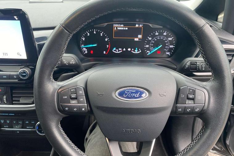 Bluetooth system, Driver alert system, Electric power steering, Ford SYNC 3 nav system, apple car play and android auto with voice control, Lane keep assist, SYNC Emergency Assistance, Traffic sign recognition, Trip computer, Auxiliary input socket, DAB with voice control, Steering wheel mounted controls, USB connection, Auto dimming rear view mirror, Auto high beam, Automatic headlights, Body colour bumpers, Body colour door handles, Body colour electric adjustable heated door mirrors, Body colour rear spoiler, Chrome beltline trim, Cornering front fog lights, Electric folding door mirrors with puddle lamps, Electric front windows/one touch facility, LED daytime running lights, LED rear lights, Privacy glass, Quickclear heated windscreen, Rear wiper, Tinted glass, Upper front grille chrome surround, 12V Accessory socket in centre console, 3 spoke leather steering wheel, 60/40 split folding rear seat, Adjustable head restraints, Air conditioning + Electric Auto Temperature Control (EATC), Ambient lighting, Boot carpet, Centre console with armrest, Chrome inner door handles, Cloth upholstery, Footwell illumination, Front and rear velour floor mats, Front map reading lights, Front seat and rear pockets, Illuminated cup holders, Illuminated glovebox, Leather gear knob, Leather trimmed handbrake handle, Load area light, Luxury woven headliner, Overhead console with sunglasses holder, Pollen filter, Rake/reach adjustable steering wheel, Rear centre head restraint, 3 point seatbelts on all rear seats, ABS+EBA, Curtain airbags, Driver and passenger airbags, Drivers knee airbag, ESP + traction control, Front passenger airbag deactivation, Front side airbags, Hill start assist, Seatbelt warning, Tyre pressure monitoring system, Immobiliser, MyKey system, Remote central locking, Thatcham Cat.1 alarm,