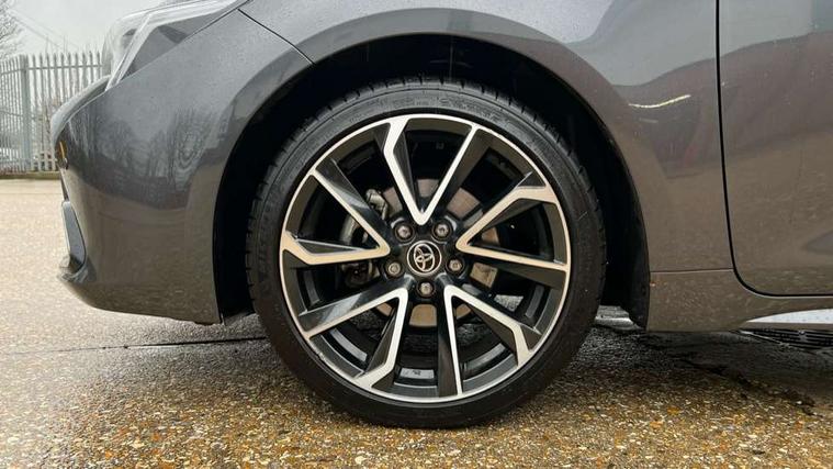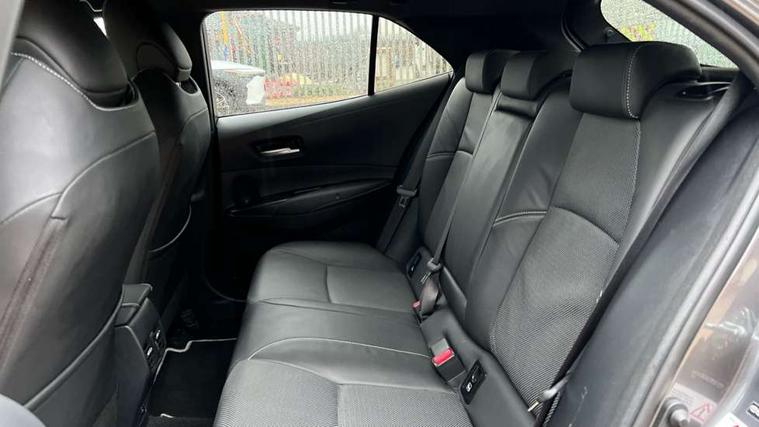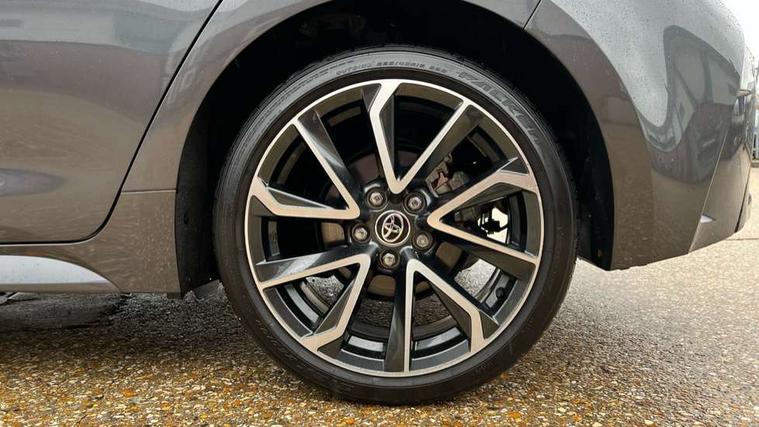 10.5" Multimedia display screen, Attention assist, Blind spot monitor and safe exit assist, Bluetooth telephone connectivity, Connected car functionality upgrade, tracker, remote status and e-care, Drive mode select (Eco, Normal), E-call, Electrically assisted power steering, EV drive indicator, Front and rear parking sensors with auto brake, Full Digital 12.3" TFT Digital Combimeter, Head up Display, Key reminder warning, Lane Departure Alert (LDA) switch on steering wheel, Memory on adjustable speed limiter, MyT connected services, Proactive driving assist (PDA), Rear cross traffic alert, Reversing camera, Smart entry and push button start, Smartphone integration with Apple CarPlay and wired android auto, Tailgate, Toyota remote services, Toyota smart connect navigation, Wireless charger, Gasoline particulate filter, Vehicle Stability Control (VSC), 6 speakers, AM/FM radio, DAB Digital radio, Front USB-C in centre console, Front USB-C in dashboard, Rear USB-C device charger, Smart voice assist/ Voice recognition, USB and Aux in connectors + 12V front outlet, Adaptive high beam system (AHS), Anti-jam protection on power windows, Auto headlight levelling system, Auto up and down function on all power windows, Automatic folding mirrors, Automatic headlights with high beam assist, Black centre and side air vents, Black metallic meshed front grille, Black toyota logo in front, Body coloured bumpers, Body coloured door mirrors, Body coloured front spoiler, Body coloured outside door handles, COROLLA alloy door scuff plates, Electrochromatic mirror, Follow me home headlights, LED daytime running lights, LED front fog lights, LED High mounted stop light, LED multi beam headlights, LED rear combi lights with LED lightguide, Noise reduction layer on windscreen, Piano black diffuser, Power adjustable heated door mirrors, Power front windows, Power rear windows, Privacy glass with UV filter, Rain sensing wipers, Rear bumper decoration with chrome plated inserts, Rear side wing doors, Rear under guard with chrome ornament, Rear window defogger, Rear window wiper, Reverse tilting door mirrors, Roof spoiler, Satin chrome insert on front air vents, Satin chrome insert on front door assist grips, Satin chrome inserts on rear passenger air vents, Shark fin antenna, Tailgate release with push button, Time adjustment on intermittent wiper, Turning signal integrated indicators in door mirrors, Unique grille pattern, Unique lower skirt, Unique side rocker with black insert, UV-filter on driver and passenger windows, 2 Shopping bag hooks in luggage compartment, 3 rear headrests, 3 seat bench in 2nd row, 3 spoke leather steering wheel with satin insert + gear knob, 4 tie down hooks in luggage compartment, 60/40 split folding rear seat, Adaptive cruise control (ACC) switch on steering wheel, Adjustable speed limiter switch on steering wheel, Audio, multimedia and telephone switches on steering wheel, Black armrest on centre console box, Black gear shift console, Boot light, Centre room light, Driver and front passenger personal light, Driver and passenger assist grip, Driver and passenger seatback pockets, Driver and passenger sun visor with mirror and light, Dual zone automatic air conditioning with ECO mode switch, Front and rear cup and bottle holders, Front door pockets, Front head restraints, Front passenger seat, Front sliding synthetic leather armrest, Heated seats, Illuminated entry system in room lamp, ISOFIX seat fixing (2 fixings on rear outer seats), Leather gear shift with satin chrome on gear shift console, Manual height adjustable for driver and front passenger seat, Manually tilt with sliding driver and front passenger seat, Parcel shelf, Perforated leather upholstery, Pollen filter, Power window switches with satin chrome inserts, Rear air conditioning, Rear armrest with 2 cupholders, Rear passenger coat hooks (2), Remote air conditioning, Satin chrome inside door handles, Satin chrome surround on heater control panel, Satin chrome surround on speedometer, Sliding armrest on centre console box, Slow opening glovebox with lights, Sports seats, Textile floor mats, Tilt/telescopic steering column, Voice recognition switch on steering wheel, Whiplash Injury Lessening (WIL) feature (active headrest) for seats, White ambient lighting on open tray and front cup holder, Toyota safety sense 3 pack - Corolla, 3x3 point rear seatbelts, Adjustable driver and front passenger seat belt extender to top anchor point, Anti lock braking system + Electronic brake force distribution, Brake assist function, Child locks on rear doors, Downhill Assist Control (DAC), Electronic parking brake, Emergency brake light signal (EBS), Front passenger airbag on/off switch, Front seatbelt reminder, HAC - Hill start assist control, Rear seat belt reminder, Seatbelt pretensioners and force limiters, Supplemental restraint system (SRS) 7 airbags - dual driver, dual side curtain, side impact and driver knee airbags, Traction control, Tyre pressure warning system, Acoustic vehicle alert system (AVAS), Alarm with motion sensor and immobilizer, Power passenger window lock, Remote central locking + deadlocks, Satin chrome dash trim, Soft touch texture on upper dashboard, Stitching on lower dashboard, Stitching on upper dashboard, 18" Dark grey machined face 5 double spoke alloy wheels, Tyre repair kit, Unique wheel finish with red wheel cap,