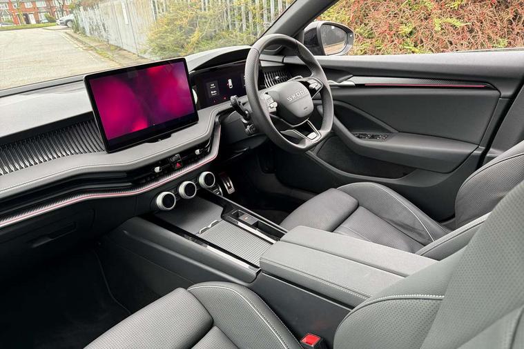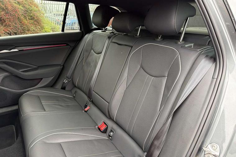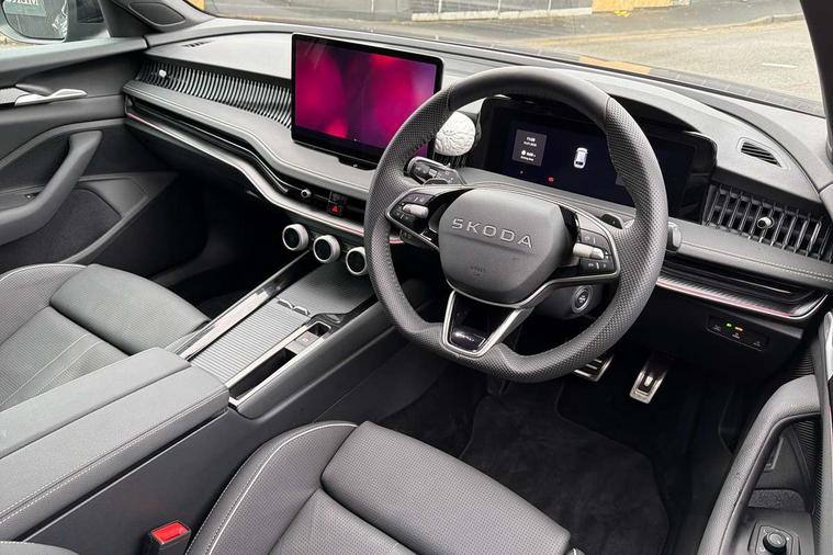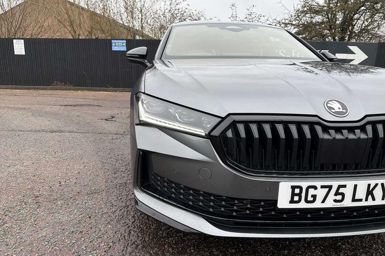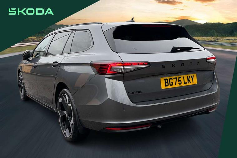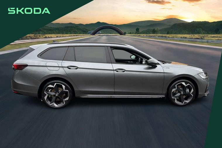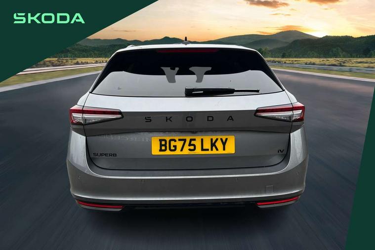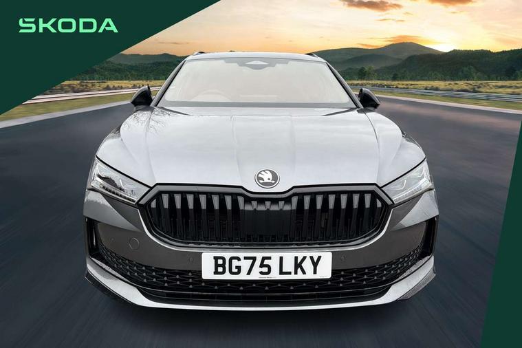 13" touchscreen display with satellite navigation, 4x USB-C ports (2x in front centre console and 2x in rear) (45W), Adaptive cruise control with speed assist, lane assist plus and traffic tram assist, Blind spot detection with door exit warning, Bluetooth system, CareConnect and Emergency Call, ChatGPT functionality, Drive mode selection, Driver fatigue sensor, Front assist with extended predictive pedestrian protection, Front cross traffic assist, PAS, Quick start all heating software functionality, Stop/start engine system, Traffic sign recognition, Turn assist with evasive assistance, Virtual Cockpit - 10.25" digital display, Voice control system, Washer for rear camera, Wireless charging for one smartphone (15W) with cooling function, Wireless smartlink apple carplay, SmartLink+ android auto, Dynamic chassis control plus with progressive dynamic steering, Mode 3 charging cable, DAB Digital radio, Display cleaner, FM radio connection, Web radio connection, Acoustic side windows and interior noise suppression, Backdrop lighting, Black exterior styling window and grille surrounds, Black roof rails, Body colour door handles, Dynamic range control with poor weather light and integrated fog light, Electrically adjustable, heated, folding and driver side auto-dimming door mirrors with memory function, integrated indicators and logo projection, Frameless auto-dimming rear view mirror with USB-C, Gloss black door mirrors, Ice scraper in fuel tank cap, LED 3rd brake light, Light assist with High beam control, Light assistant (coming/leaving home/tunnel light), Privacy glass, Rear fog lights (x2), Rear roof spoiler, Rear side wing doors, Rear windscreen wiper, Skoda lettering in black, Sportline badging, Sports bumpers, Windscreen wipers with rain sensor, 12V socket 1x centre console 1x boot, 14-way electrically adjustable, memory, front seats with 4-way pneumatic lumbar support, and extendable thigh support with smart comfort entry aid, 2x cargo elements in boot, 2x light in boot, 3 seat bench in 2nd row, 4x foldable bag hooks in boot, 60:40 Split folding rear seats, Aluminium pedals, Bottle holders in the front doors 1.5 litre bottle and rear 1.5 litre bottle, Cup holder in front with easy open mat, Front armrest with storage box, Front sports seats, Heated and ventilated front seats, Height adjustable front and rear head restraints, Illuminated glovebox, Interior lights with control switches, Isofix child seat fittings in outer rear and front passenger seats, LED front and rear reading lights, Single front passenger seat, Skoda lettering on steering wheel, Storage compartment with cover, Storage pockets on back of front seats, Sun visors with illuminated vanity mirrors, Ticket holder on A Pillar, Tri zone climate control, Umbrella in driver's door, Light and view package - Superb, Transport package - Superb Estate, 3 rear seatbelts, 8 Airbags - Front driver and passenger, front side driver and passenger, centre, curtain front and rear, drivers knee, Crew protect assist, Driver and passenger seatbelts with warning light, Electronic parking brake, ESC including ABS, EBV, MSR, ASR, EDS, HBA, DSR, RBS, CBC, multi-collision brake (MKB) and Auto hold, Hill hold assist, Power operated child lock in rear doors, Alarm with interior monitoring tilt sensor and back up horn, Backrest remote release from trunk, Electronic engine immobiliser, Keyless start/stop, Remote central locking with SAFE system, Third key, Walk away locking, Decorative front door sills, 19" Torcular polished black alloy wheels with anti theft wheel bolts, Tyre repair kit,