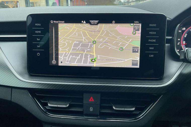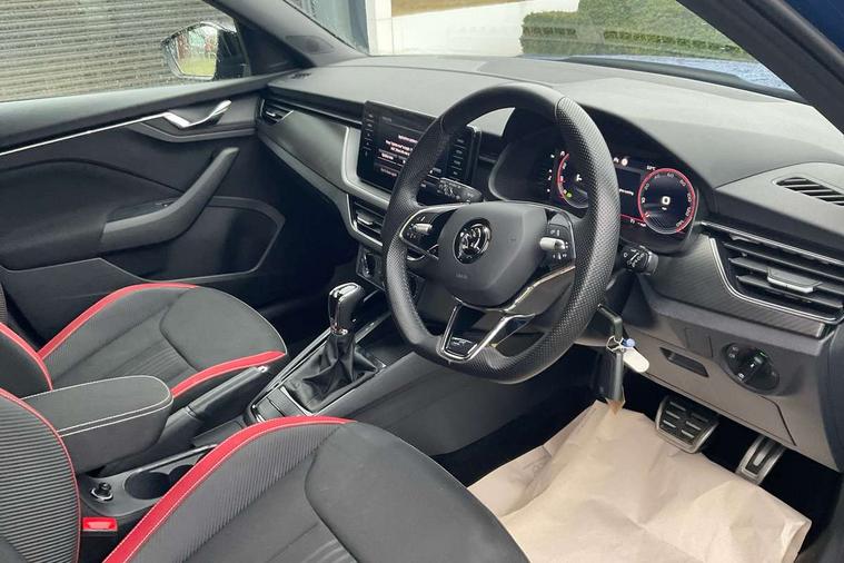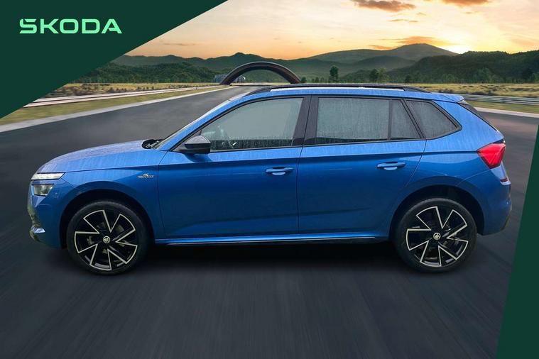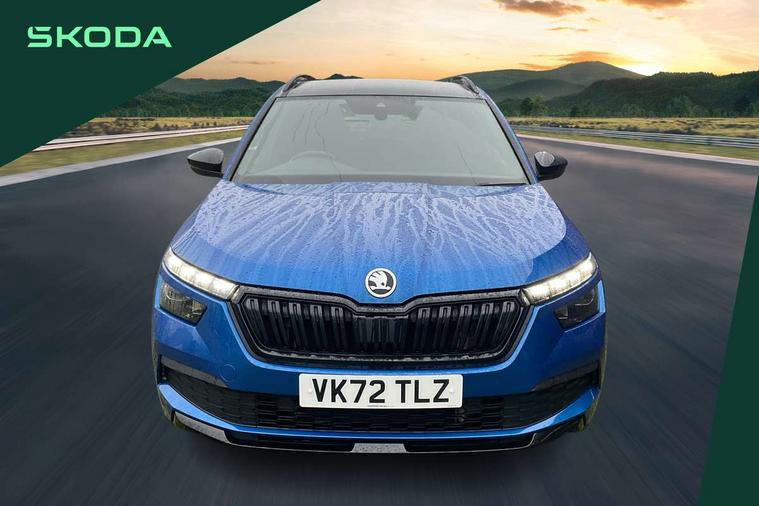 Amundsen satellite navigation with 9.2" glass colour touchscreen display, web radio, voice control and traffic sign recognition, Bluetooth system, E-call, Front assist system, Gesture control, PAS, Service indicator, Speed limiter, Wireless SmartLink for apple car play, android auto and mirrorlink, 8 Speakers, Auxiliary input socket, DAB Digital radio, Black door mirrors, Black radiator grille, Black rear diffuser, Body colour bumpers, Body colour door handles, Body colour roof spoiler, Boot lettering in black, Chrome grille surround, Dimming rear view mirror with black surround, Electrically adjustable and heated door mirrors, Fixed panoramic sunroof with black roof rails, Front and rear electric windows, Front sport bumper, Full LED headlights with adaptive front light system and front cornering fog lights, Headlight range control, Heated rear window, High functionality rear led lights with dynamic indicators, KAMIQ Door sills, LED daytime running lights, LED third brake light, Light sensors, Monte carlo plaque, Privacy glass, Rain sensor, Rear fog lights, Rear side wing doors, Rear wiper, 12V Accessory socket in centre console, 3 seat bench in 2nd row, Aluminium pedals, Black ceiling for black/beige interior, Black roof lining, Chrome inner door handles, Cloth upholstery, Front head restraints, Glove compartment with illumination, Ice scraper, Isofix child seat fittings on outer rear seats, ISOFIX on front passenger seat, Leather gear lever, Manual lumbar support for front seats, Rake/reach adjustable steering wheel, Reading lights, Single front passenger seat, Sports seats, Sun visors with illumination on front passenger, Textile floor mats, Third rear headrest, Top tether for front passenger seat, Umbrella in driver's door, 3x3 point rear seatbelts, Airbags - driver and front passenger, ESP, Front passenger airbag deactivation switch, Front side airbags with curtain airbags, Hill hold control, Manual parking brake, Manual rear child locks, One tone horn, Rear disc brakes, Seatbelt reminder for driver an co-driver, Traction control, Tyre pressure monitor, Anti-theft alarm system with interior monitoring, backup horn, towing protection and remote central locking with SAFE system, Anti-theft wheel bolts, Electronic engine immobilizer, Chrome air vent surrounds, 18" Vega alloy wheels in black,