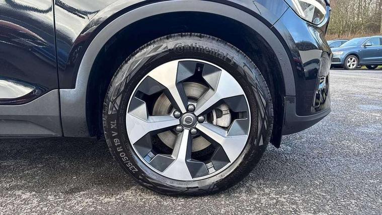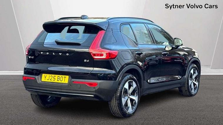 12.3" Progressive Driver Display, 9" centre console portrait touch screen, Adjustable steering wheel force, Android auto (Wired), Apple carplay (wired), Bluetooth handsfree system, Driver alert control, Driver assistance (pilot assist and adaptive cruise control), Driver awareness - Blind spot information system with steer assist, cross traffic alert with autobrake and rear collision warning and mitigation, E-call, Front and rear parking sensors, Front park assist, Google automotive services - Enabled entertainment apps, navigation with google maps, voice recognition with google assistant, Hands free power tailgate, Intelligent speed assistance, Lane keeping aid, Oncoming Lane Mitigation, Speed sensitive steering, Volvo cars services with app - Driving journal, emergency and breakdown call, engine remote start, remote door locking/unlocking and vehicle dashboard, Wireless/Inductive Mobile Phone Charging, Automatic transmission with start/stop and manual change functions, Dynamic chassis, DAB Digital radio, Steering wheel mounted remote controls, Adaptive brake lights with high level LED brake lights, Auto dimming feature for exterior door mirrors, Auto dimming interior mirror, Auto folding and heated power door mirrors, Automatic headlamp levelling, Automatic LED Headlights + Active high beam incorporating daytime running lights, Front aluminium tread plates, Front and rear electric windows, High gloss black front and rear skid plate, High gloss black front bumper deco, High gloss black mesh front grille with high gloss black surround, High gloss black window trim, Home safe and approach lighting, Integrated roof rails in high gloss black, LED front fog lights, Puddle lights, Rain sensor with automatic windscreen wiper activation, Rear side wing doors, Rear wiper, Roof antenna, Roof spoiler, Visible VIN plate, 12V socket in front tunnel console and luggage compartment, 2-Zone electronic climate control with CleanZone air quality system and pollen filter, 3 seat bench in 2nd row, 3 Spoke tailored steering wheel with chrome trim, 60/40 versatile split folding rear seat, Centre console cupholders and storage, Charcoal carpet and floor mats, Charcoal headlining, Connect suede textile/microtech upholstery, Flexible load floor and grocery bag holder, Front headrests, Front seat cushion extensions, Glovebox bag hook, Heated front seats, Height adjustable passenger seat, Height/reach adjustable steering column, High gloss centre tunnel deco, High level illumination - Front door pocket, front side step (under door), tailgate, instrument panel, front door inlay, rear courtesy&reading lights, Integrated waste bin, Isofix attachments on outer rear seats, Load cover, Load protection net, Mid level illumination - Front footwell, luggage & glovebox compartment, front cabin courtesy & reading lights, illuminated vanity mirrors+ticket holder, Multi directional lumbar support for driver and passenger seat, Power driver seat with memory + exterior mirrors memory, Rear armrest with cupholders, Rear headrests, Single front passenger seat, Underfloor luggage compartment storage, Climate pack without heated front seats - XC40, 3x3 point rear seatbelts, City safety with steering support with Pedestrian + cyclist + front collision warning with full auto brake and rear auto brake, Driver and passenger airbags, Drivers knee airbag, Electronic parking brake with auto hold, First aid kit, Front and outer rear seatbelt reminder and pretensioners, Front seats SIPS airbags, Hill descent control - Off-road drive mode, Hill start assist, IC (Inflatable Curtains) - Full Length, Passenger airbag cut-off device, Power child locks on rear doors, Road sign information display, Run off Road Protection, SIPS (Side Impact Protection System), Slippery road and hazard light alert, Stability and Traction Control with Spin control, Engine Drag Control and Corner Traction Control, Tyre pressure monitoring system, Vehicle deceleration control with Anti-lock Brake System, Electronic Brake Distribution and Emergency Brake Assist, Warning triangle, WHIPS whiplash protection system - front, 2 x Key integrated remote control central locking including with deadlocking system and auto open/close windows, Anti-theft alarm including immobiliser/volume sensor + level sensor, Keyless drive includes keyless entry and keyless start, Locking wheel nuts,