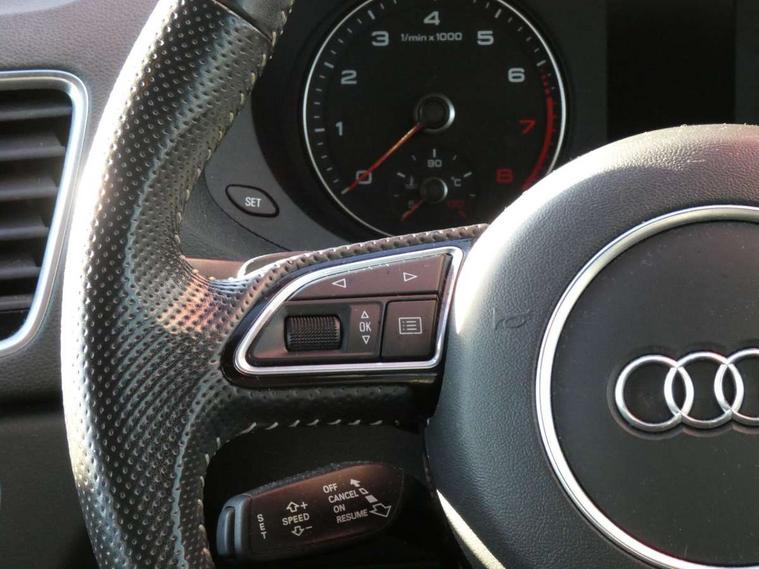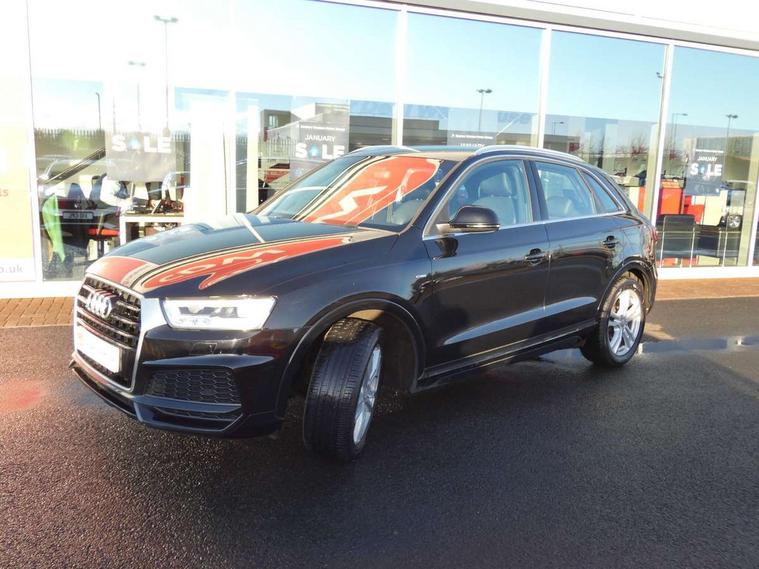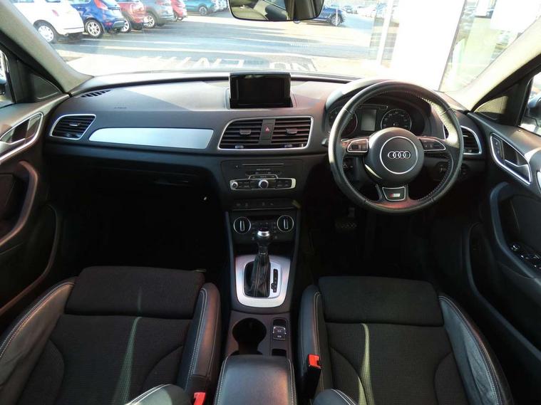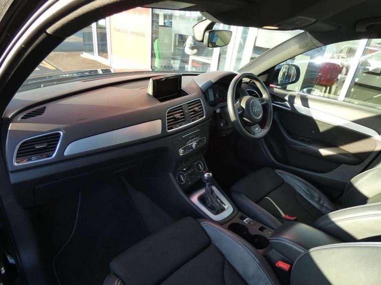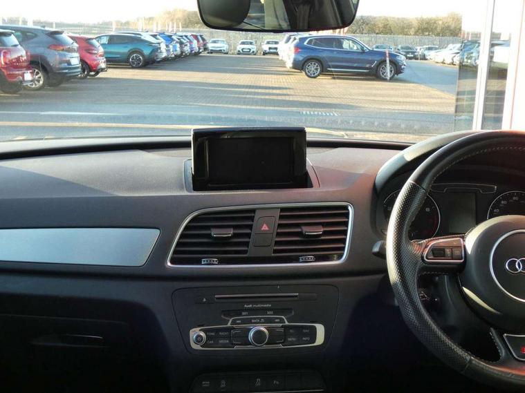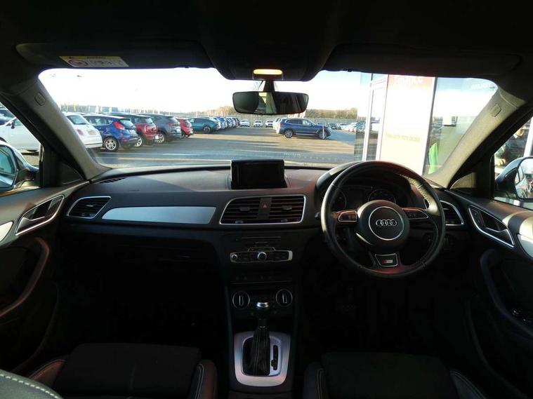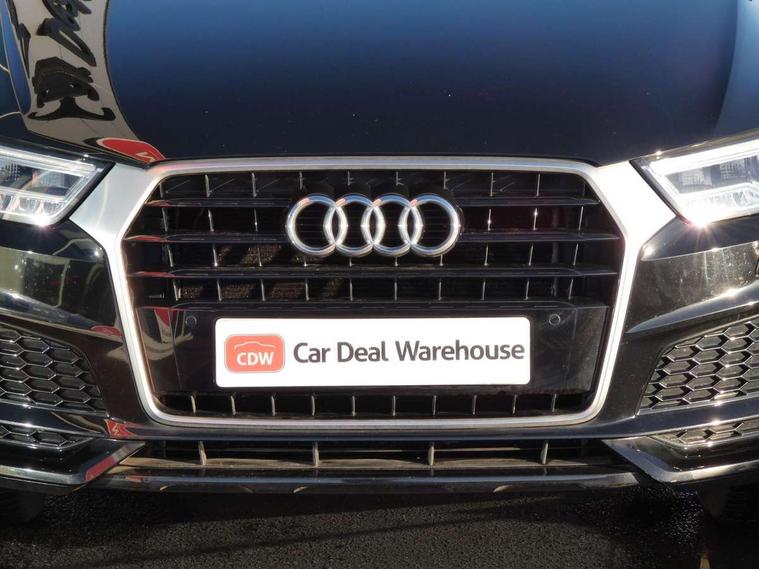 6.5" colour display screen, Audi drive select, Cruise control, Electro-mechanical PAS, Low washer fluid indicator, MMI - Multi Media Interface control system, On board computer, Remote electric boot opening/closing, Service interval indicator, Voice control system, Dynamic suspension, Audi music interface, DAB digital radio module, Acoustic windscreen, Aluminium window surround, Auto dimming rear view mirror, Body colour door mirrors, Body coloured bumpers, Chrome exhaust tailpipe, Coming home function, Door mirror integrated indicators, Front and rear electric windows, Front fog lights, Front lip spoiler, Heated windscreen washer jets, LED daytime running lights, LED headlights with headlight washers, LED rear lights, Light and rain sensor for auto activation of lights and windscreen wipers, Loading sill protector in stainless steel, Rear diffuser with platinum insert, Rear wiper, S Line body styling, Sunband for windscreen, 12V socket in rear centre console, 3 spoke multi-function Q design steering wheel with paddle shift, Aluminium door sill trims, Black cloth headlining, Door sill trim strips, Dual zone climate control, Electric front lumbar adjustment, Front and rear headrests, Front and rear velour floor mats, Front centre armrest with storage compartment and angle adjustment, Front sports seats, Height/reach adjust steering wheel, ISOFIX on front passenger and rear outer seats, Jack and tool kit, Perforated leather gearknob, Retractable luggage cover, Split fold rear seat, Storage compartment and 12V socket, Under floor storage in luggage area, 3x3 point rear seatbelts, ABS+Electronic Brake force Distribution, Curtain airbags, Driver and passenger airbags, Driver and passenger side airbags, EDL + ASR, Electrically operated child locks on rear doors, Electromechanical parking brake, ESP, First aid kit, Front passenger airbag deactivation, Head airbags, Seatbelt warning light, Tyre pressure monitoring system, Warning triangle, Locking wheel bolts, Remote central locking, Thatcham category 1 alarm + immobiliser, Matt brushed aluminium fascia and door trim inlays,