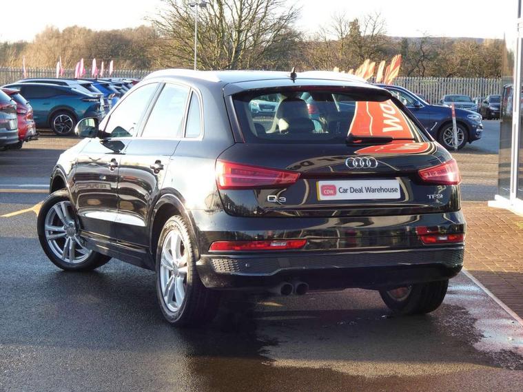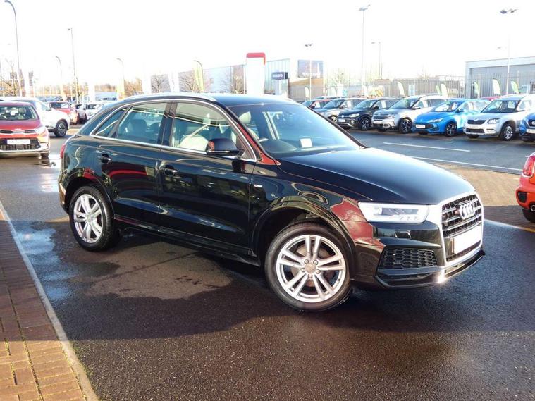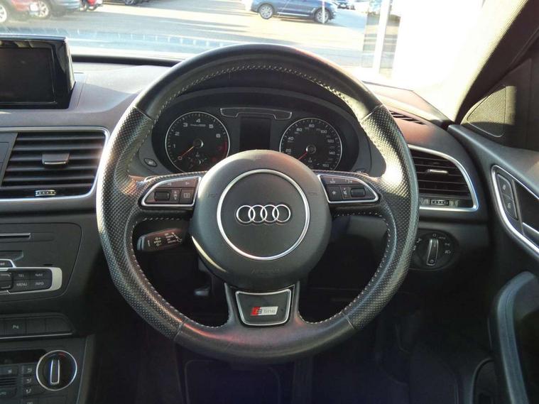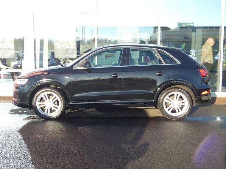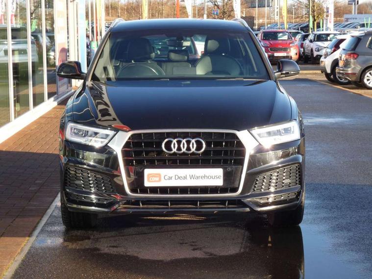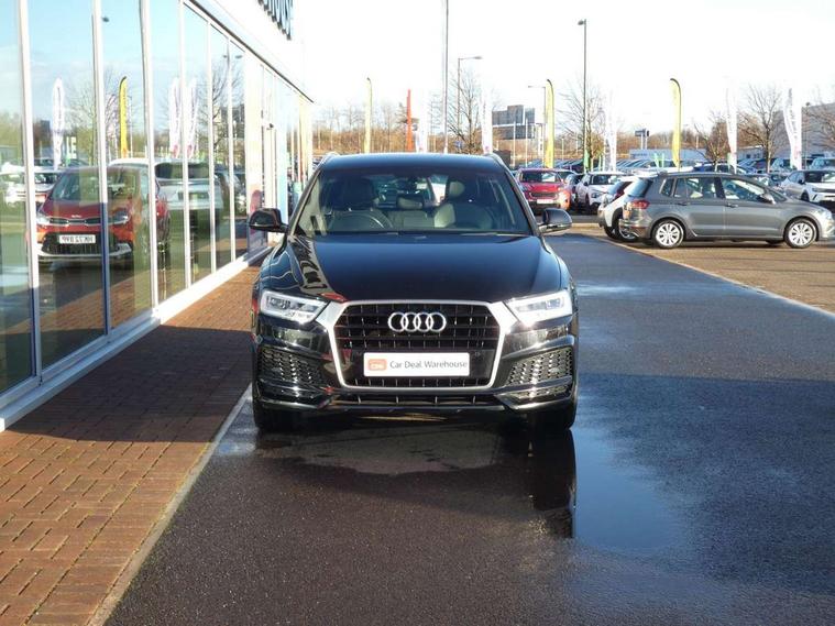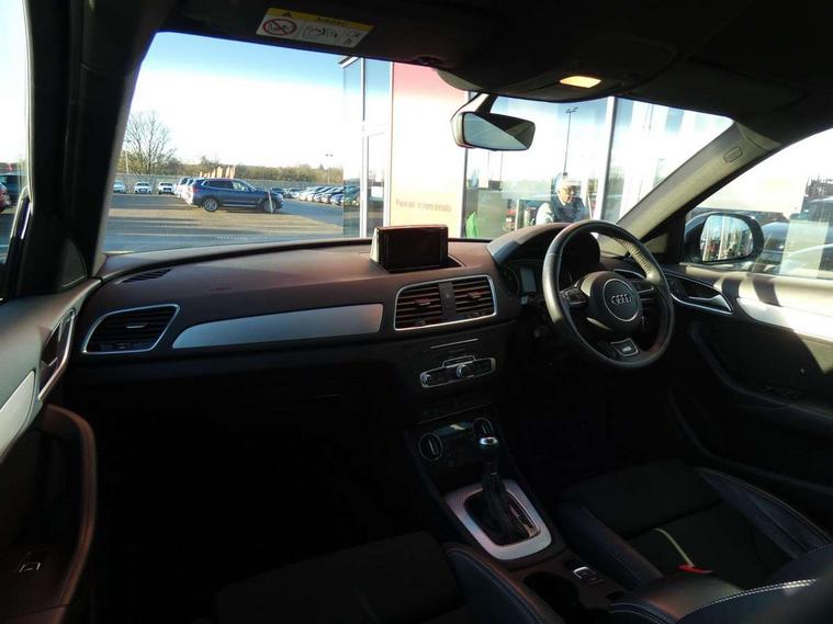 6.5" colour display screen, Audi drive select, Cruise control, Electro-mechanical PAS, Low washer fluid indicator, MMI - Multi Media Interface control system, On board computer, Remote electric boot opening/closing, Service interval indicator, Voice control system, Dynamic suspension, Audi music interface, DAB digital radio module, Acoustic windscreen, Aluminium window surround, Auto dimming rear view mirror, Body colour door mirrors, Body coloured bumpers, Chrome exhaust tailpipe, Coming home function, Door mirror integrated indicators, Front and rear electric windows, Front fog lights, Front lip spoiler, Heated windscreen washer jets, LED daytime running lights, LED headlights with headlight washers, LED rear lights, Light and rain sensor for auto activation of lights and windscreen wipers, Loading sill protector in stainless steel, Rear diffuser with platinum insert, Rear wiper, S Line body styling, Sunband for windscreen, 12V socket in rear centre console, 3 spoke multi-function Q design steering wheel with paddle shift, Aluminium door sill trims, Black cloth headlining, Door sill trim strips, Dual zone climate control, Electric front lumbar adjustment, Front and rear headrests, Front and rear velour floor mats, Front centre armrest with storage compartment and angle adjustment, Front sports seats, Height/reach adjust steering wheel, ISOFIX on front passenger and rear outer seats, Jack and tool kit, Perforated leather gearknob, Retractable luggage cover, Split fold rear seat, Storage compartment and 12V socket, Under floor storage in luggage area, 3x3 point rear seatbelts, ABS+Electronic Brake force Distribution, Curtain airbags, Driver and passenger airbags, Driver and passenger side airbags, EDL + ASR, Electrically operated child locks on rear doors, Electromechanical parking brake, ESP, First aid kit, Front passenger airbag deactivation, Head airbags, Seatbelt warning light, Tyre pressure monitoring system, Warning triangle, Locking wheel bolts, Remote central locking, Thatcham category 1 alarm + immobiliser, Matt brushed aluminium fascia and door trim inlays,