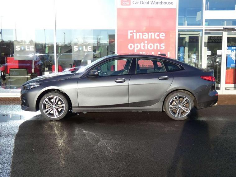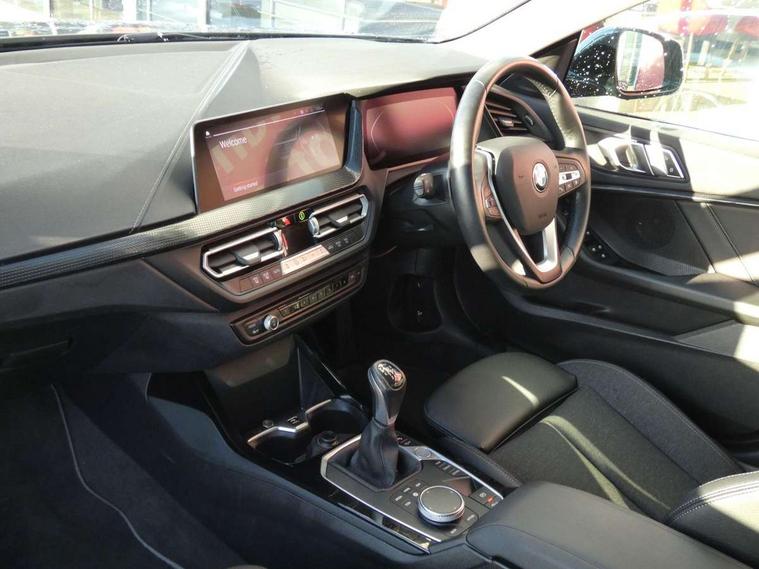 Active guard plus, Attentiveness assist, Auto start-stop, Bluetooth hands free facility with USB audio interface + WiFi interface for wireless connection of mobile terminal devices + audio streaming, BMW Intelligent Personal Assistant, BMW Live Cockpit Professional with 10.25" high resolution instrument and control display, BMW Online services, BMW operating system with 7.0 mid interface, BMW Teleservices, Check Control warning system for monitoring of lights and door/luggage compartment open warning, Cruise control with braking function, Electric Power Steering (EPS) with Servotronic, iDrive controller with touch function and 7 short cut favourite buttons on centre console, Integrated navigation data with map data via USB +features such as 3D landmarks and micro city models, Integrated owners handbook, Intelligent voice assistant, Lane departure warning system, On board computer - average speed+fuel consumption, service interval, clock/date, odometer/trip meter, outside temperature display and ice warning, Optimum shift indicator, Personal Profile, Pull away assistant, Speed limiting function, 6 speed manual transmission, Aluminium lightweight construction, Balancer shaft, Double VANOS, Drive performance control with ECO PRO comfort + sport mode, Electronic differential lock, High precision injection, Performance Control, Petrol Particulate Filter, Suspension with twin tube gasfilled shock absorbers, Anti roll bars, single joint front axle kinematics to minimise drive + Rigidly mount rear subframe, VALVETRONIC engine management, 2x USB Type C ports (for charging and data transfer), 4G LTE Connectivity with hard wied 4G network sim card, DAB digital radio, MP3 players and RDS double tuner, Stereo 6 speaker system with 2 mid range speakers in the front and rear door trims + 2 central bass speakers underneath the front seats, Active aerodynamics, Automatically dimming rear view mirror, Body colour door handles, Body colour mirror caps, Chrome exhaust single tailpipe, round, Direction indicator side lights integrated exterior mirrors, Electric windows - front and rear, with open/close fingertip control and trap release, Fading support, Follow me home headlights, Front and rear bumper system with replaceable deformation elements, Front bumper in Body colour with exclusive Sport air inlets finished in High gloss Black, Front door sill finishers in black plastic with BMW designation, Heated, electrically adjustable exterior mirror aspheric on driver side, convex on passenger side, High gloss black B pillar finish, High gloss shadow line exterior trim, High level third brake light, Kidney grille with 14 chrome high gloss black vertical bars, LED daytime running lights, LED front fog lights, Lightweight engineering, Model designation on right side of tailgate, Preparation for high beam assistant, Rain sensor with automatic headlight activation, Rear bumper in Body colour with exclusive Sport design elements finished in High gloss Black, Rear fog lights, Reversing light in rear light cluster, Welcome lighting, 12V power socket in centre console, 2 cupholders in front centre console, 3 rear seat head restraints, 3 spoke sports leather steering wheel and black leather rim with black stitching + decorative finisher in pearl chrome, Anthracite finished floor mats with contrasting surround, Automatic two zone climate control air conditioning, Child seat ISOFIX attachment for two outer rear seats and front passenger seat with anchorage points, Conditioned based service, Front and rear side armrests integrated into door trim, Front armrest foldable with integrated storage compartment, Front centre interior light over interior mirror and rear centre automatic interior light when door is opened/ignition switched off or via remote key, Front head restraints, Front sports seats with electric side bolster adjustment, Glove compartment, Glovebox with light, Luggage compartment lighting, Manually adjustment steering wheel column, Multi-function controls for steering wheel, Sun visors with vanity mirrors and insert tab, Through loading system with 40/20/40 split folding rear seat, Two lashing eyes, Connected pack professional - 2 Series Gran Coupe, Extended storage pack - 2 Series Gran Coupe, 2 tone horn, Airbag - Front driver and passenger, front and rear head, front side, curtain head protection, manual deactivation of front passenger airbag possible, Anti lock braking system (ABS) with cornering brake control, BMW emergency call, Brake drying, Braking readiness, City braking function, Crash sensor activating of airbags, Unlocking doors, hazard warning lights, interior light, safety battery terminal, Dynamic stability control + (DSC+), Dynamic Traction Control - DTC, Electrically operated hand brake, Rear brake discs, Rear child proof door locks, Seat belt security check for driver and front passenger, Seatbelt warning, Side impact protection, Three point seat belts on all seats including front belt stopper, pyrotechnic belt tensioners and belt force limiters, Trailer stability control, Tyre pressure monitoring system, Ventilated front disc brakes, Warning triangle and first aid kit, Central locking switch for all doors, fuel filler cap and luggage compartment, Deadlocking function system to all doors, Drive away locking system on all doors and luggage compartment, Locking wheel bolts, Start/Stop button (illuminated) in centre console with keyless engine start and Auto Start-Stop deactivation button, Thatcham Cat.1 alarm and immobiliser, Two remote control key with integrated key - one button for open and close doors/fuel flap/tailgate and separate button for unlock luggage compartment, Contrast stitching on instrument panel, Illuminated Berlin interior trim, Reduced rolling resistance tyres,