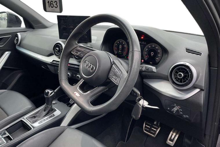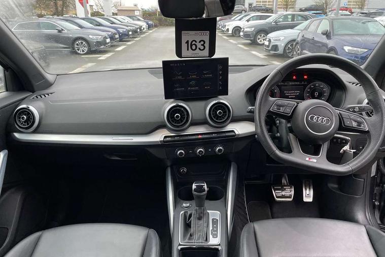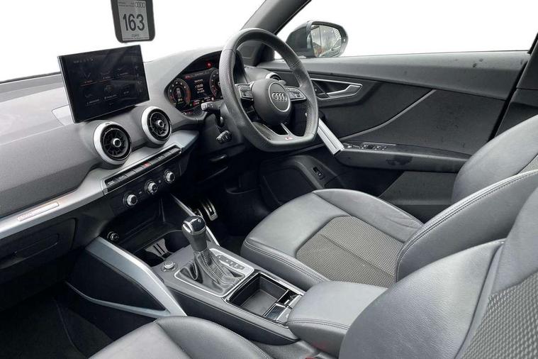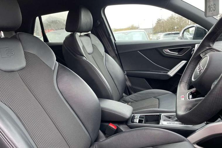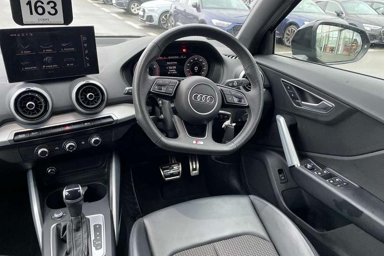 3D map display, Audi connect navigation and infotainment includes innovative services, Audi connect remote and control connects your vehicle to your smartphone, Audi drive select: S tronic - power steering assistance + engine + gearshift (modes: comfort, auto, dynamic, efficiency, individual), Audi smartphone interface - Apple carplay/Android Auto, USB connect, 2xSDXC card readers, voice control for navi, telephone, music and 3rd party apps, Audi virtual cockpit, Automatic start/stop system with recuperation, Bluetooth interface includes bluetooth audio streaming, Cruise control, Distraction and Fatigue warning, E-call, Jukebox hard drive memory for music (10GB), Lane departure warning, MMI navigation plus with 8.8" touchscreen, Natural voice recognition, Power operated tailgate, Progressive steering, Rear parking sensors, Sport suspension, 6 passive loudspeakers, DAB Digital radio, USB type C port, Audi beam, Auto dimming rear view mirror, Black window trims, Bumper in full body colour paint finish, Electrically adjustable, folding, auto dimming and heated door mirrors with integrated LED side indicators, Front windscreen with grey tinted sunband, LED daytime running lights, LED headlights with dipped beam, high beam, position lights, indicators, LED rear lights, LED third brake light, Privacy glass - dark tinted rear and rear side windows from B-pillar backwards, Rear side wing doors, Rear wiper, Variable front intermittent wipers, Wheel arch trims in manhattan grey, 12V socket in front, 3 seat bench in 2nd row, 3 spoke flat bottomed multi-function leather sport steering wheel with gear shift paddles, 4-way electric lumbar support for front seats including manual seat height adjustment for both front seats, 60/40 split folding rear seat bench, Black carpets, Black cloth headlining, Front and rear head restraints, Front centre armrest, Front sport seats, Front/rear floor mats, Height/reach adjust steering wheel, Illuminated door sill trims with S logo, ISOFIX child seat mounting in front passenger and rear outer seats, Manual air conditioning, Single front passenger seat, Stainless steel pedals, Black styling pack - Q2, 3x3 point rear seatbelts, 6 airbags - Front, curtain and front side airbags, Electromechanical parking brake, Electronic stabilisation control including ABS, ASR and EDL, Front passenger airbag deactivation, Hill hold assist, Pre-sense front with pedestrian recognition, Seatbelt monitoring, Tyre pressure warning light with visual and acoustic warning, Warning triangle and first aid kit, Anti theft alarm, Anti theft wheel bolts, Electronically operated child locks, Remote central door locking, Aluminium interior element, Black dashboard, Gloss black centre console, Matt brushed aluminium trim inlays, Tool kit,