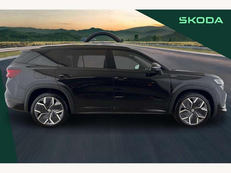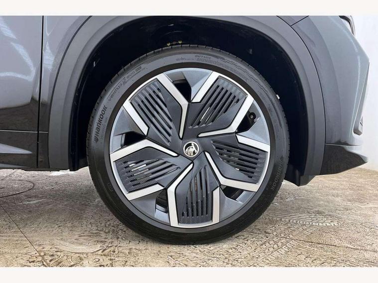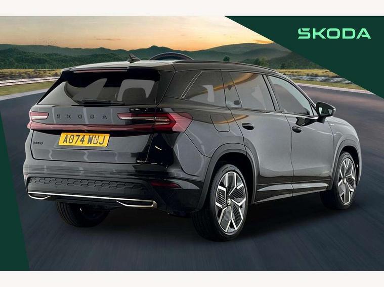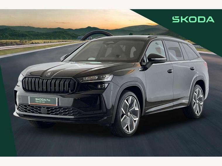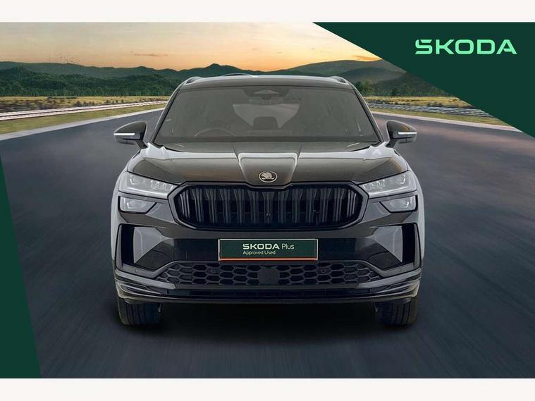 13" satellite navigation touchscreen display, Blind spot detection with door exit warning, Bluetooth system, ChatGPT functionality, Driver alert with fatigue sensor, Driver drowsiness alert system, Dry display cleaner, e call+, Front cross traffic assist, Lane assist, PAS, Rear traffic assist, Tailgate unlocking from outside, Traffic sign recognition, USB C Port x 2 in front centre console, Virtual Cockpit - 10.25" digital display, Voice control system, Wireless charging for two smartphones (15W) with cooling function, Wireless SmartLink for Apple CarPlay and Android Auto, Stop/start function, 2x USB-C in the rear, DAB Digital radio, Aero front windscreen wipers with intermittent function, Auto dimming rear view mirror, AWL (all weather lighting) and all weather light with cornering function, Black diffuser and decorative tailpipe with a unique dark chrome finish, Black roof rails, Black sports styling including front grille and window surrounds, Black wheel arch surrounds, Body colour door handles, Cornering light and poor weather light, Electric folding /adjustable/separted heated/folding door mirrors, auto dimming with boarding sports and memory function, Electric front and rear windows, Front and rear sports bumpers including lower rear chrome strip, Gloss black door mirrors, Heat insulating glass in windshield, Heated rear window, Ice scraper in fuel tank cap, Invisible tailpipe, LED daytime running lights, LED third brake light in rear spoiler, Light assistant with automatic headlight control and coming home feature, Logo projection in door mirrors, Privacy glass, Rear side wing doors, Rear spoiler, Rear window wiper, Red decorative strip between rear LED lights, Safety reflectors on front and rear doors, Sportline badge on front fenders, Tailgate lettering in Black, Unique dark chrome design logo on alloy wheels, Window control switches with black trim, Windscreen wipers with rain sensor, Without engine designation, 1.5l bottle holder points in all door, 12V socket in boot, 1x centre rear reading light, 2 seat bench in 3rd row, 3 configurable smart dials with 32mm coloured display, 3 seat bench in 2nd row, 4 foldable roof handles with rear coat hooks, Aluminium pedals, Ambient interior lighting - Dashboard, front-door stowage compartments, front and rear door panels and footwell lighting, Automatic gear selector on steering wheel, Chrome interior door handles, Driver/front passenger reading lights, Fabric headlining, Fixed bench 40:60:40 split folding backrests, Front and rear floor mats, Front centre armrest with jumbo box storage compartment, cup holder and 12V socket, Front courtesy lights, Front sports comfort seats, Height adjustable front headrests, Interior black decorative trims, Isofix child seat fittings in outer middle row rear seats and front passenger with top tether, Manually adjustable steering column, Pollen filter, Rear centre armrest with cupholders, Rear seat boot backrest release, Retractable luggage compartment cover, Single front passenger seat, Skoda lettering on steering wheel, Sliding trunk cover, Small Bags on the inner sides of the front backrests, Storage pocket including mobile phone pockets on the backs of the front seats, Sunvisors with illuminated vanity mirrors, Three rear height adjustable headrests, Ticket holder on A Pillar, Tri zone climate control, Umbrella in door panel x1 made from sustainable materials, Upper and lower glovebox with card holder and coin compartment, USB C port by rear view mirror for charging only (15W), Acoustic package - Kodiaq, Performance package - Kodiaq, Sportline design selection pack - Kodiaq, Auto door release and activation of warning lights in the event of an accident, Driver and front passenger airbag with knee airbag and front passenger airbag deactivation, Electric child locks, Electronic parking brake, ESC (incl. ABS+EMD+MSR+ASR+EDL+HBA+DSR+RBS+ESBS+MCB+TSA+XDS), Front assist with braking reaction to vehicles, pedestrians and cyclists, Front disc brakes, Fuel cut off safety device, Height adjustable front 3 point seatbelts + pretensioners, Hill hold control, Junction assist with automatic emergency braking, Rear disc brakes, Safety vest holder in door, Seat belt reminder for all seats, Three point rear seat belts, Two tone horn, Tyre pressure monitor, Alarm with interior monitoring and tilt sensor with safe function, Anti-theft wheel bolts, Immobiliser, Remote central locking with 2 keys, 20" Rila anthacite polished alloy wheel with black matte aero covers, Breakdown kit,