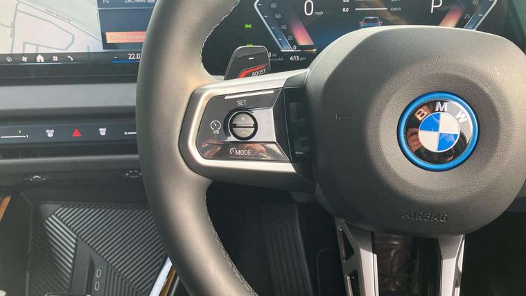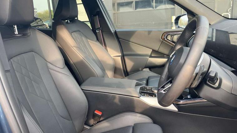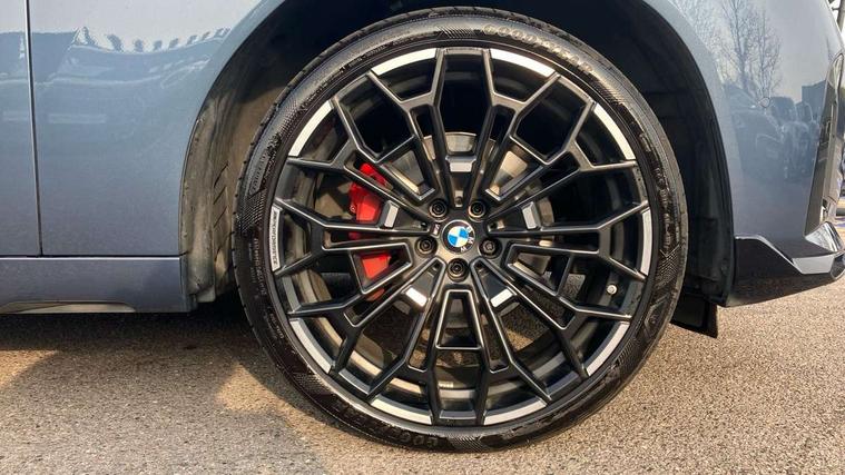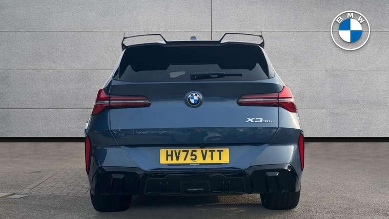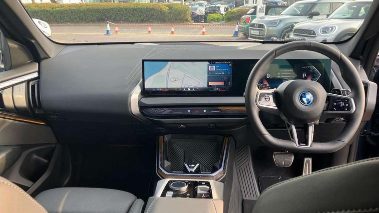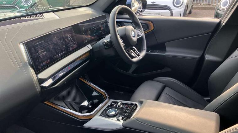 Active guard professional, Attentiveness assist, Automatic operation of tailgate, BMW ConnectedDrive online services, BMW Iconic sounds electric, BMW iDrive, BMW Live cockpit plus, BMW Online services, BMW Teleservices, Brake pad wear indicator, Condition based service, Cruise control with brake function + speed limiter, Drive off assistant, Driving Assistant Plus Preparation, Flat tyre monitor, Language version English, My Mode - Personal, Efficient, Sport, Relax, Expressive, Parking assistant, Reversing assist camera, Servotronic system, Variable sport steering, Dynamic stability control, eDrive exterior sound, Fast charging cable professional mode 3 for public charging, Multiple control arm rear axle, Steptronic transmission with gearshift paddles, Two-joint strut-type front axle with tension strut, DAB tuner, Personal eSim, 4 tailpipe tips, B-pillar trim panel in black high-gloss, BMW badge on front and rear, BMW M-specific front/rear bumpers and side sills, BMW M-specific radiator grille with horizontal bars in Dark Silver and M logo, Daytime running lights, Door handles flush to the surface with lock barrel on driver's side, Dynamic brake lights, Electric adjustable and heated door mirrors, Electric window trap release and convenient opening/closing feature, Headlight beam throw control, Heated rear window, Heated windscreen washer jets, High beam assistant, LED 3rd brake light, LED rear lights, LED tail lights, Locking of the doors, M high-gloss shadowline, M-specific Exterior mirrors, Mirror base and mirror blade in black high-gloss, Mirror triangle in black high-gloss, Rain sensor with automatic headlight activation, Rear side wing doors, Rear wiper, Reversing light, Side window frame in black high-gloss, Windscreen wipers, 12v power socket in front centre console and luggage compartment, 2 x USB Type C ports for charging and data transmission (front centre console) and 2 x USB Type C ports for charging (rear centre console), 3 rear headrests, 3 seat bench in 2nd row, 3 zone automatic air conditioning, 40:20:40 split folding rear seat with loading system, Ambient lighting, Anthracite headlining, Electric adjustable seats with memory function, Floor mats in velour, Footrest and pedals in black plastic, Four grab handles integrated in roof lining, Front armrest with integrated control panel, Front centre console trim in black high-gloss, Front head restraints, Front passenger seat, Front sports seats, Glove compartment, i-Size / ISOFIX attachment points on both outer rear seats, with covers in black, Luggage compartment separating net, M sport leather steering wheel, Multifunction steering wheel, Rear side armrests integrated into door trim, Selector lever with toggle operation, Steering column adjustment, Sun visors with illuminated vanity mirrors, Three upper retaining strap clips integrated into the rear panels of the seat backrests, Through loading system, Two front cupholders and two in the rear center armrest, Wireless charging tray, Connected pro package - X3, Driving assistant + pack - X3, Driving assistant package - X3, Interior and exterior mirror package - X3, 3 point seatbelts, Acoustic protection for pedestrians, Airbag deployment is controlled with respect to the intensity and scope, Anti-lock braking system (ABS), Automatic hold function, BMW emergency call, Brake assist, Brake drying, Brake energy regeneration, Braking readiness, Central airbag, Child locks on rear doors, Cornering brake control (CBC), Crash Sensor - activation of central locking release, hazard warning light and interior lighting, Driver and front passenger front and side airbags, Dynamic brake control, Electromechanical parking brake, Front and rear disc brakes, Head airbags, Integrated braking system, Post Crash Collision Warning with braking function, Trailer stability control, Tyre pressure sensor, Warning triangle, Alarm system, Closing system with central locking, Comfort access system with BMW digital key plus, Locking wheel bolts, Start/stop button with keyless motor start with acoustic drive, Tyre repair kit,