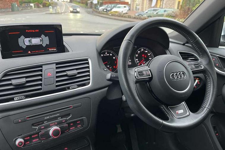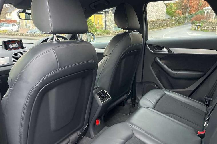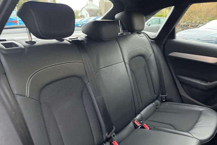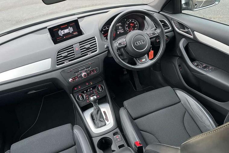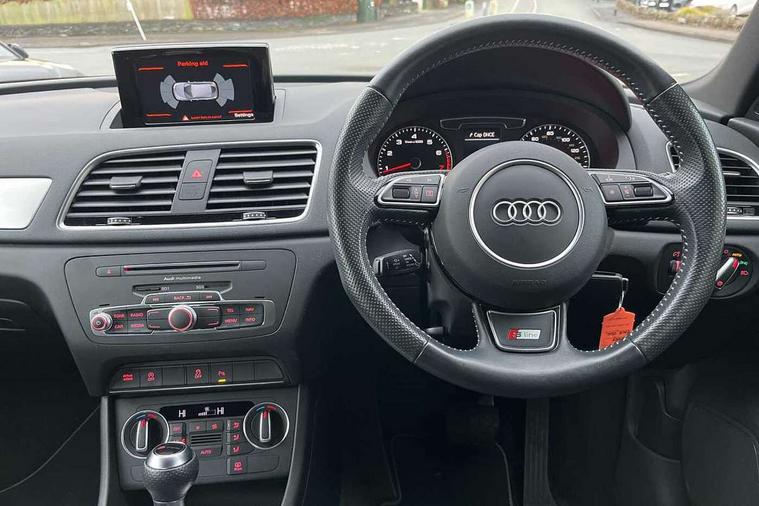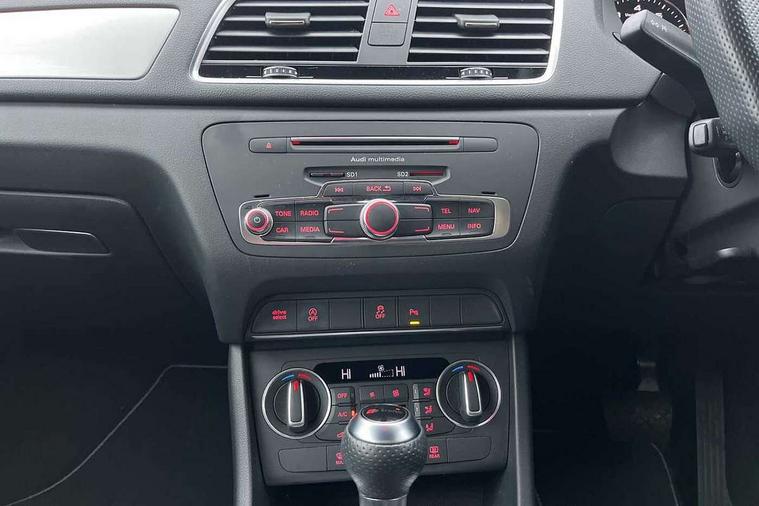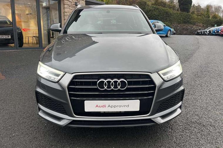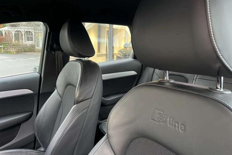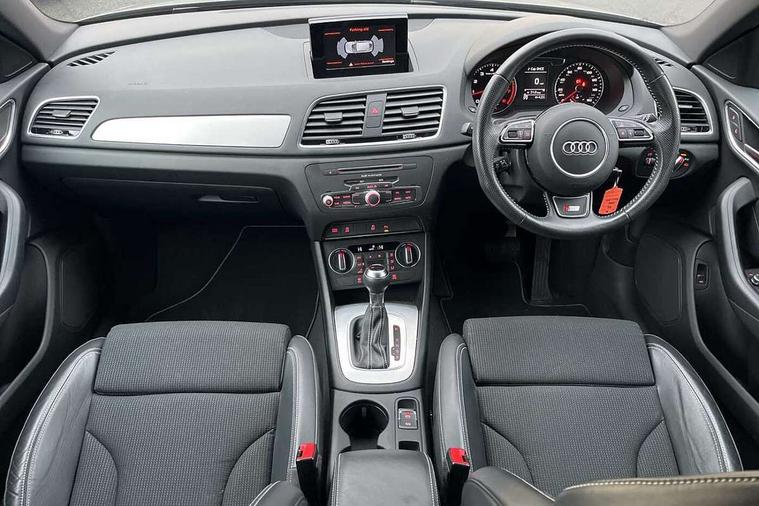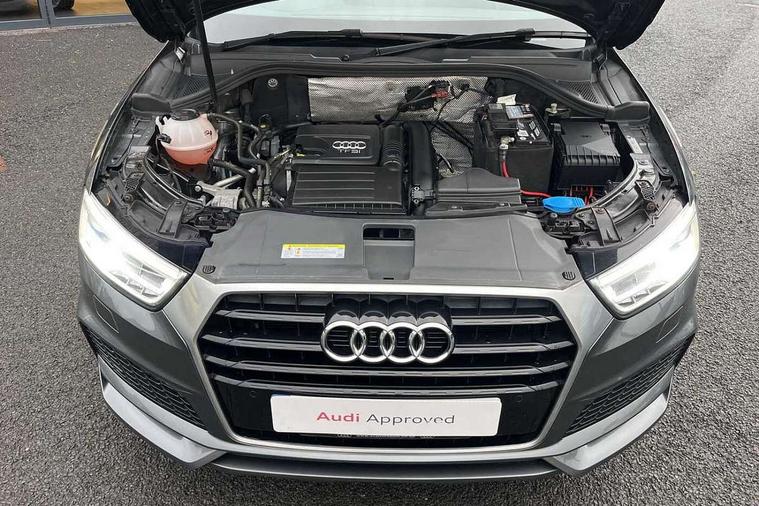 6.5" colour display screen, Audi drive select, Cruise control, Electro-mechanical PAS, Low washer fluid indicator, MMI - Multi Media Interface control system, On board computer, Remote electric boot opening/closing, Service interval indicator, Voice control system, Dynamic suspension, Audi music interface, DAB digital radio module, Acoustic windscreen, Aluminium window surround, Auto dimming rear view mirror, Body colour door mirrors, Body coloured bumpers, Chrome exhaust tailpipe, Coming home function, Door mirror integrated indicators, Front and rear electric windows, Front fog lights, Front lip spoiler, Heated windscreen washer jets, LED daytime running lights, LED headlights with headlight washers, LED rear lights, Light and rain sensor for auto activation of lights and windscreen wipers, Loading sill protector in stainless steel, Rear diffuser with platinum insert, Rear wiper, S Line body styling, Sunband for windscreen, 12V socket in rear centre console, 3 spoke multi-function Q design steering wheel with paddle shift, Aluminium door sill trims, Black cloth headlining, Door sill trim strips, Dual zone climate control, Electric front lumbar adjustment, Front and rear headrests, Front and rear velour floor mats, Front centre armrest with storage compartment and angle adjustment, Front sports seats, Height/reach adjust steering wheel, ISOFIX on front passenger and rear outer seats, Jack and tool kit, Perforated leather gearknob, Retractable luggage cover, Split fold rear seat, Storage compartment and 12V socket, Under floor storage in luggage area, 3x3 point rear seatbelts, ABS+Electronic Brake force Distribution, Curtain airbags, Driver and passenger airbags, Driver and passenger side airbags, EDL + ASR, Electrically operated child locks on rear doors, Electromechanical parking brake, ESP, First aid kit, Front passenger airbag deactivation, Head airbags, Seatbelt warning light, Tyre pressure monitoring system, Warning triangle, Locking wheel bolts, Remote central locking, Thatcham category 1 alarm + immobiliser, Matt brushed aluminium fascia and door trim inlays,